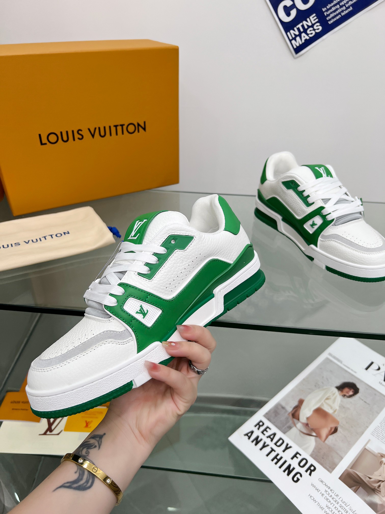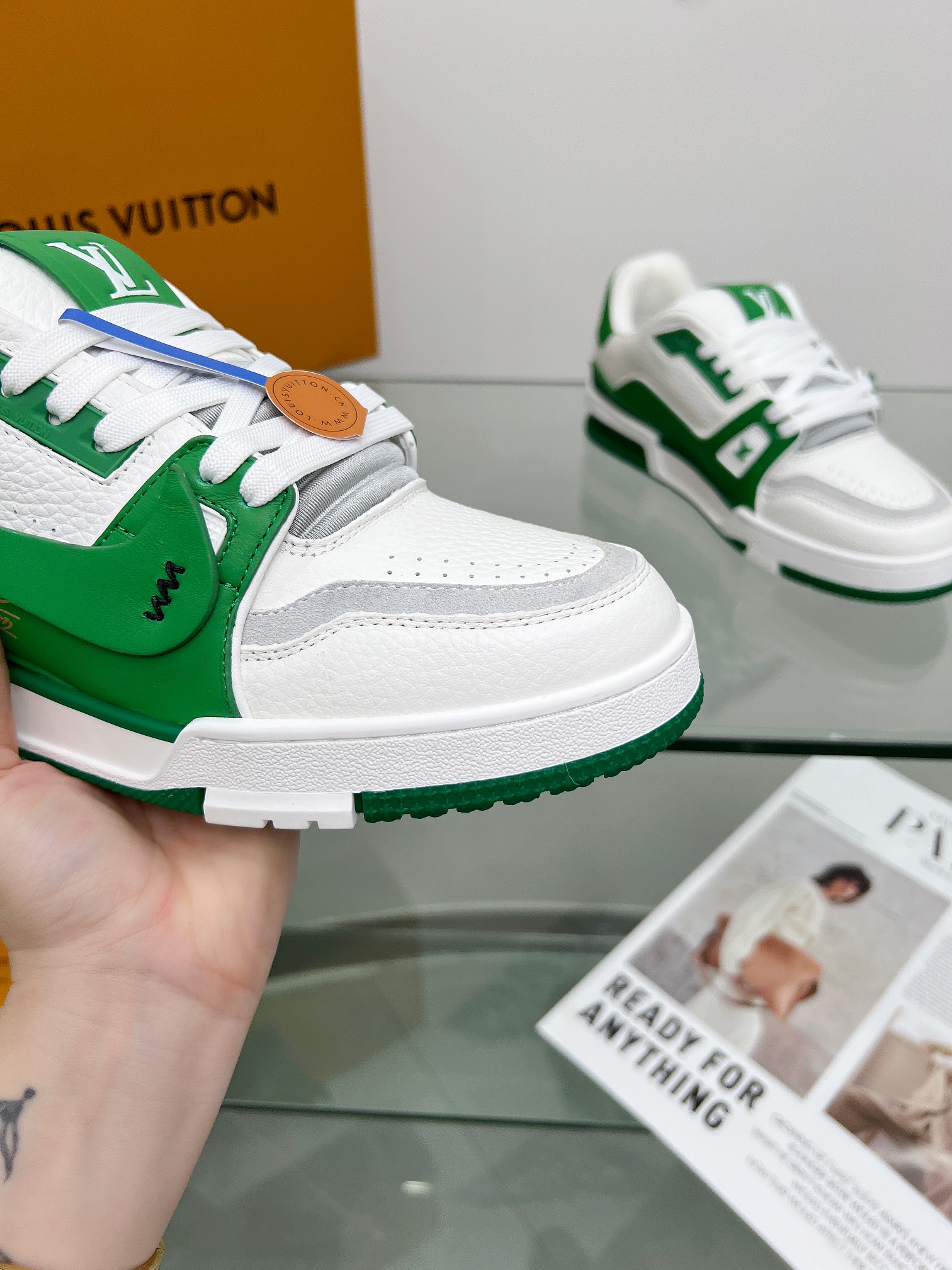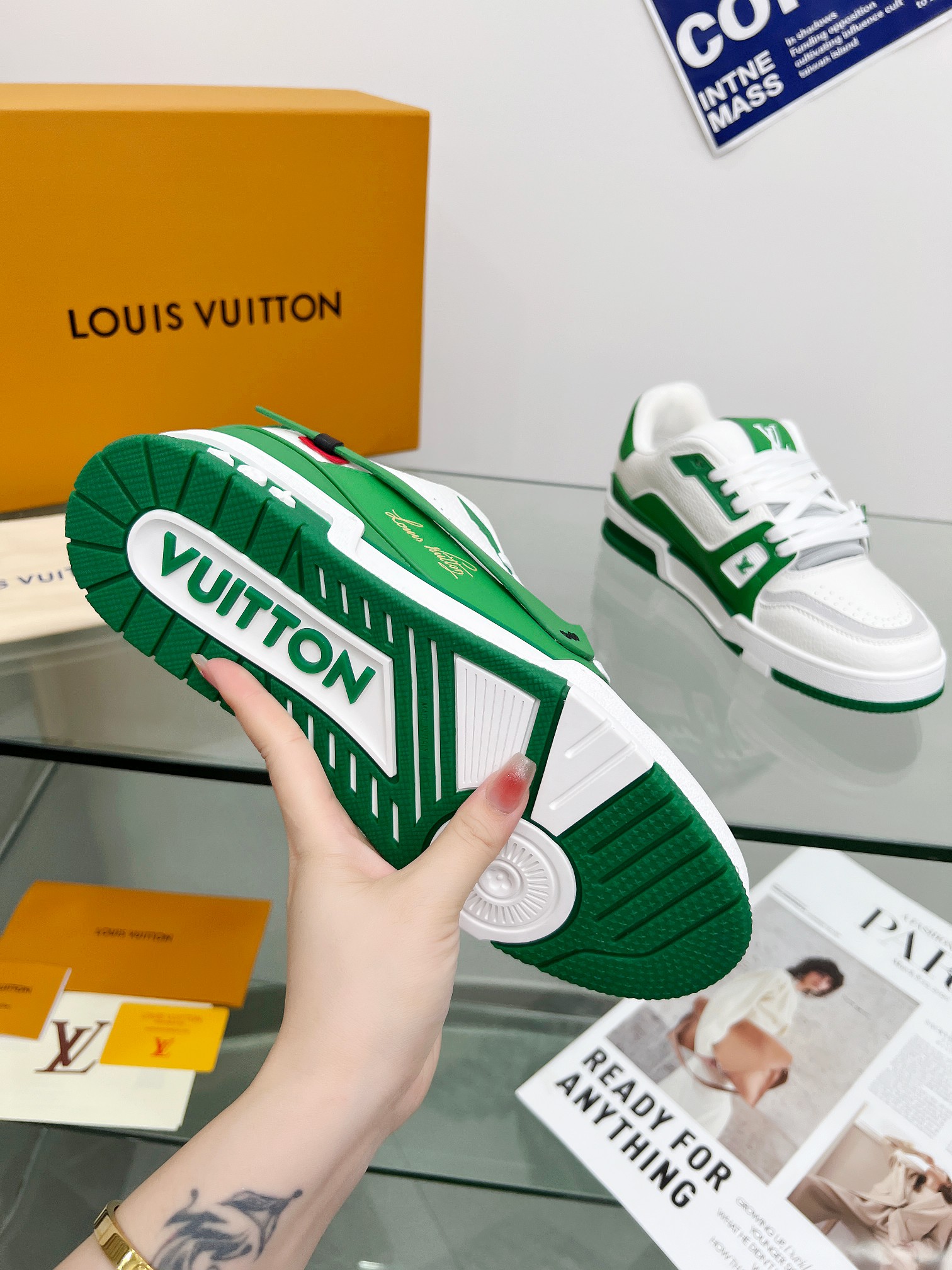 这款鞋子是AAAAA 1:1 质量 (非常棒). 使用了和原版一模一样的材料. 商标部分也保持了和路易威登/Louis Vuitton一样. 图片拍摄是实物鞋子拍摄, 您所收到的实物保证和我们图片一模一样.