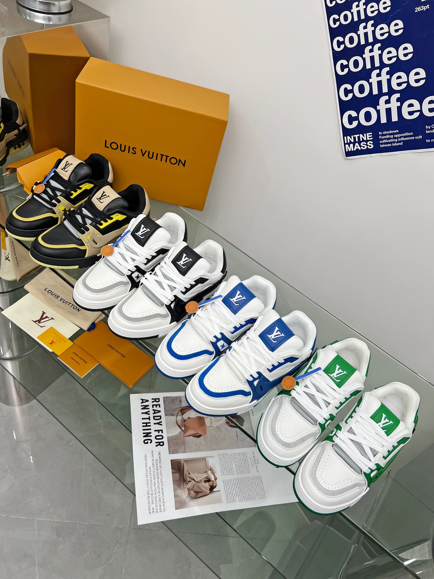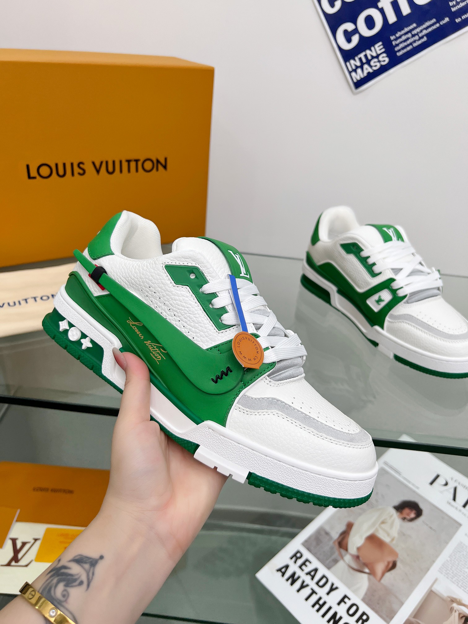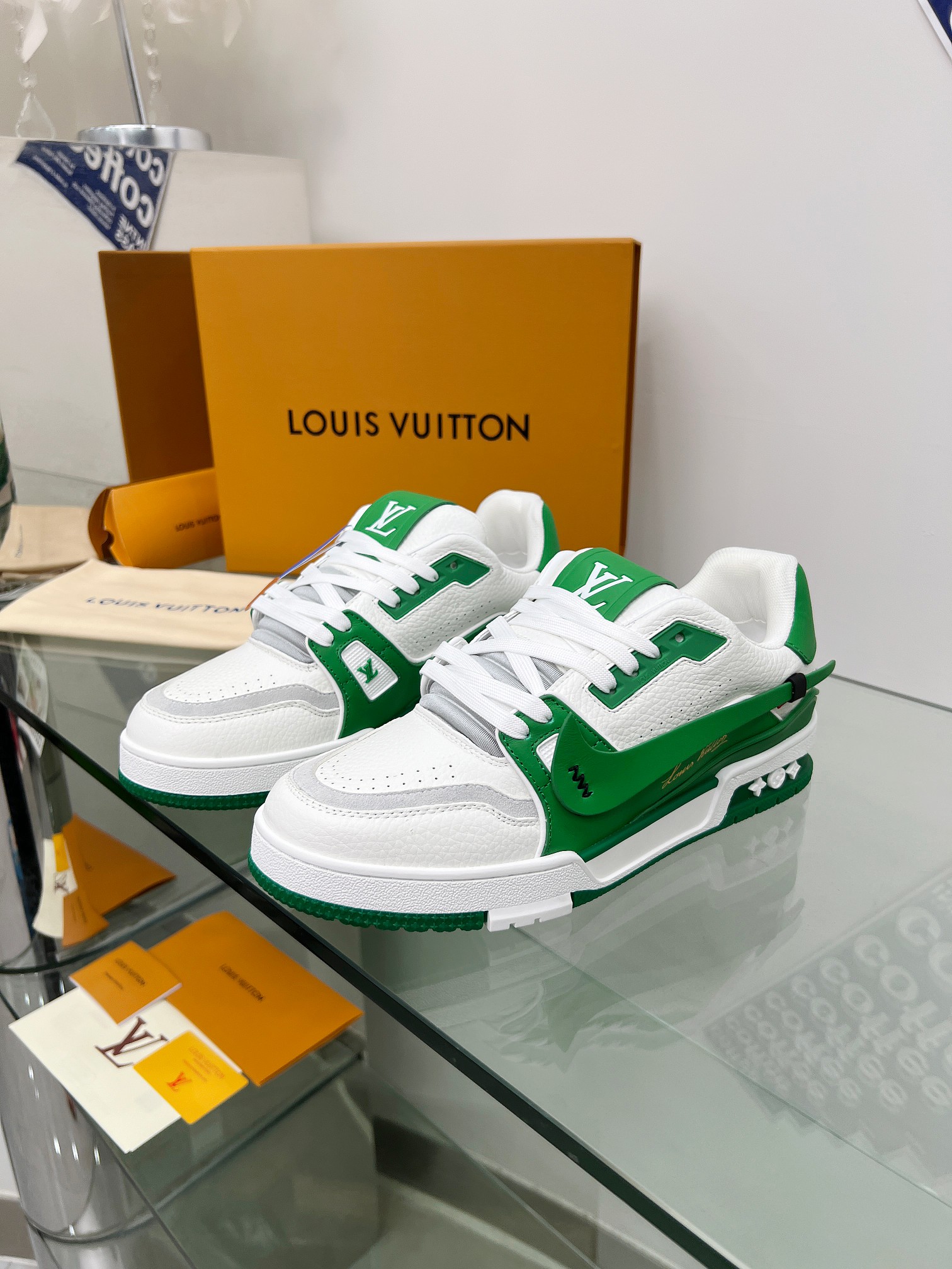 这款鞋子是AAAAA 1:1 质量 (非常棒). 使用了和原版一模一样的材料. 商标部分也保持了和路易威登/Louis Vuitton一样. 图片拍摄是实物鞋子拍摄, 您所收到的实物保证和我们图片一模一样.
