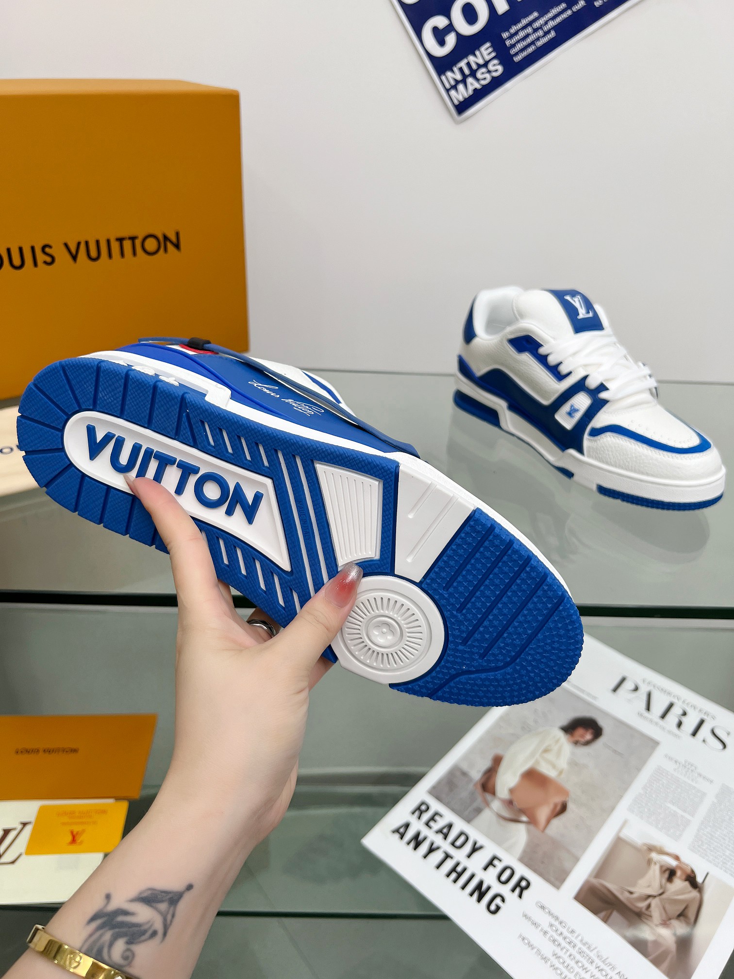 这款鞋子是AAAAA 1:1 质量 (非常棒). 使用了和原版一模一样的材料. 商标部分也保持了和路易威登/Louis Vuitton一样. 图片拍摄是实物鞋子拍摄, 您所收到的实物保证和我们图片一模一样.
