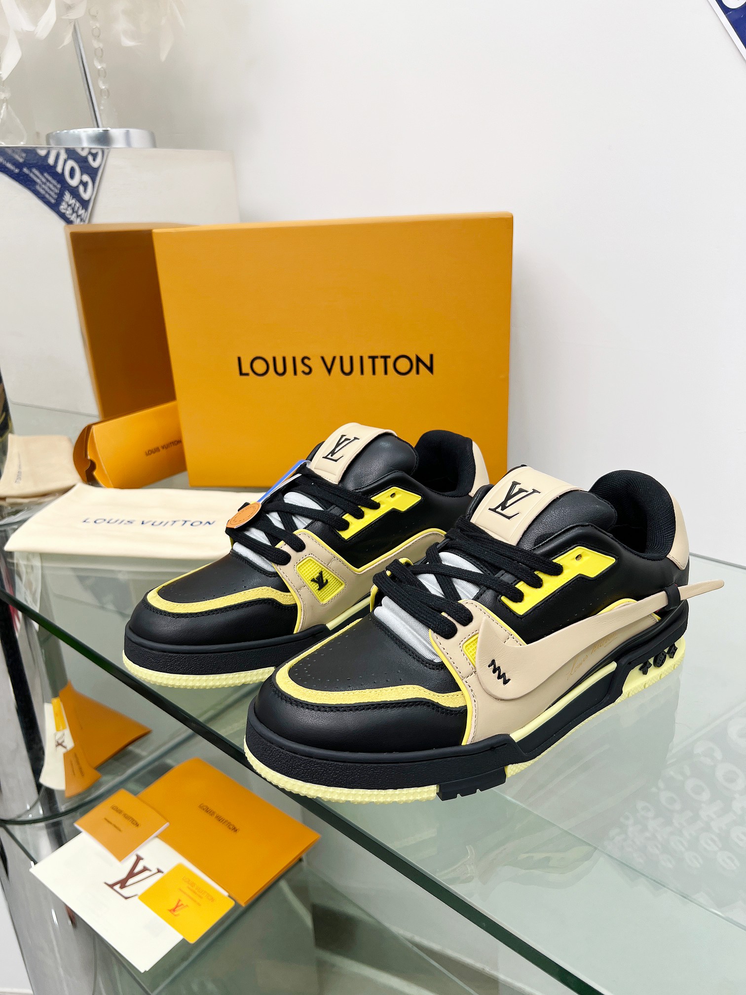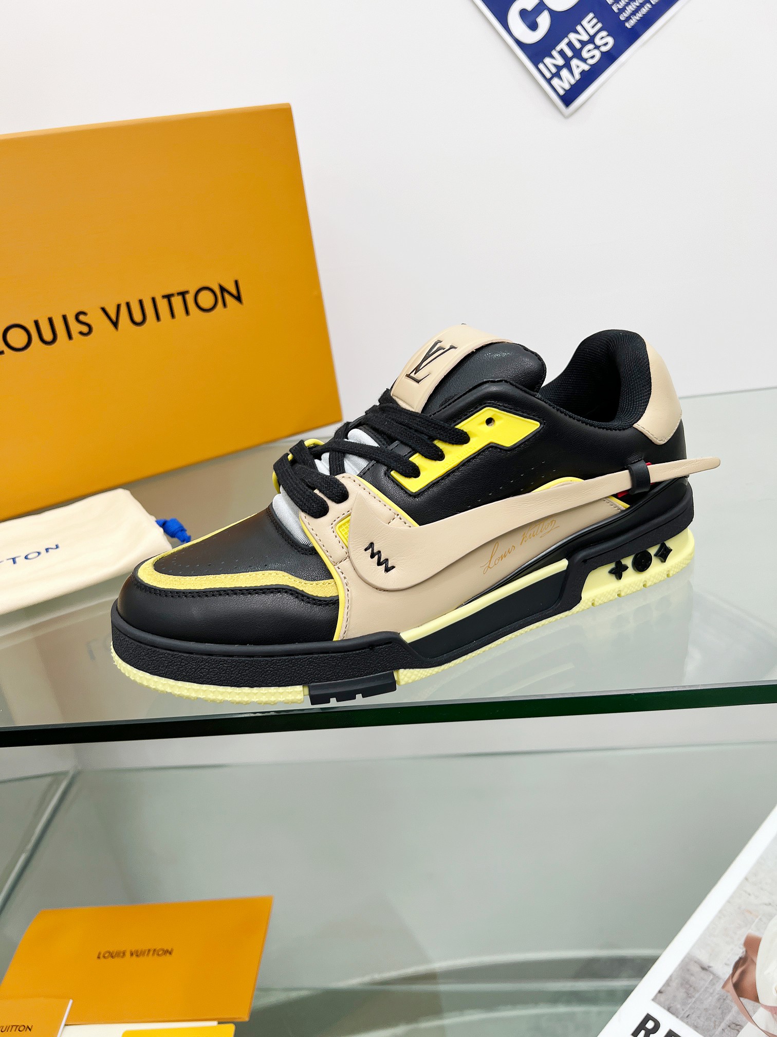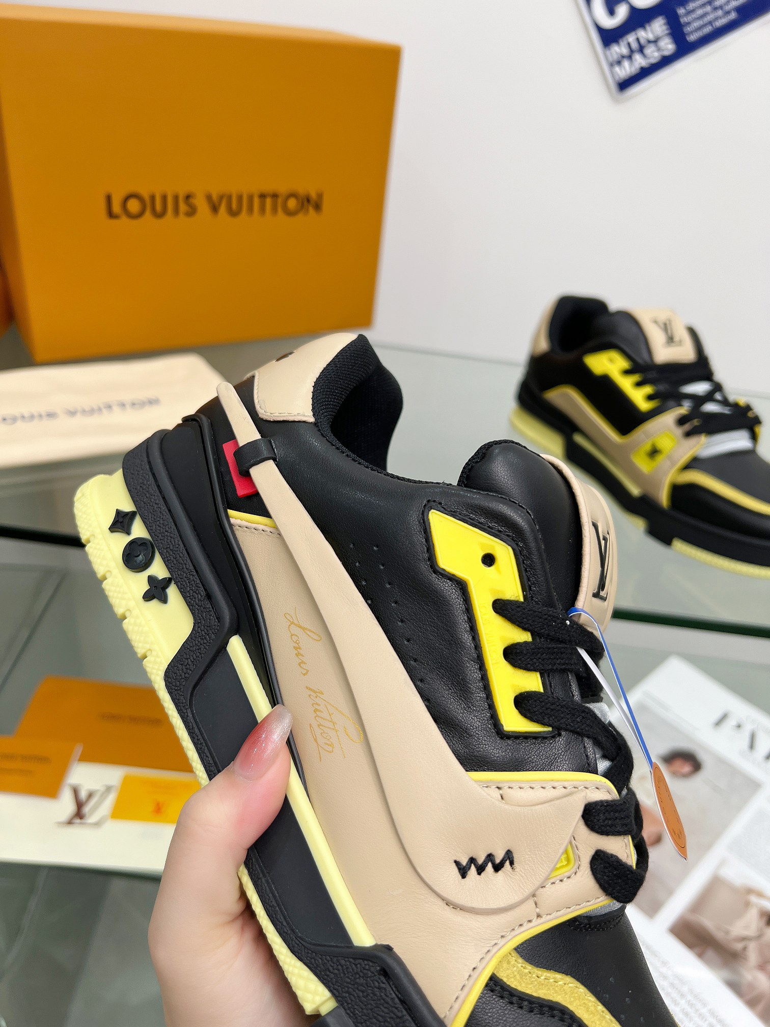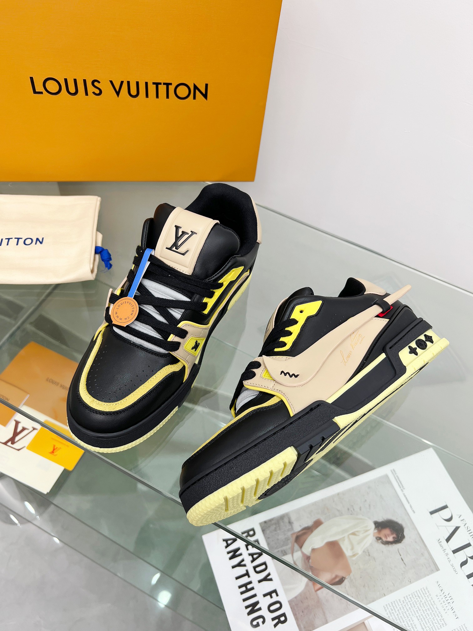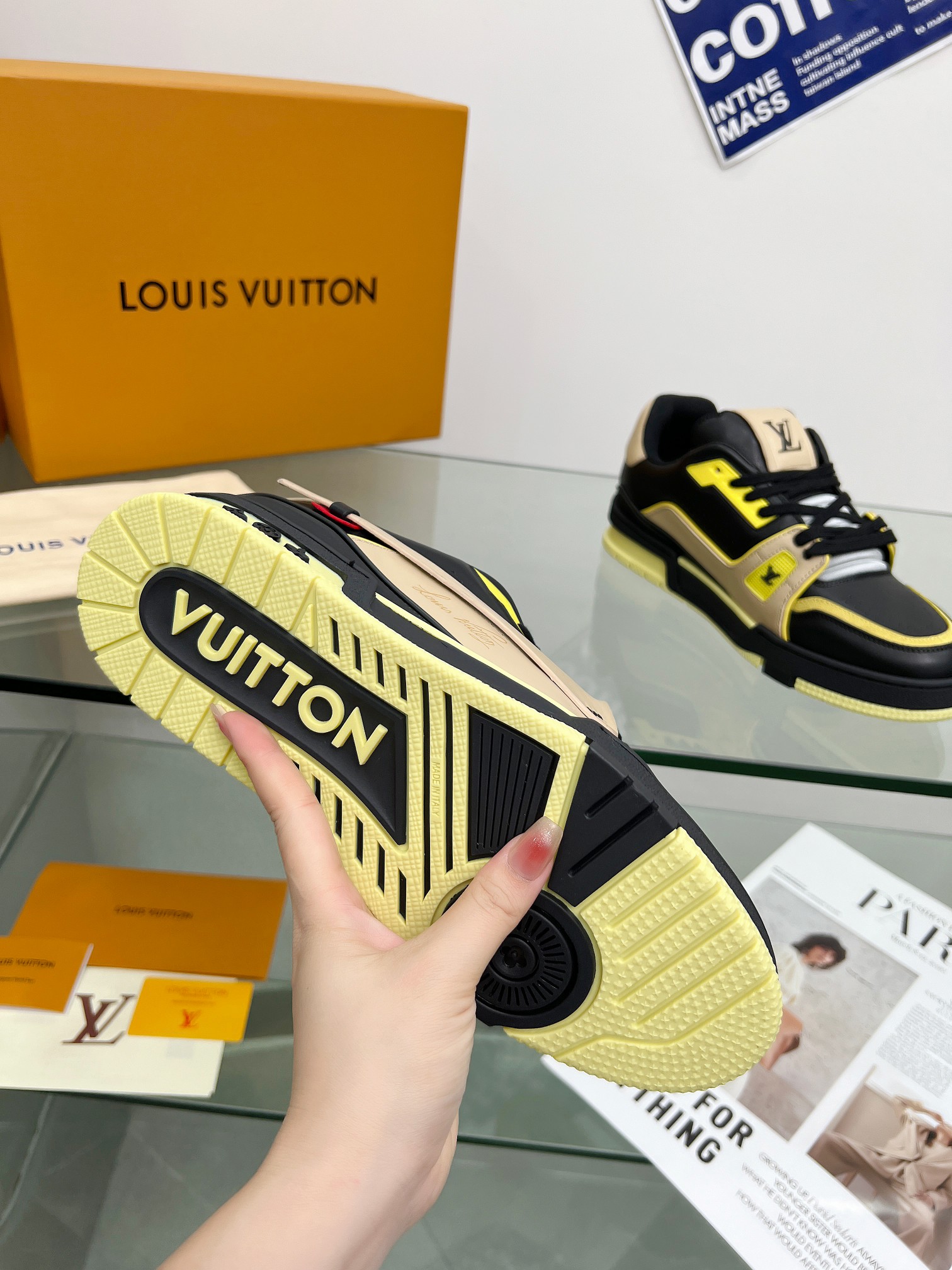这款鞋子是AAAAA 1:1 质量 (非常棒). 使用了和原版一模一样的材料. 商标部分也保持了和路易威登/Louis Vuitton一样. 图片拍摄是实物鞋子拍摄, 您所收到的实物保证和我们图片一模一样.