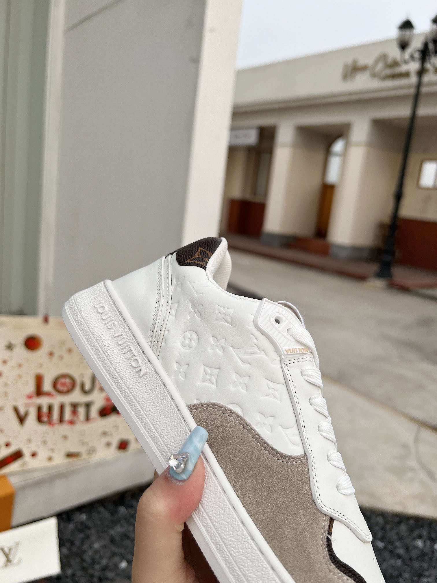 这款鞋子是AAAAA 1:1 质量 (非常棒). 使用了和原版一模一样的材料. 商标部分也保持了和路易威登/Louis Vuitton一样. 图片拍摄是实物鞋子拍摄, 您所收到的实物保证和我们图片一模一样.