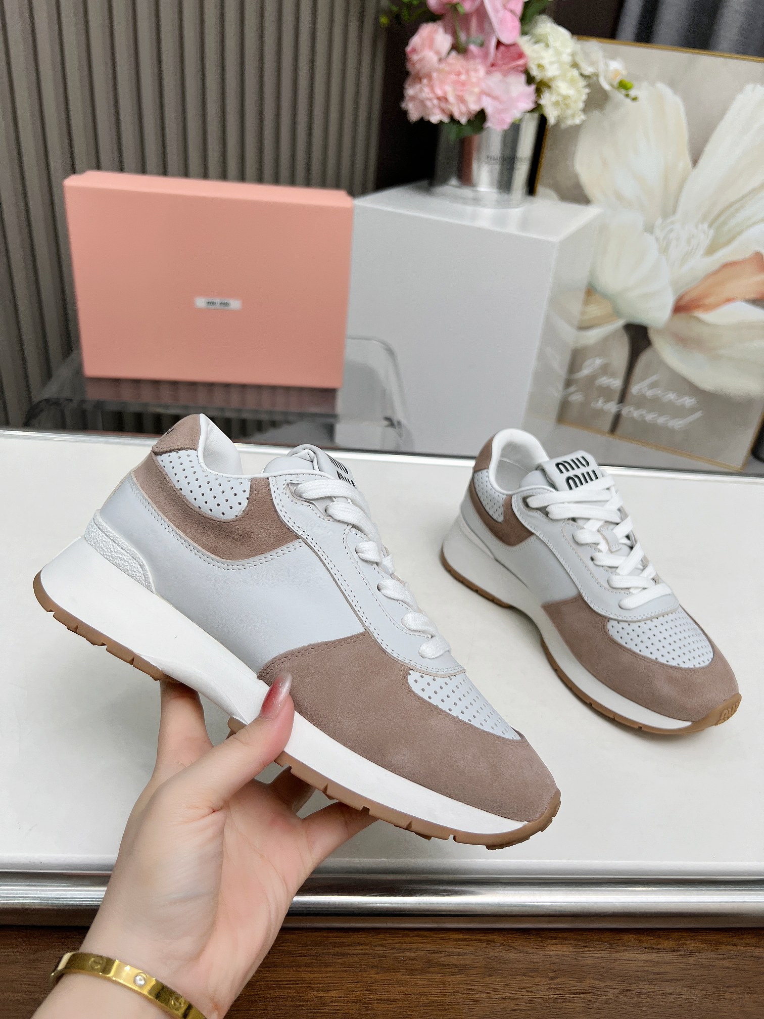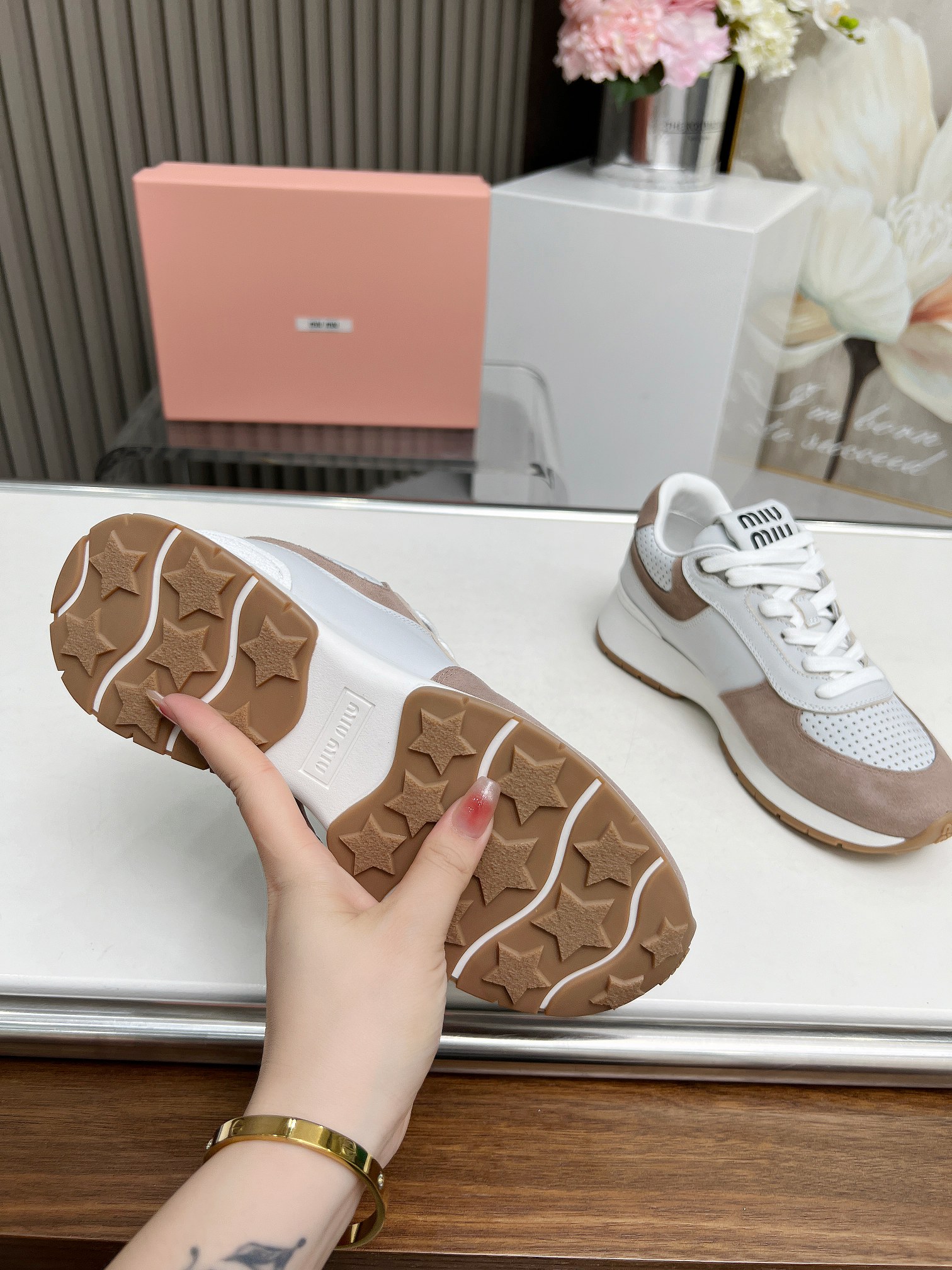 这款鞋子是AAAAA 1:1 质量 (非常棒). 使用了和原版一模一样的材料. 商标部分也保持了和缪缪/Miu Miu一样. 图片拍摄是实物鞋子拍摄, 您所收到的实物保证和我们图片一模一样.