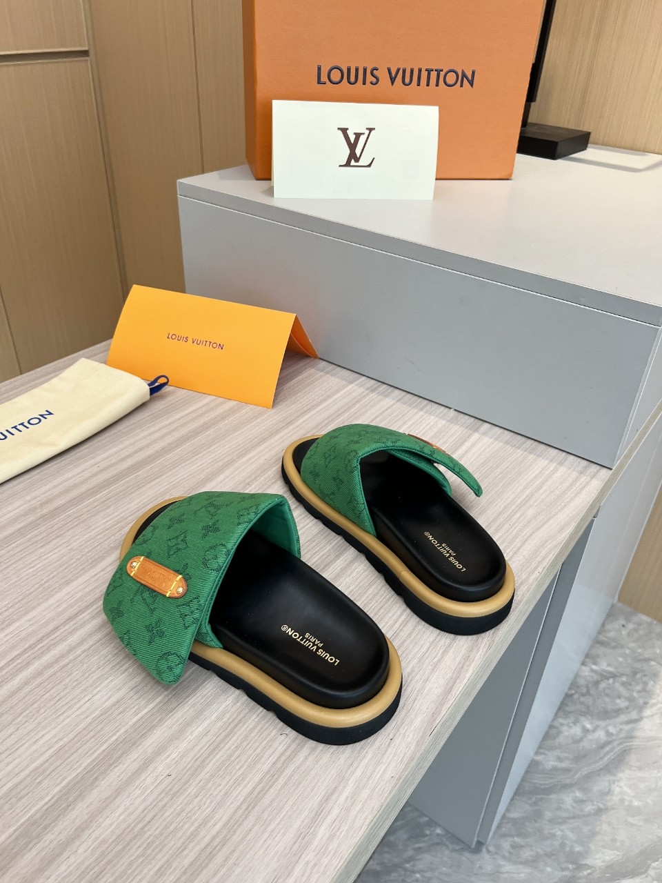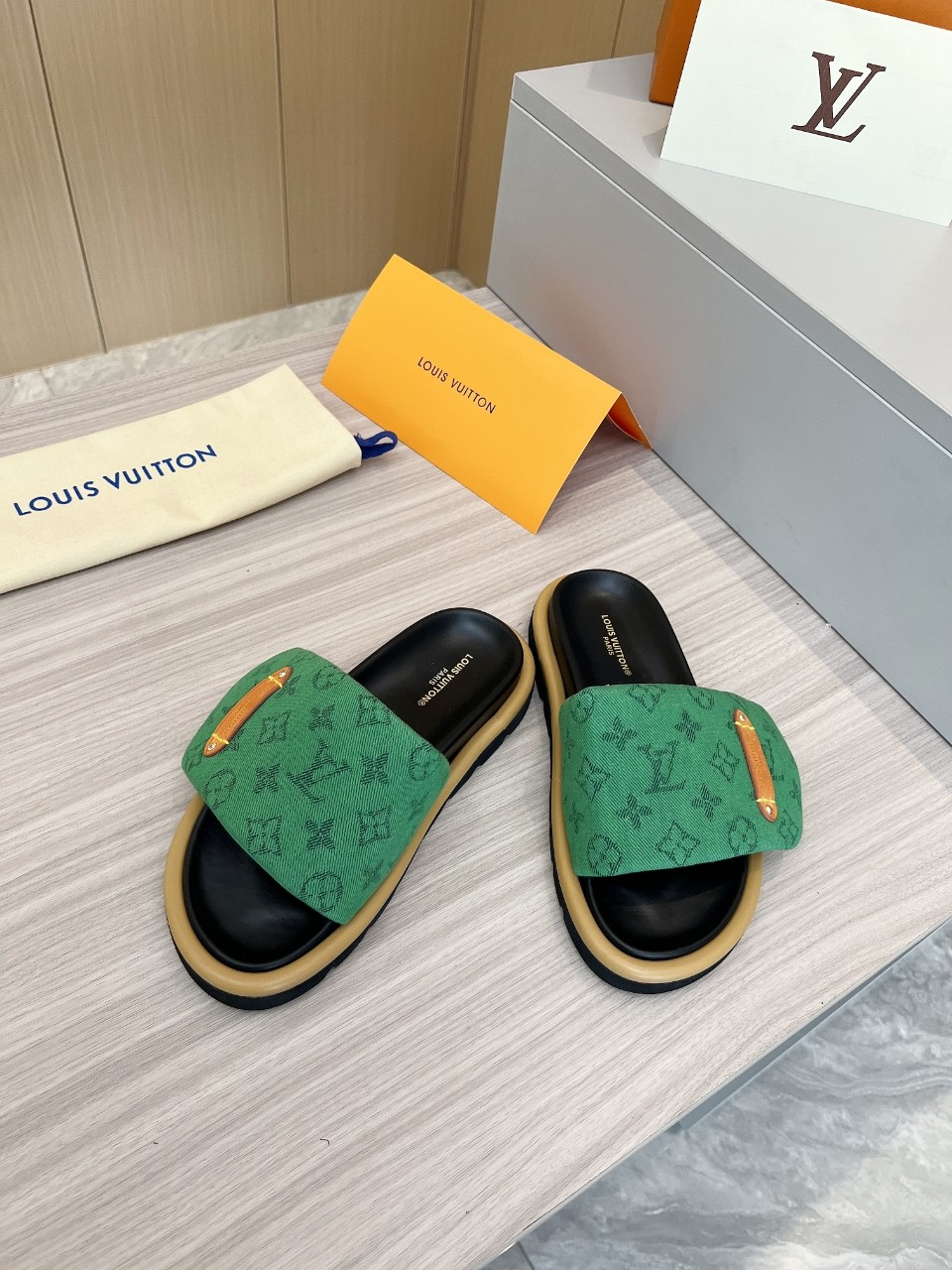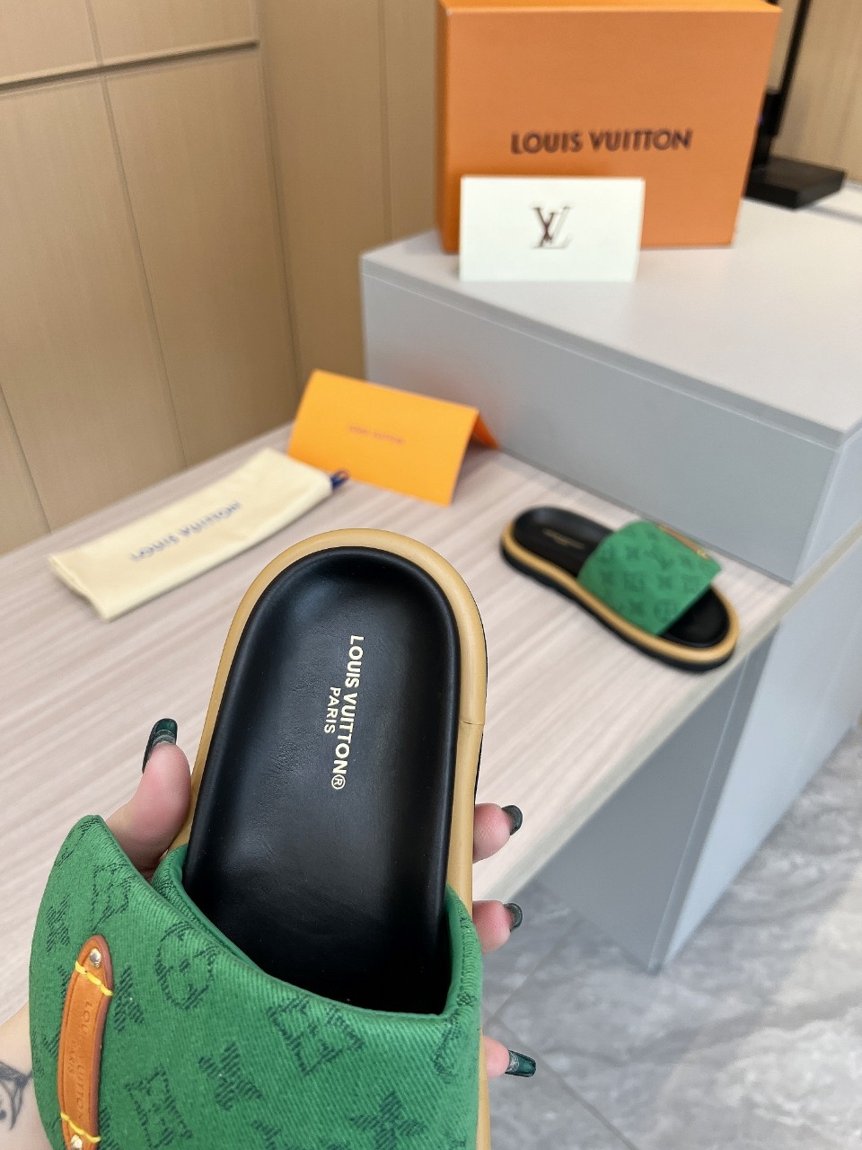 这款鞋子是AAAAA 1:1 质量 (非常棒). 使用了和原版一模一样的材料. 商标部分也保持了和路易威登/Louis Vuitton一样. 图片拍摄是实物鞋子拍摄, 您所收到的实物保证和我们图片一模一样.