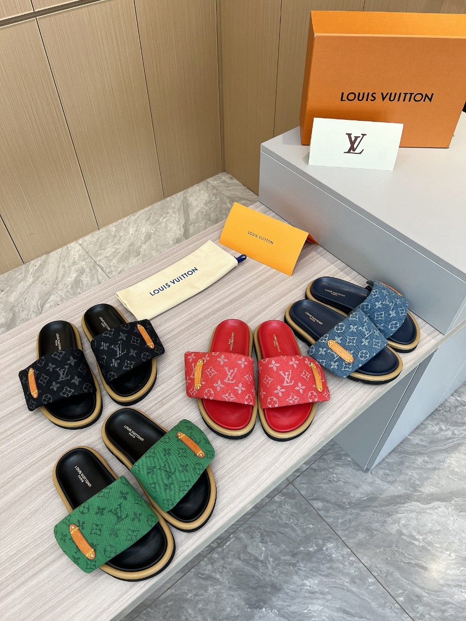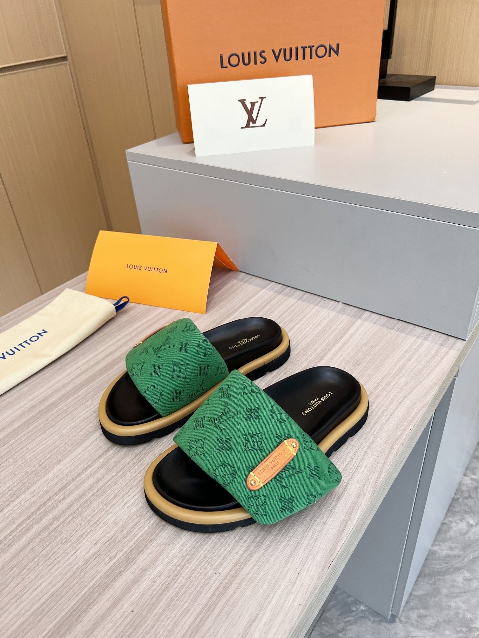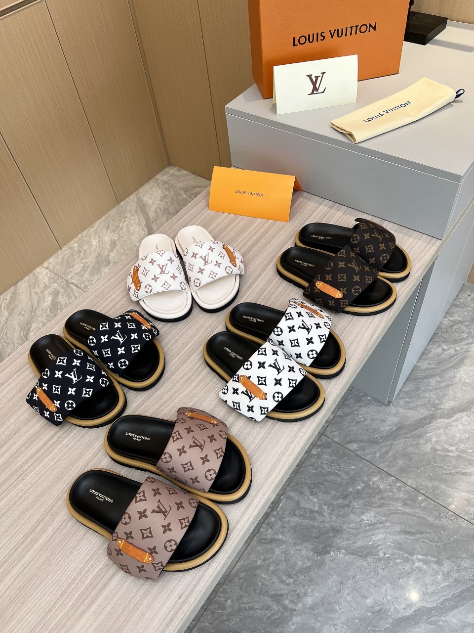 这款鞋子是AAAAA 1:1 质量 (非常棒). 使用了和原版一模一样的材料. 商标部分也保持了和路易威登/Louis Vuitton一样. 图片拍摄是实物鞋子拍摄, 您所收到的实物保证和我们图片一模一样.