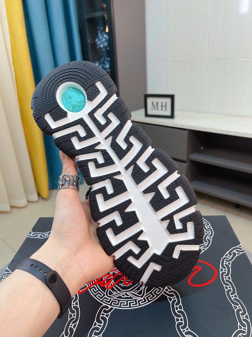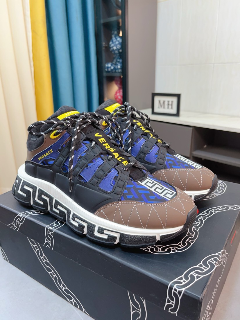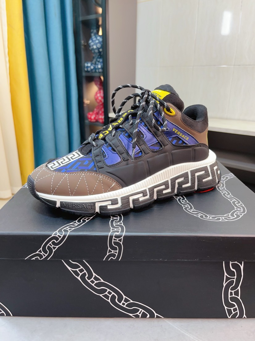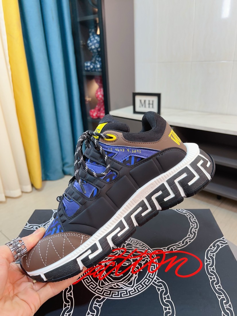 这款鞋子是AAAAA 1:1 质量 (非常棒). 使用了和原版一模一样的材料. 商标部分也保持了和范思哲/Versace一样. 图片拍摄是实物鞋子拍摄, 您所收到的实物保证和我们图片一模一样.