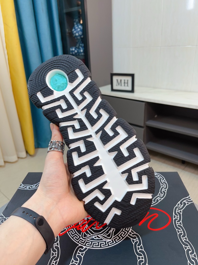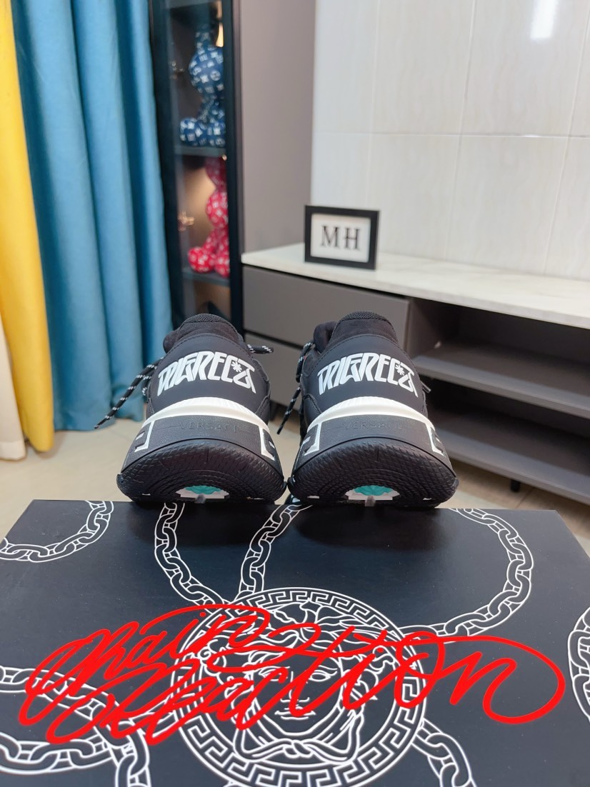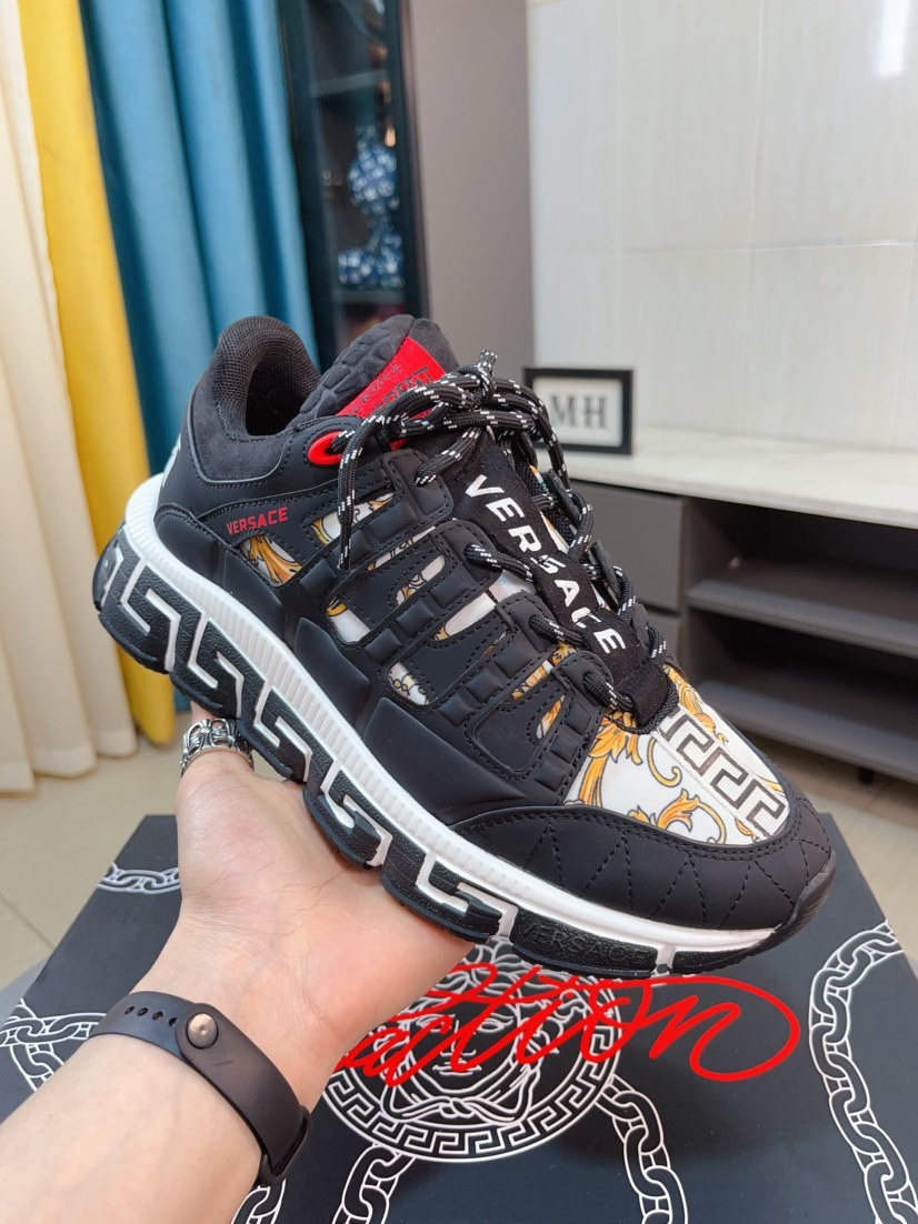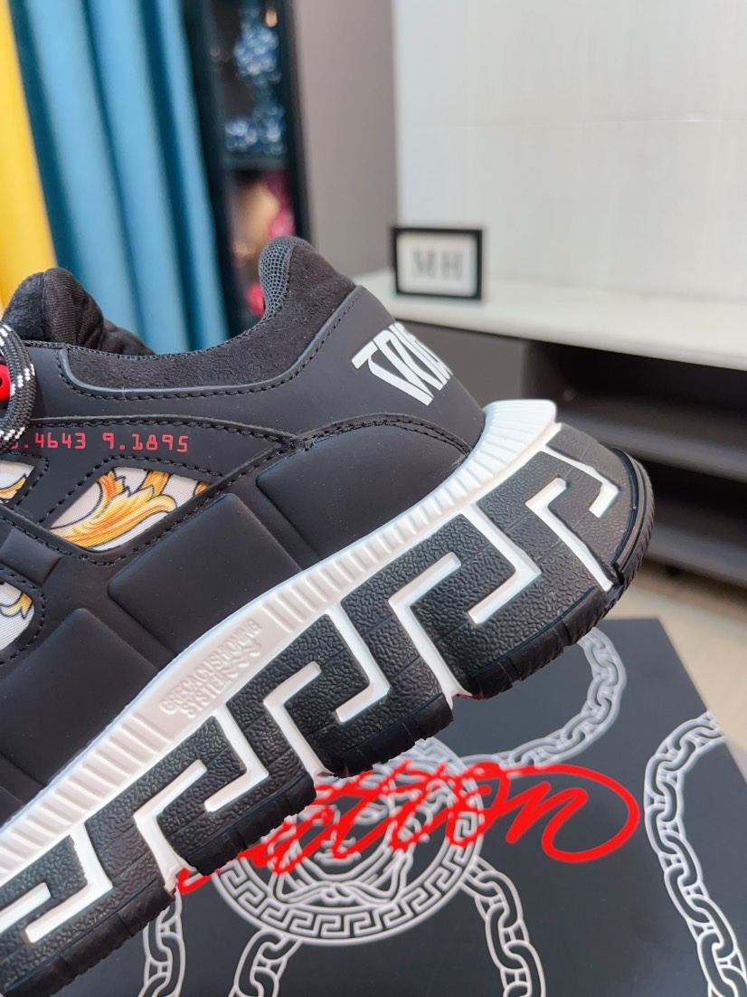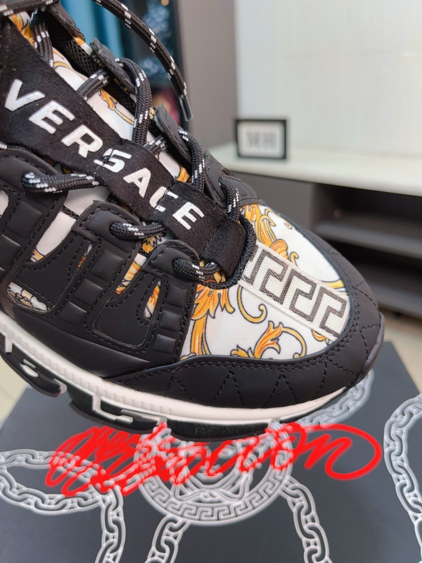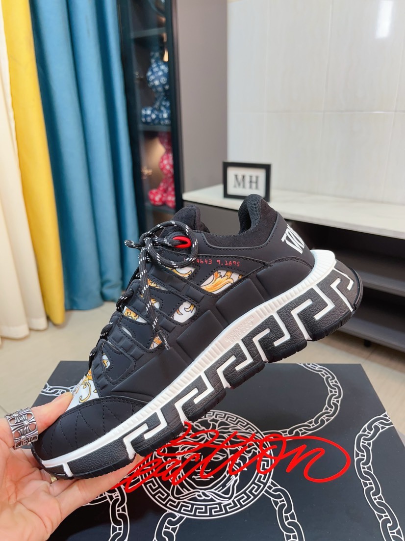 这款鞋子是AAAAA 1:1 质量 (非常棒). 使用了和原版一模一样的材料. 商标部分也保持了和范思哲/Versace一样. 图片拍摄是实物鞋子拍摄, 您所收到的实物保证和我们图片一模一样.