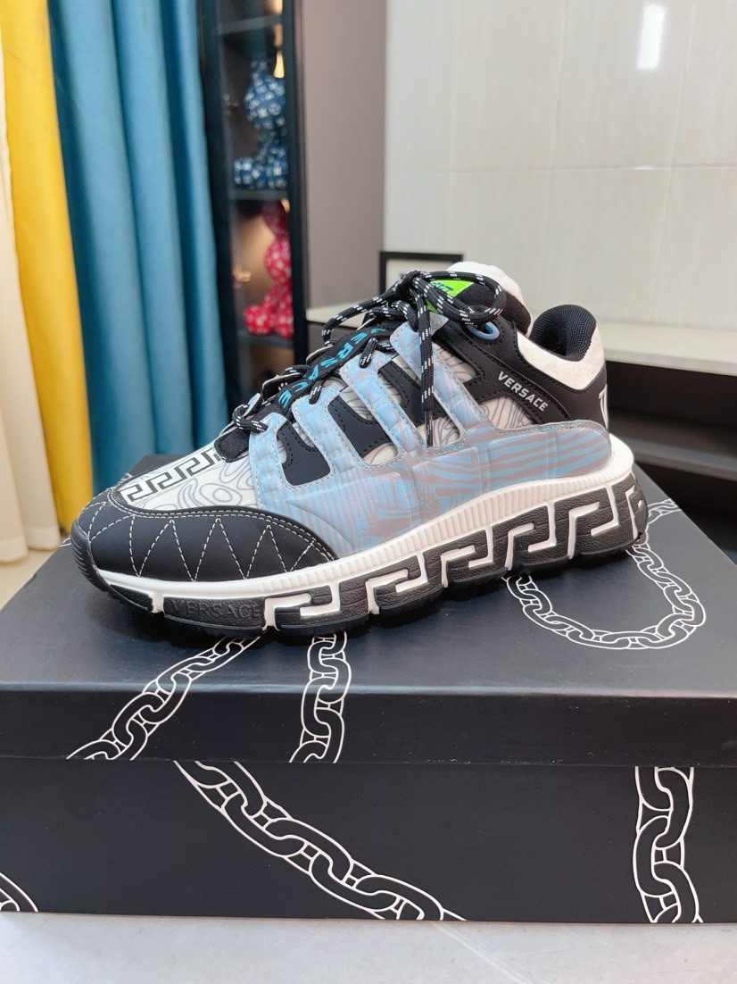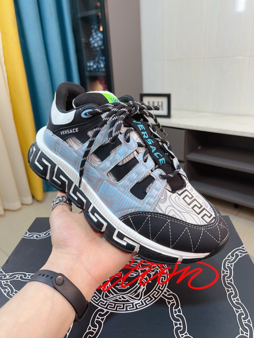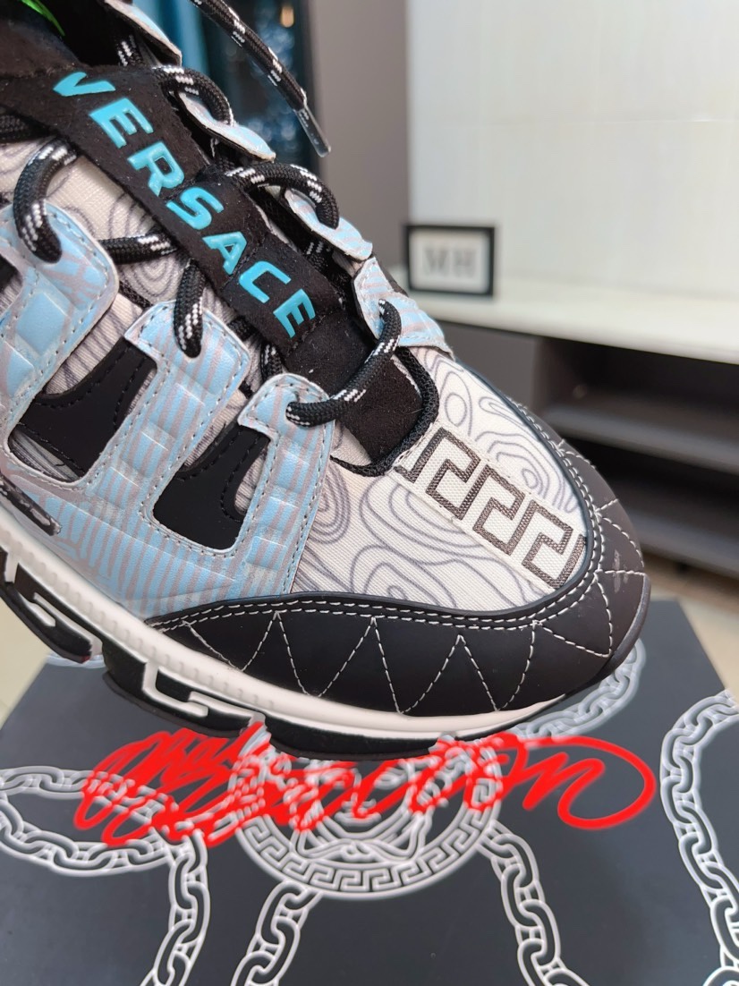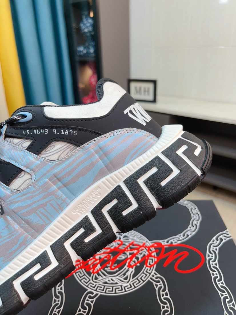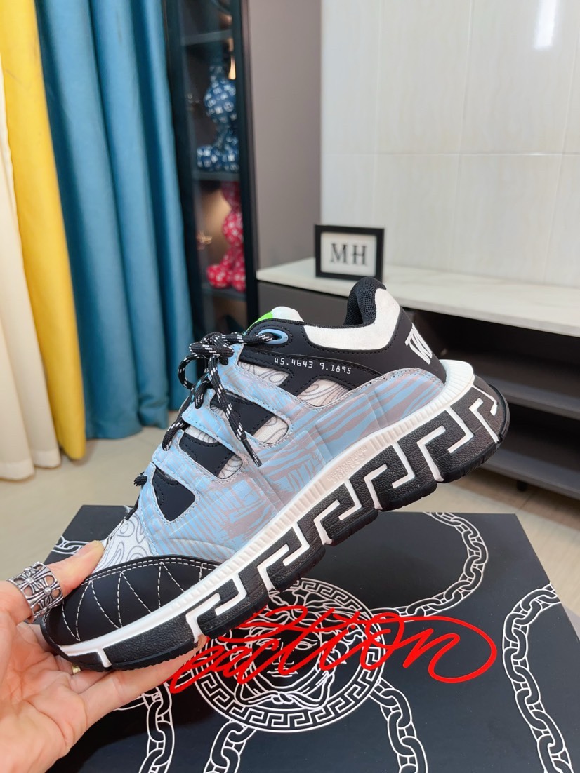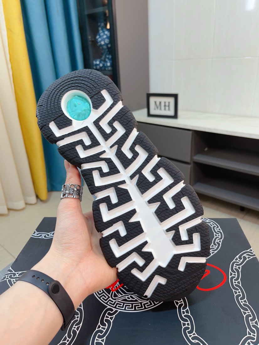 这款鞋子是AAAAA 1:1 质量 (非常棒). 使用了和原版一模一样的材料. 商标部分也保持了和范思哲/Versace一样. 图片拍摄是实物鞋子拍摄, 您所收到的实物保证和我们图片一模一样.