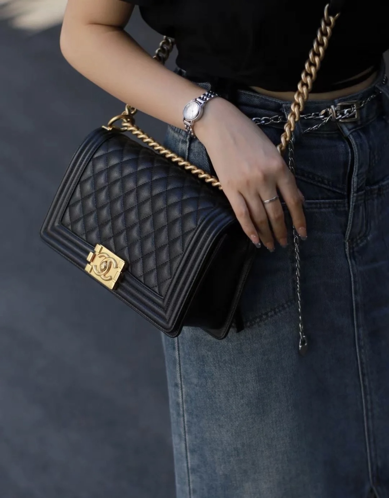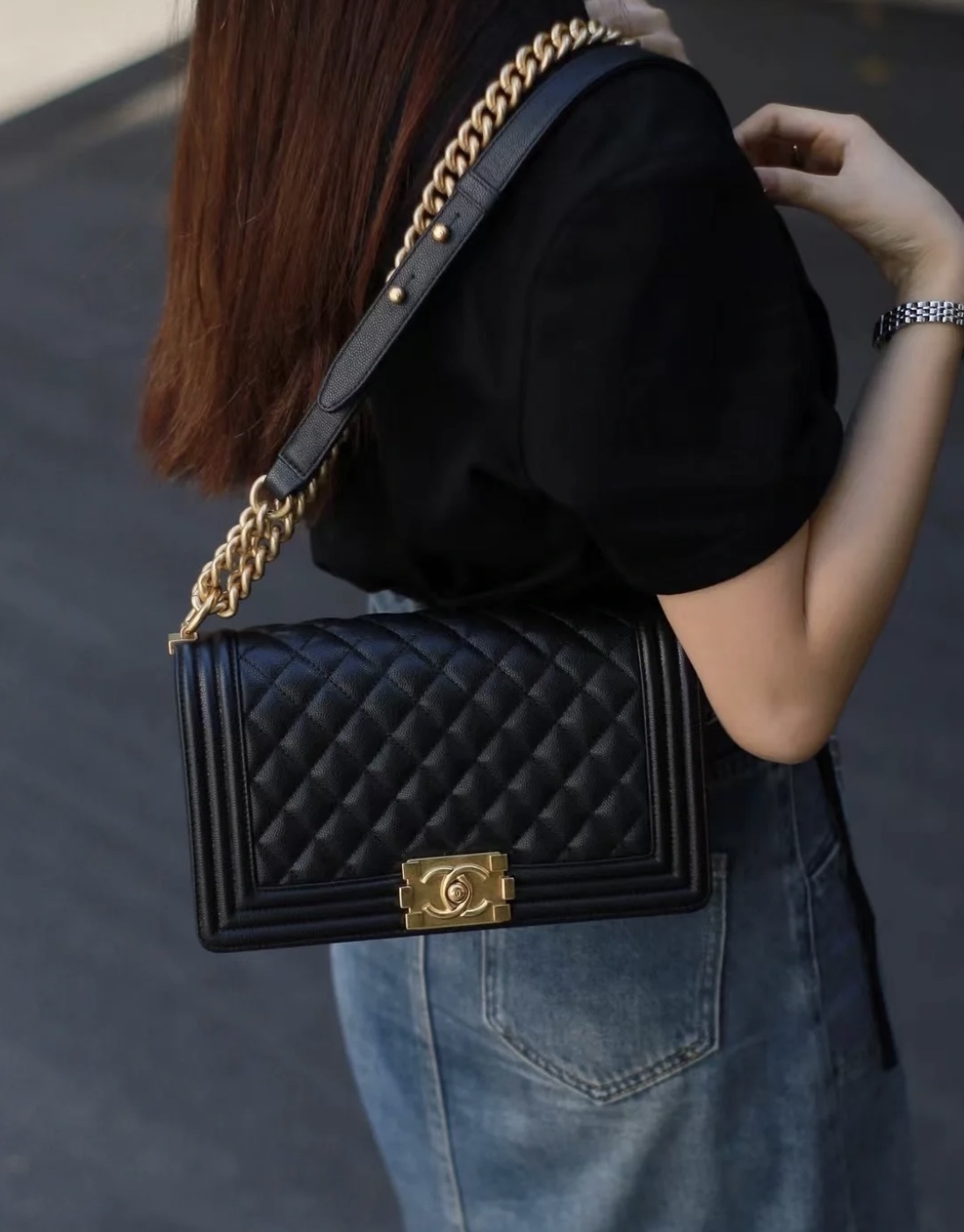 这款包包是AAAAA 1:1 质量 (非常棒). 使用了和原版一模一样的材料. 商标部分也保持了和BOY一样. 图片拍摄是实物包包拍摄, 您所收到的实物保证和我们图片一模一样.