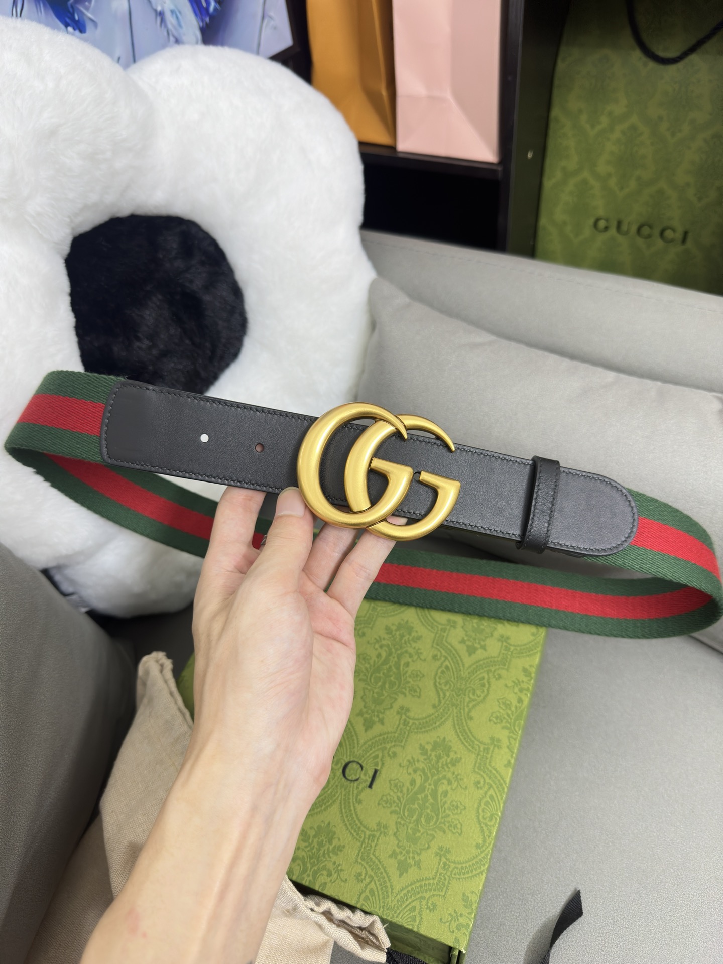 这款皮带是AAAAA 1:1 质量 (非常棒). 使用了和原版一模一样的材料. 商标部分也保持了和古奇/Gucci一样. 图片拍摄是实物皮带拍摄, 您所收到的实物保证和我们图片一模一样.