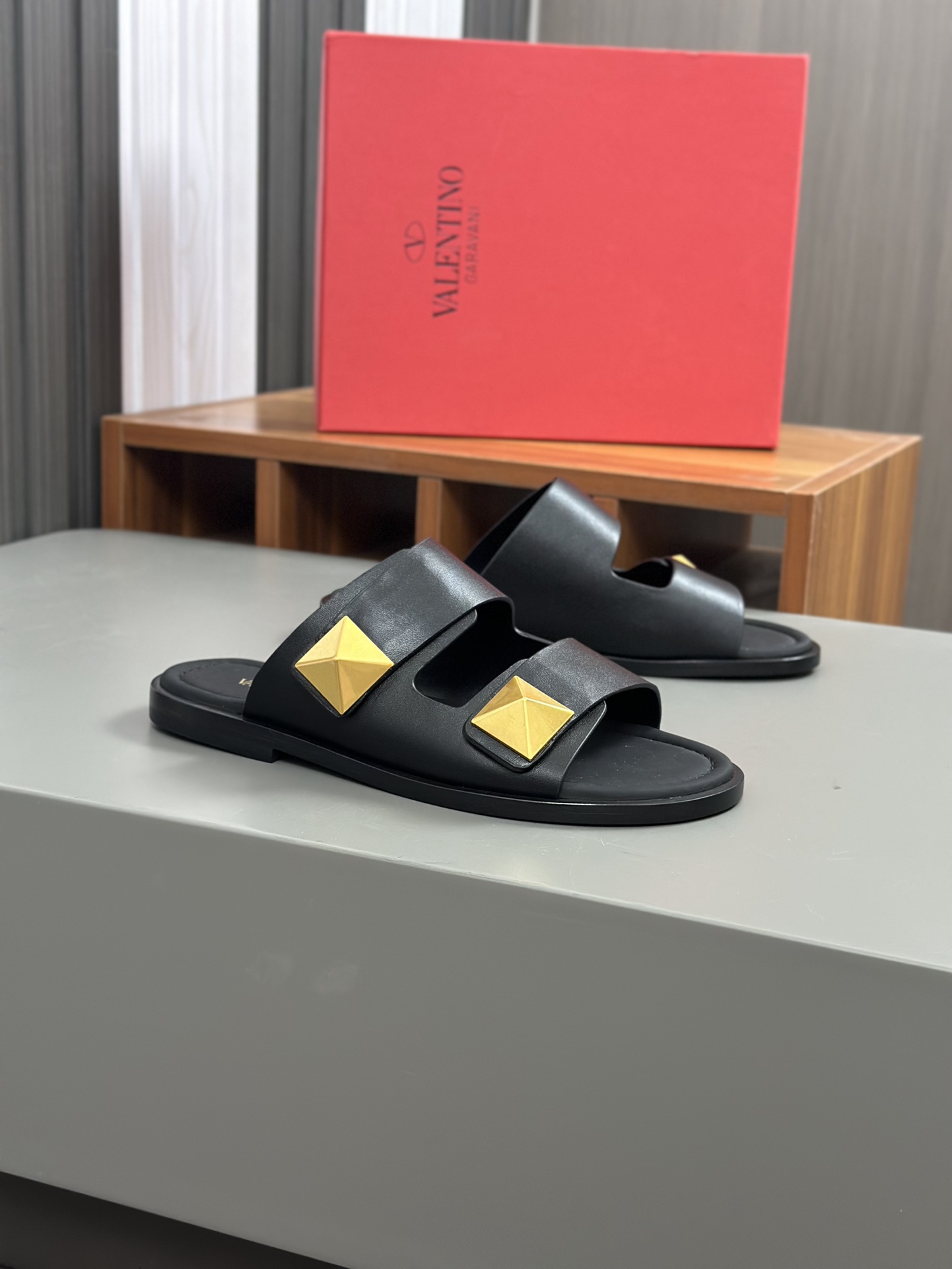 这款鞋子是AAAAA 1:1 质量 (非常棒). 使用了和原版一模一样的材料. 商标部分也保持了和华伦天奴/Valentino一样. 图片拍摄是实物鞋子拍摄, 您所收到的实物保证和我们图片一模一样.