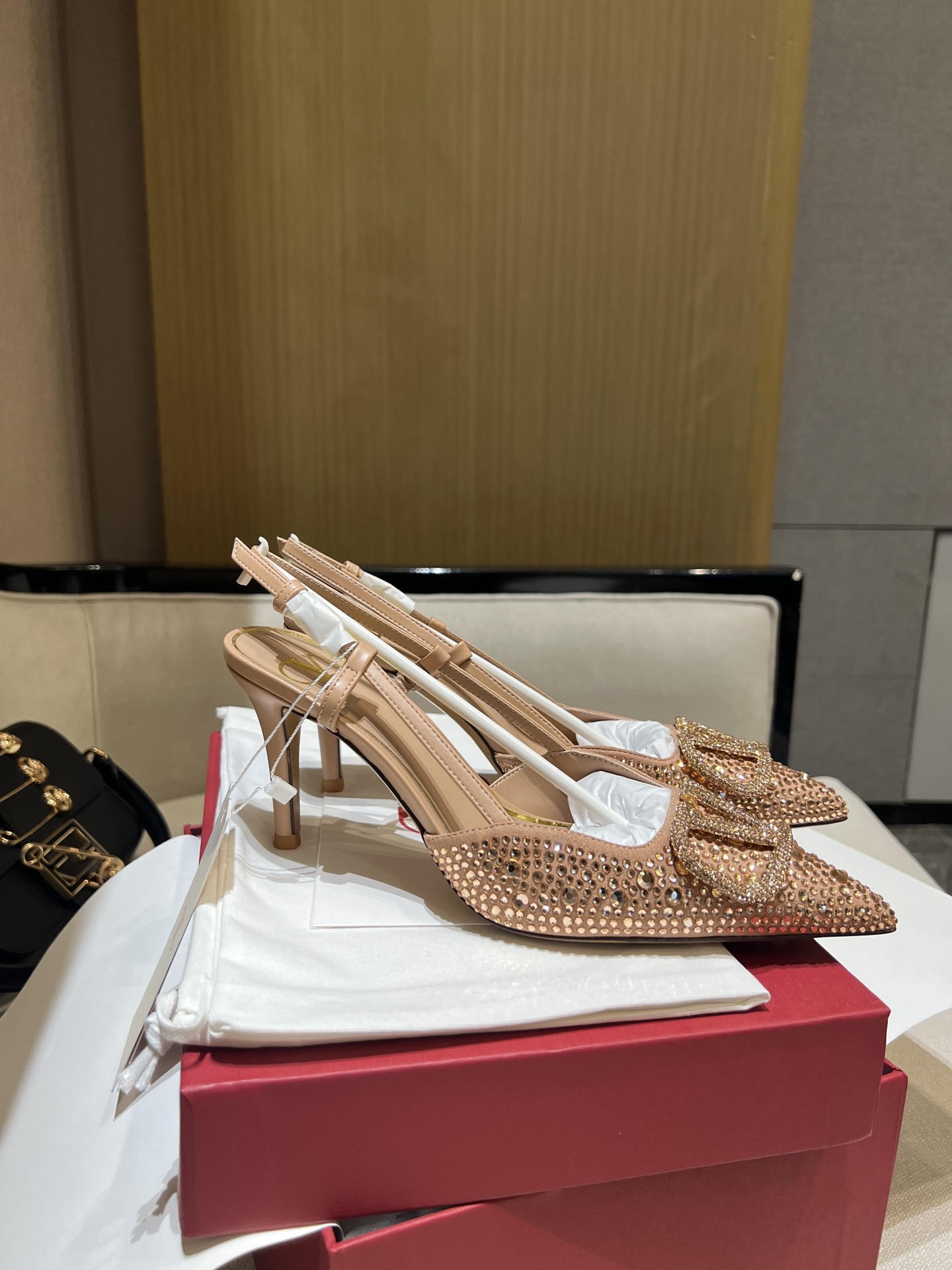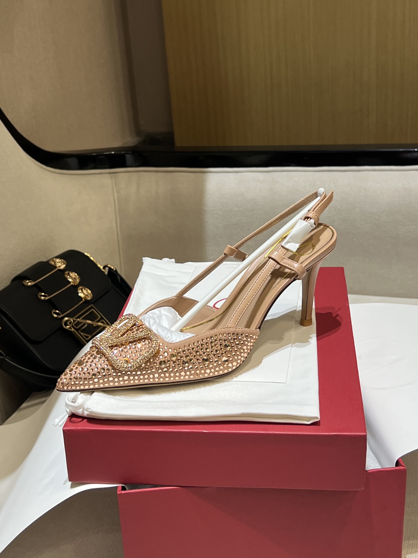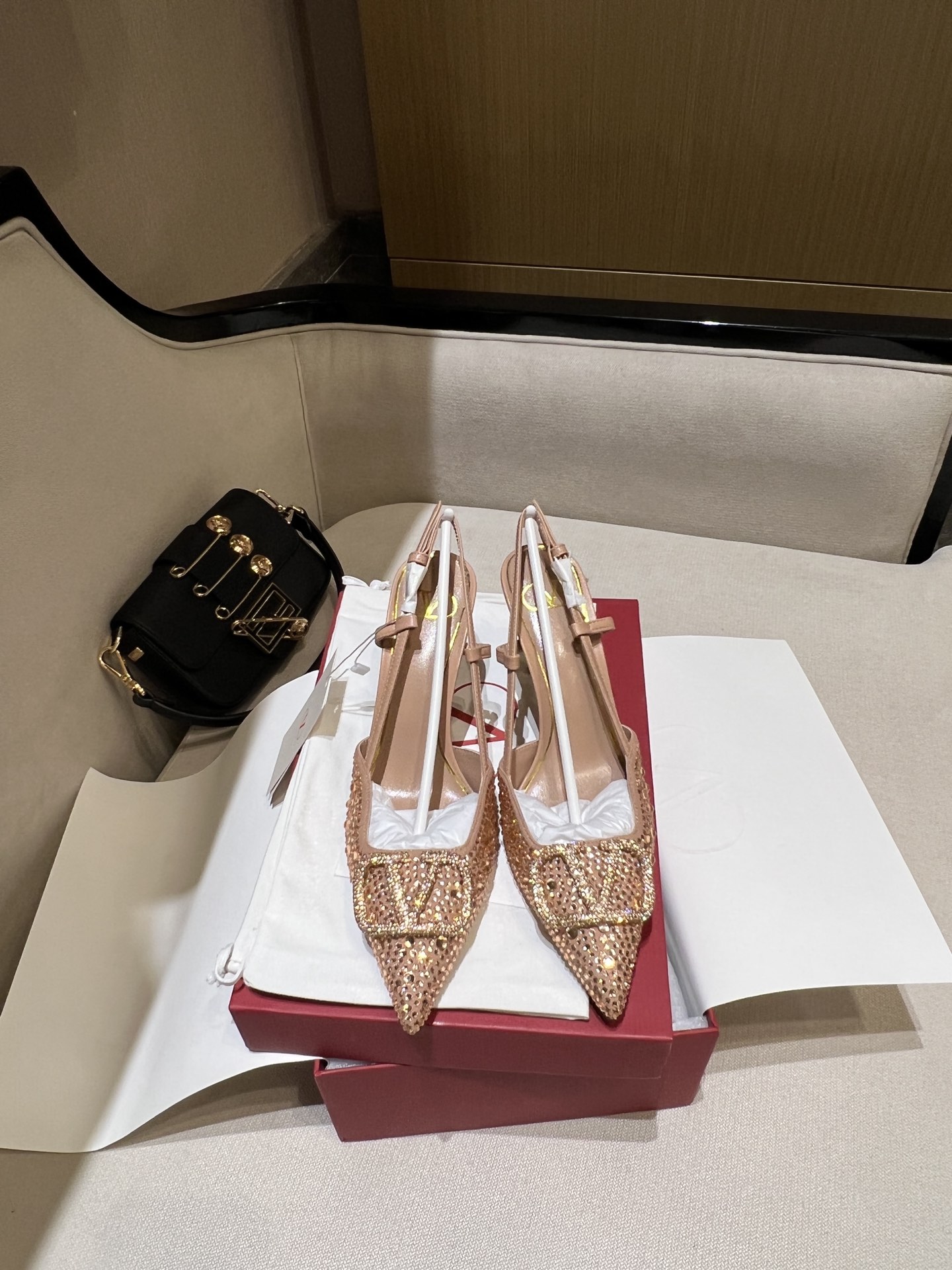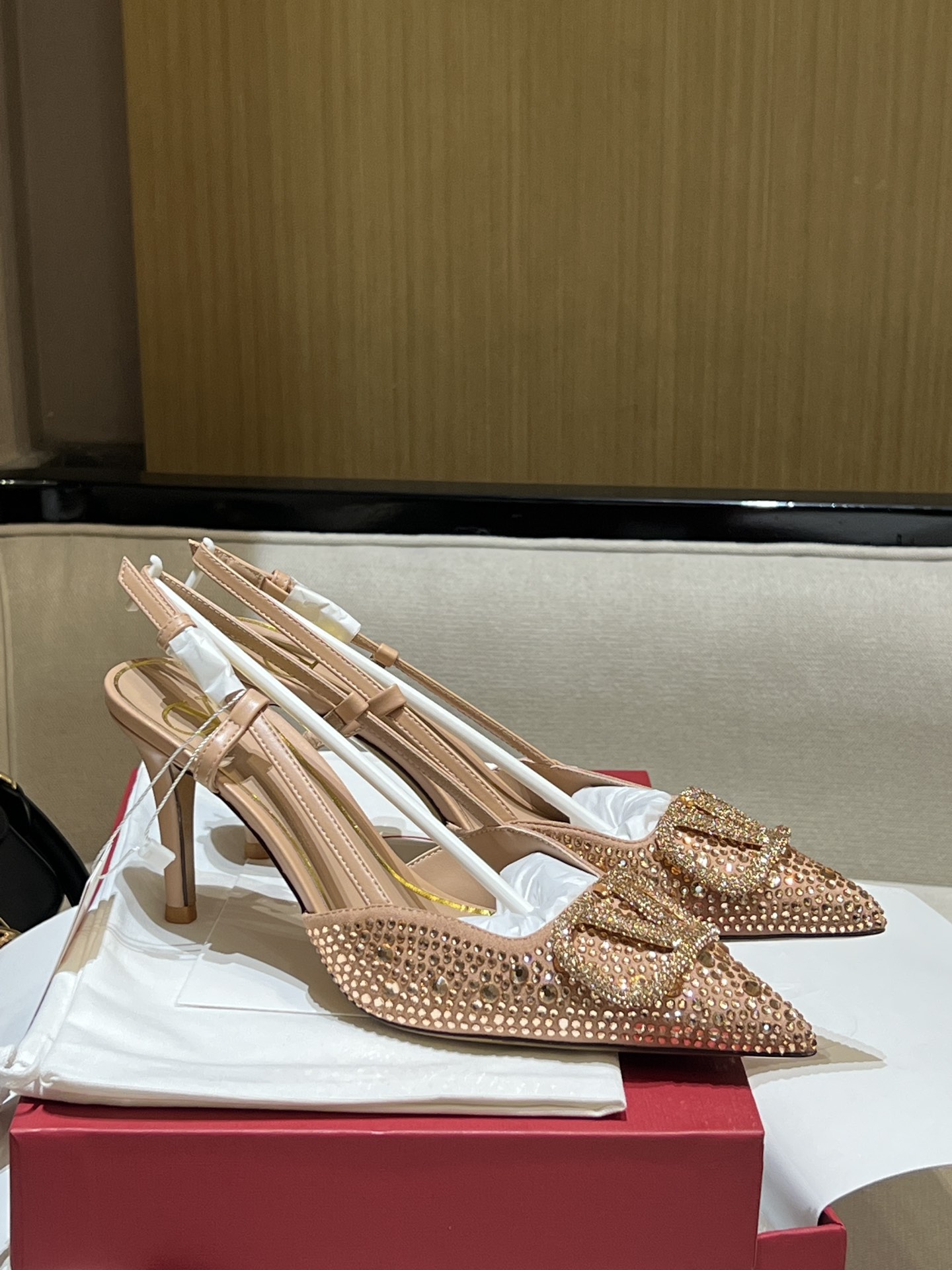 这款鞋子是AAAAA 1:1 质量 (非常棒). 使用了和原版一模一样的材料. 商标部分也保持了和华伦天奴/Valentino一样. 图片拍摄是实物鞋子拍摄, 您所收到的实物保证和我们图片一模一样.