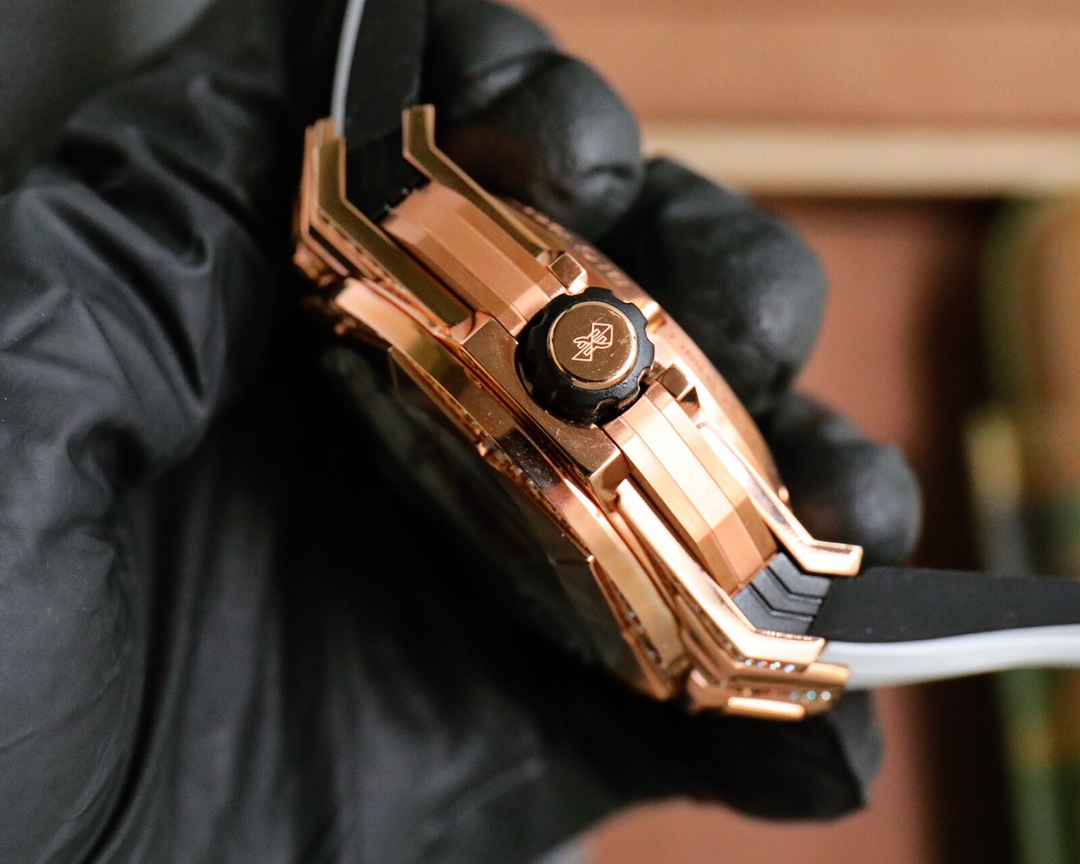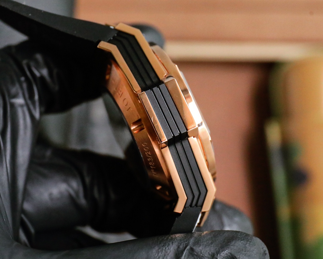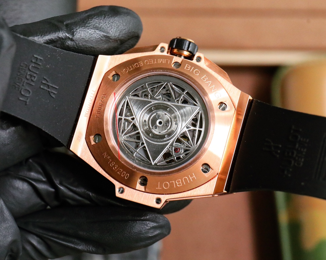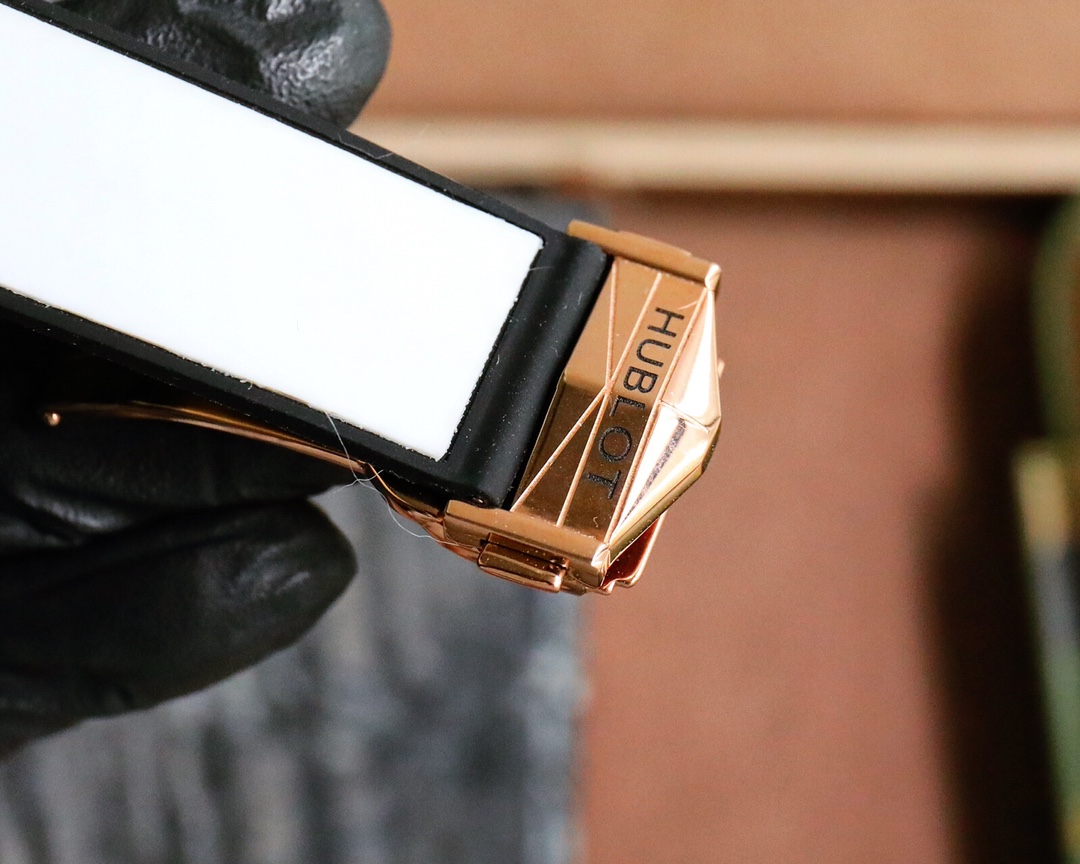 这款手表是AAAAA 1:1 质量 (非常棒). 使用了和原版一模一样的材料. 商标部分也保持了和Hublot一样. 图片拍摄是实物手表拍摄, 您所收到的实物保证和我们图片一模一样.