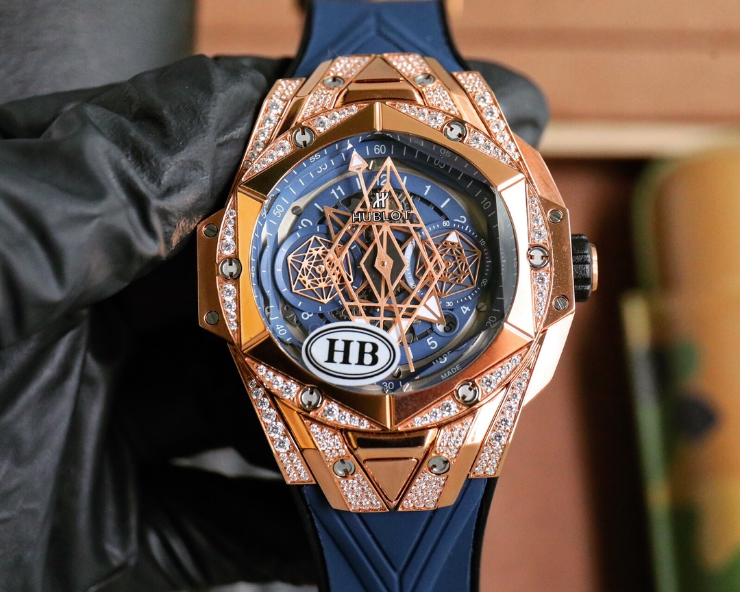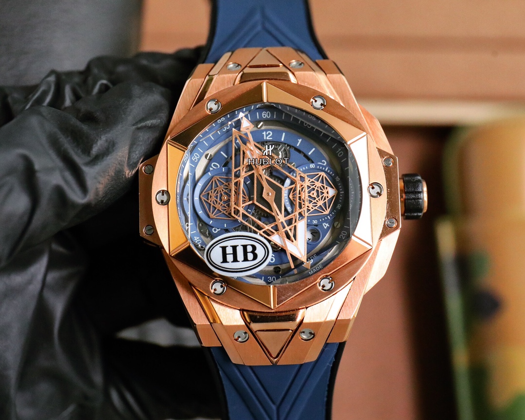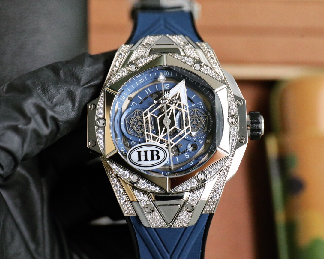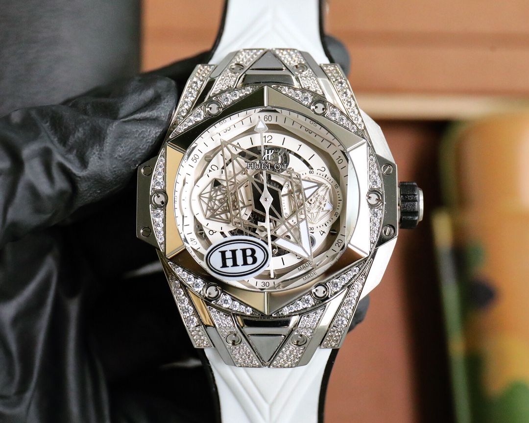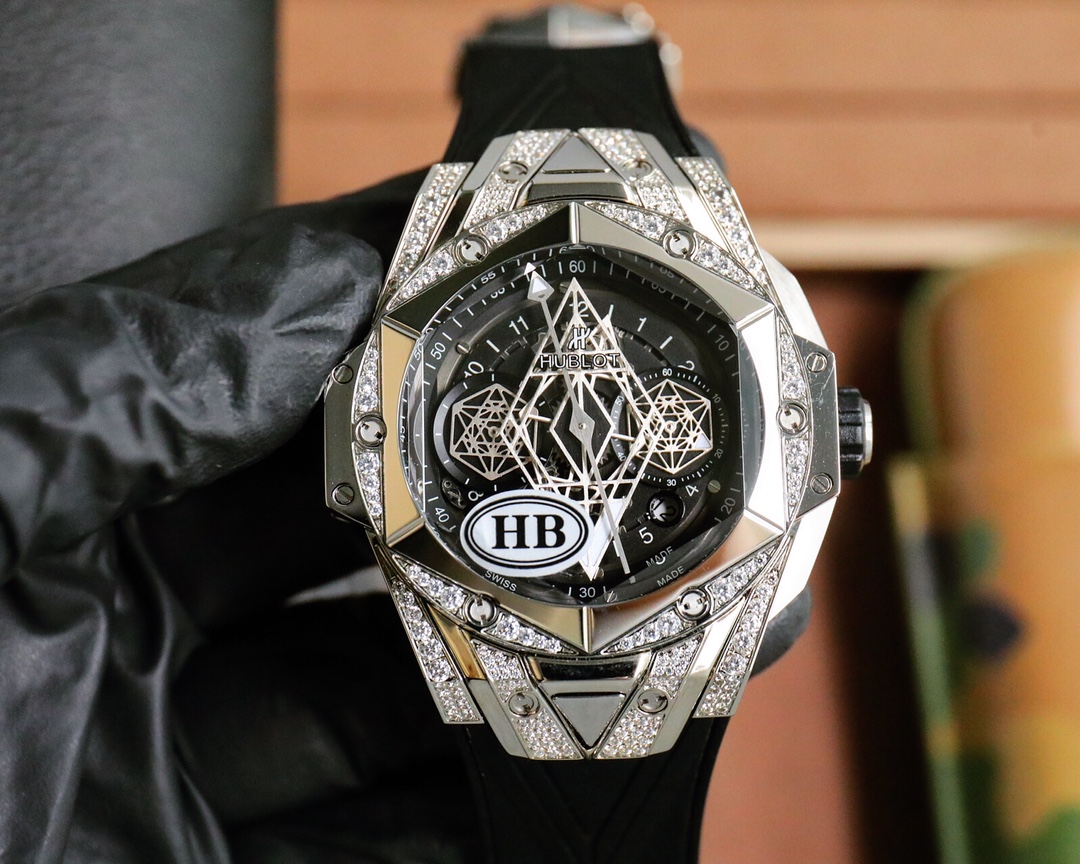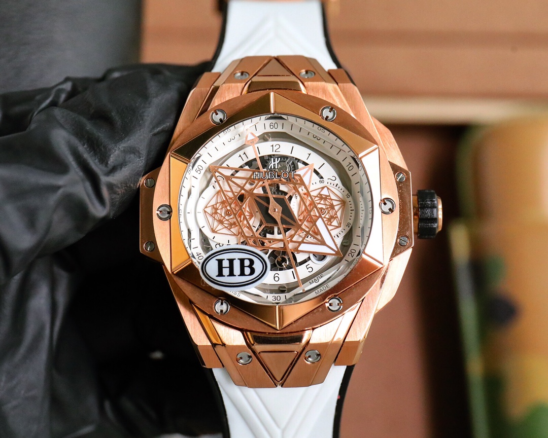 这款手表是AAAAA 1:1 质量 (非常棒). 使用了和原版一模一样的材料. 商标部分也保持了和Hublot一样. 图片拍摄是实物手表拍摄, 您所收到的实物保证和我们图片一模一样.