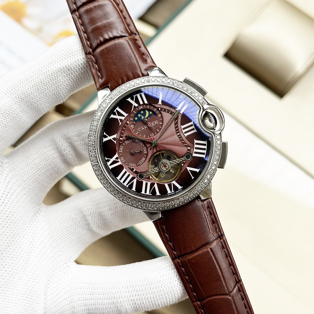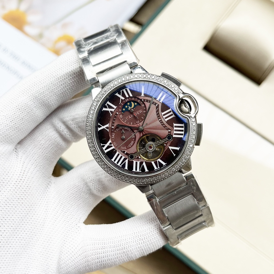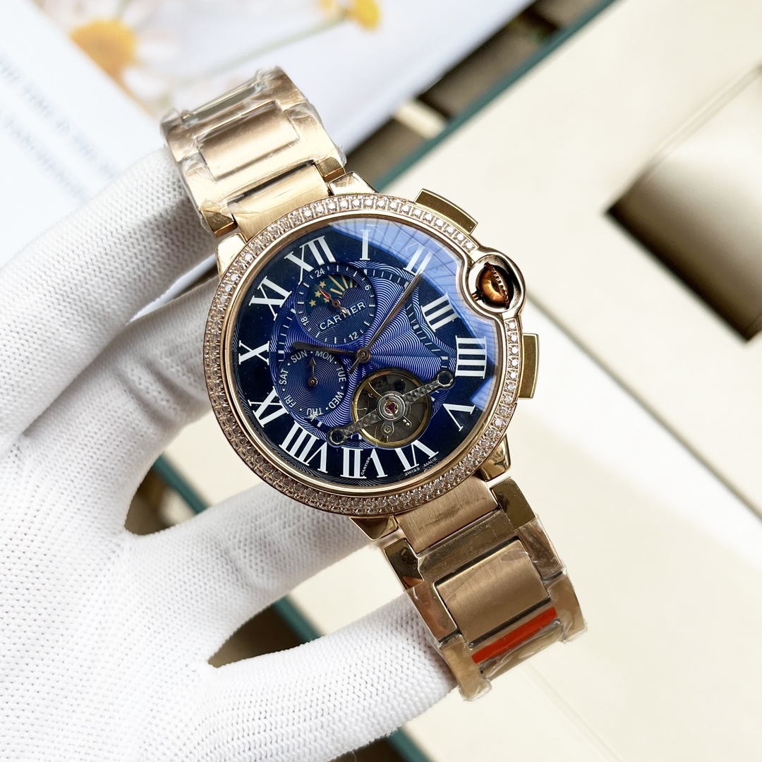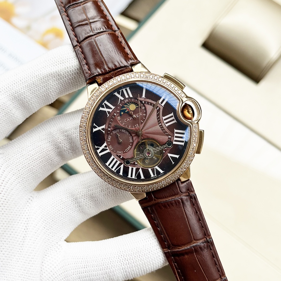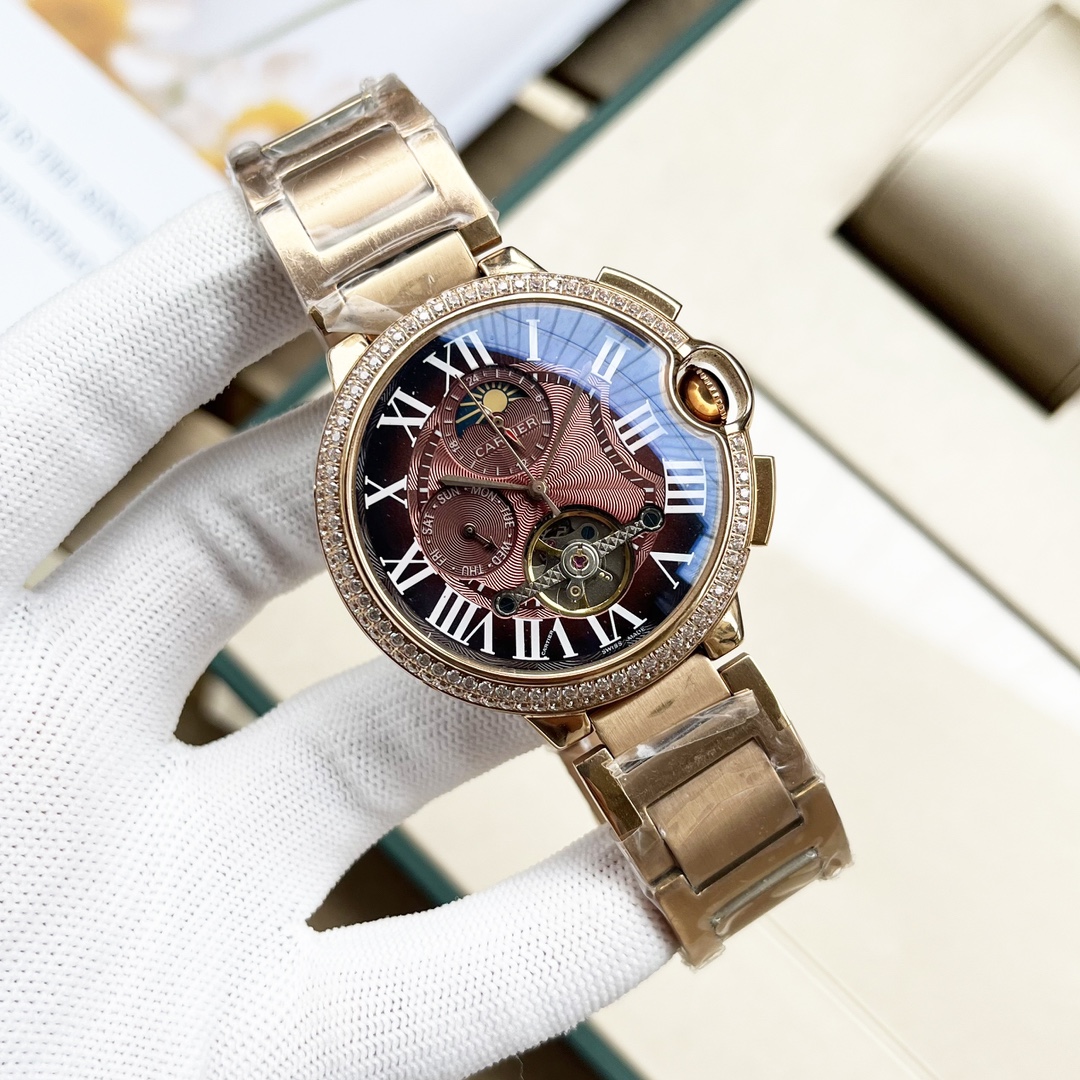 这款手表是AAAAA 1:1 质量 (非常棒). 使用了和原版一模一样的材料. 商标部分也保持了和卡地亚/Cartier一样. 图片拍摄是实物手表拍摄, 您所收到的实物保证和我们图片一模一样.