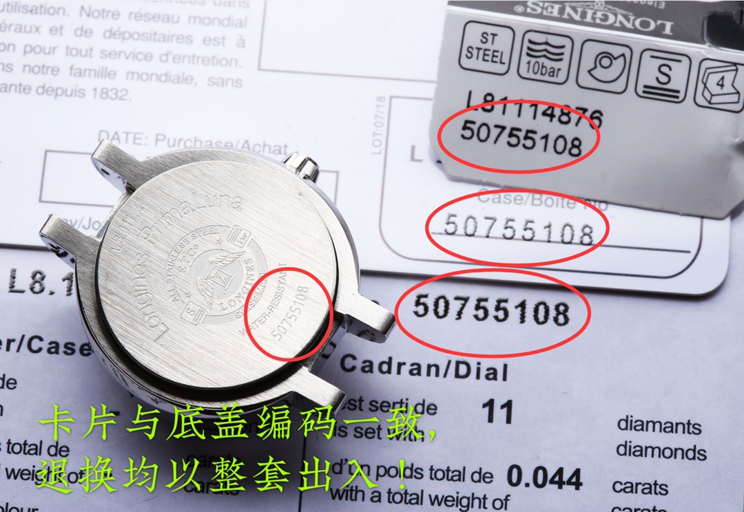 这款手表是AAAAA 1:1 质量 (非常棒). 使用了和原版一模一样的材料. 商标部分也保持了和浪琴/Longines一样. 图片拍摄是实物手表拍摄, 您所收到的实物保证和我们图片一模一样.