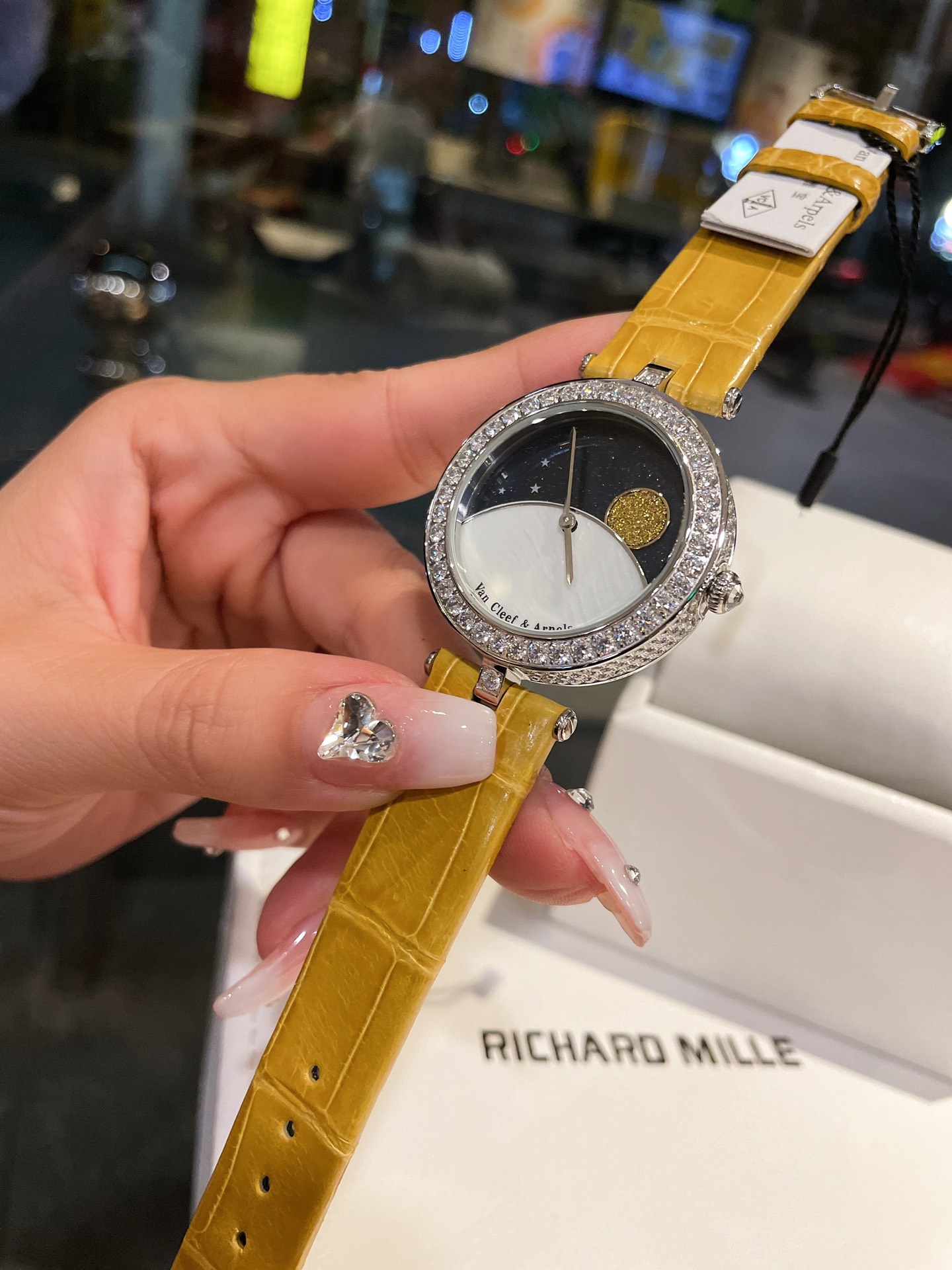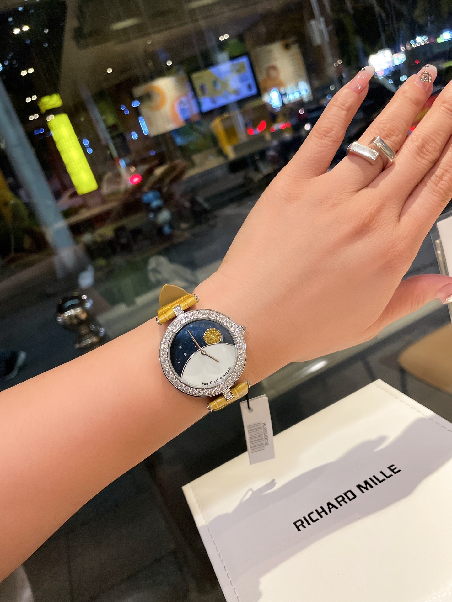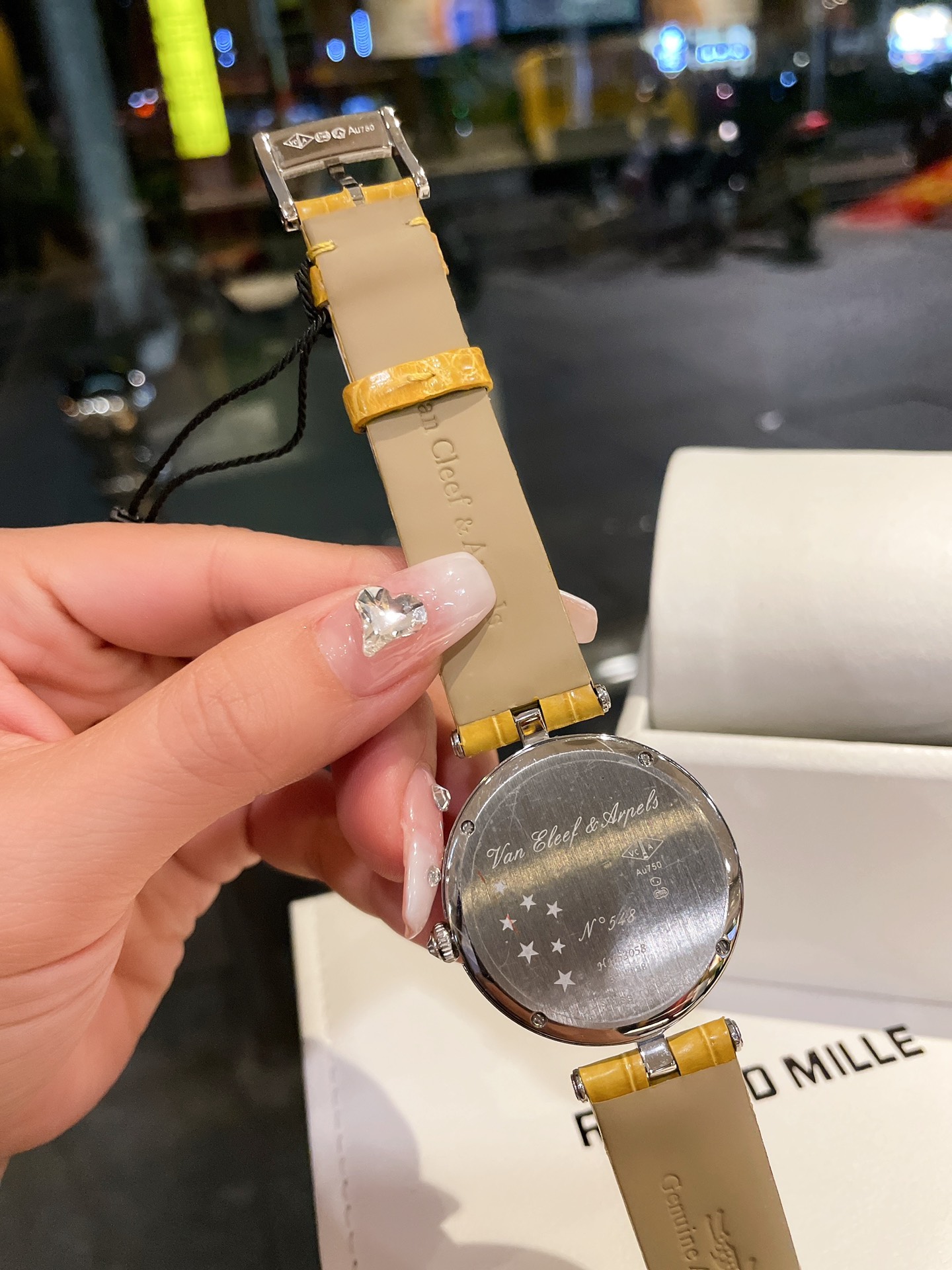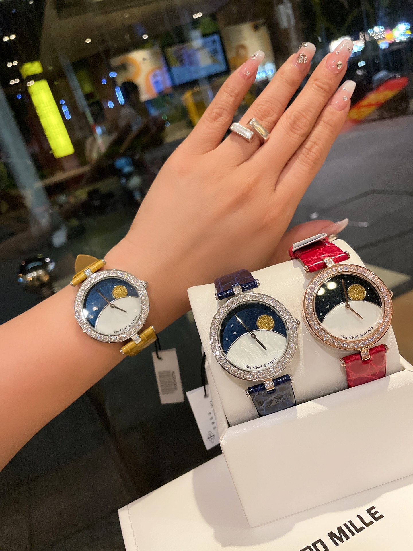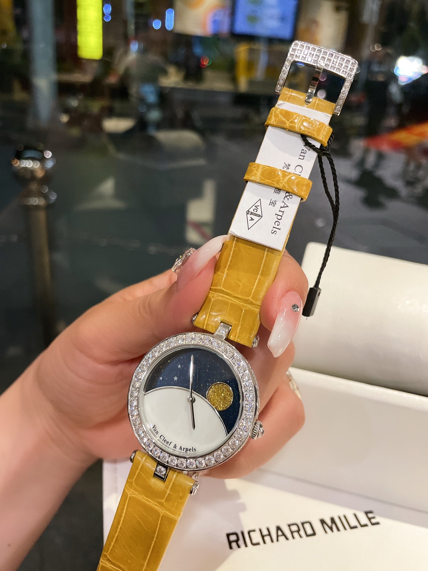 这款手表是AAAAA 1:1 质量 (非常棒). 使用了和原版一模一样的材料. 商标部分也保持了和梵克雅宝/Van Cleef & Arpels一样. 图片拍摄是实物手表拍摄, 您所收到的实物保证和我们图片一模一样.