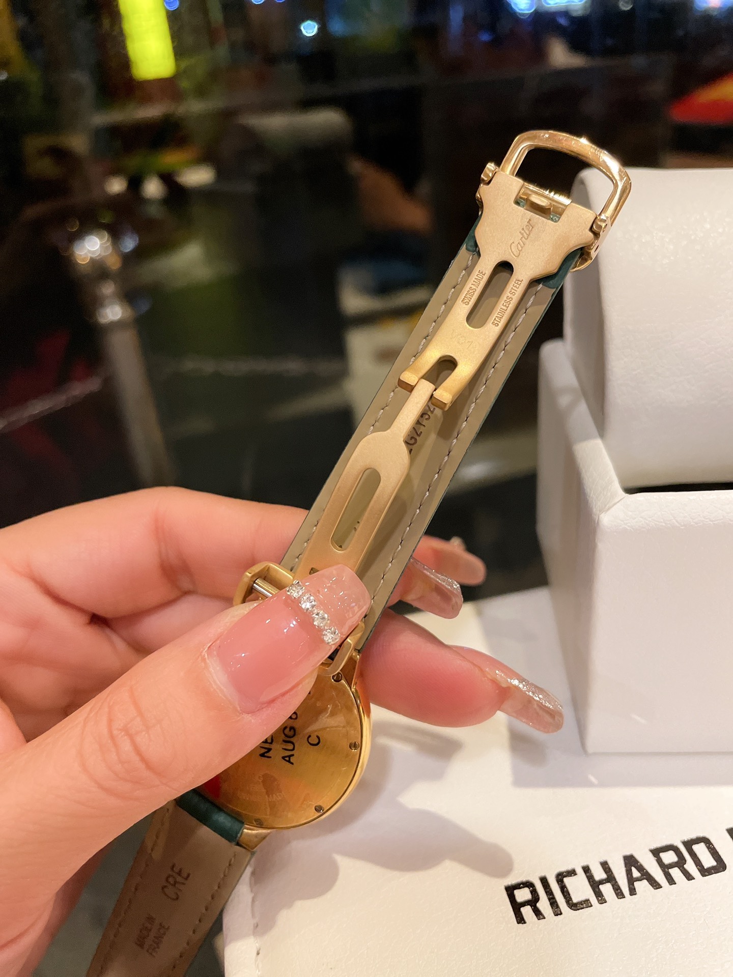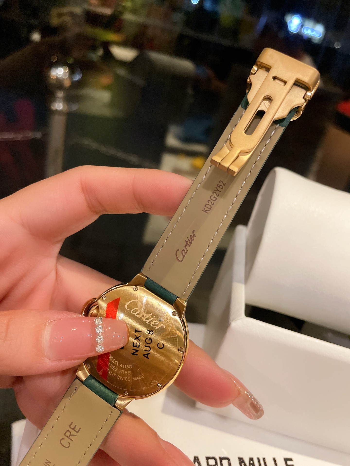 这款手表是AAAAA 1:1 质量 (非常棒). 使用了和原版一模一样的材料. 商标部分也保持了和卡地亚/Cartier一样. 图片拍摄是实物手表拍摄, 您所收到的实物保证和我们图片一模一样.