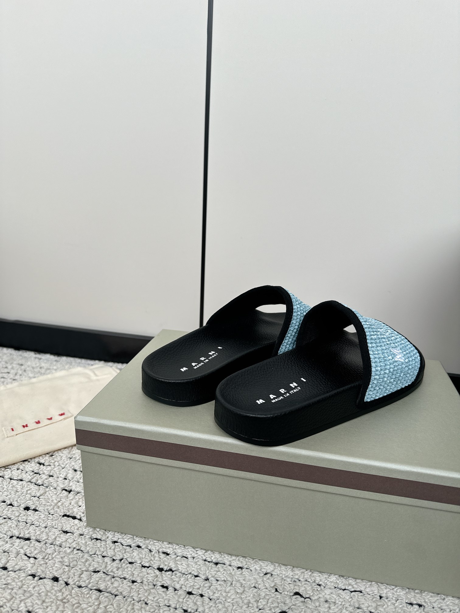 这款鞋子是AAAAA 1:1 质量 (非常棒). 使用了和原版一模一样的材料. 商标部分也保持了和马尔尼/Marni一样. 图片拍摄是实物鞋子拍摄, 您所收到的实物保证和我们图片一模一样.
