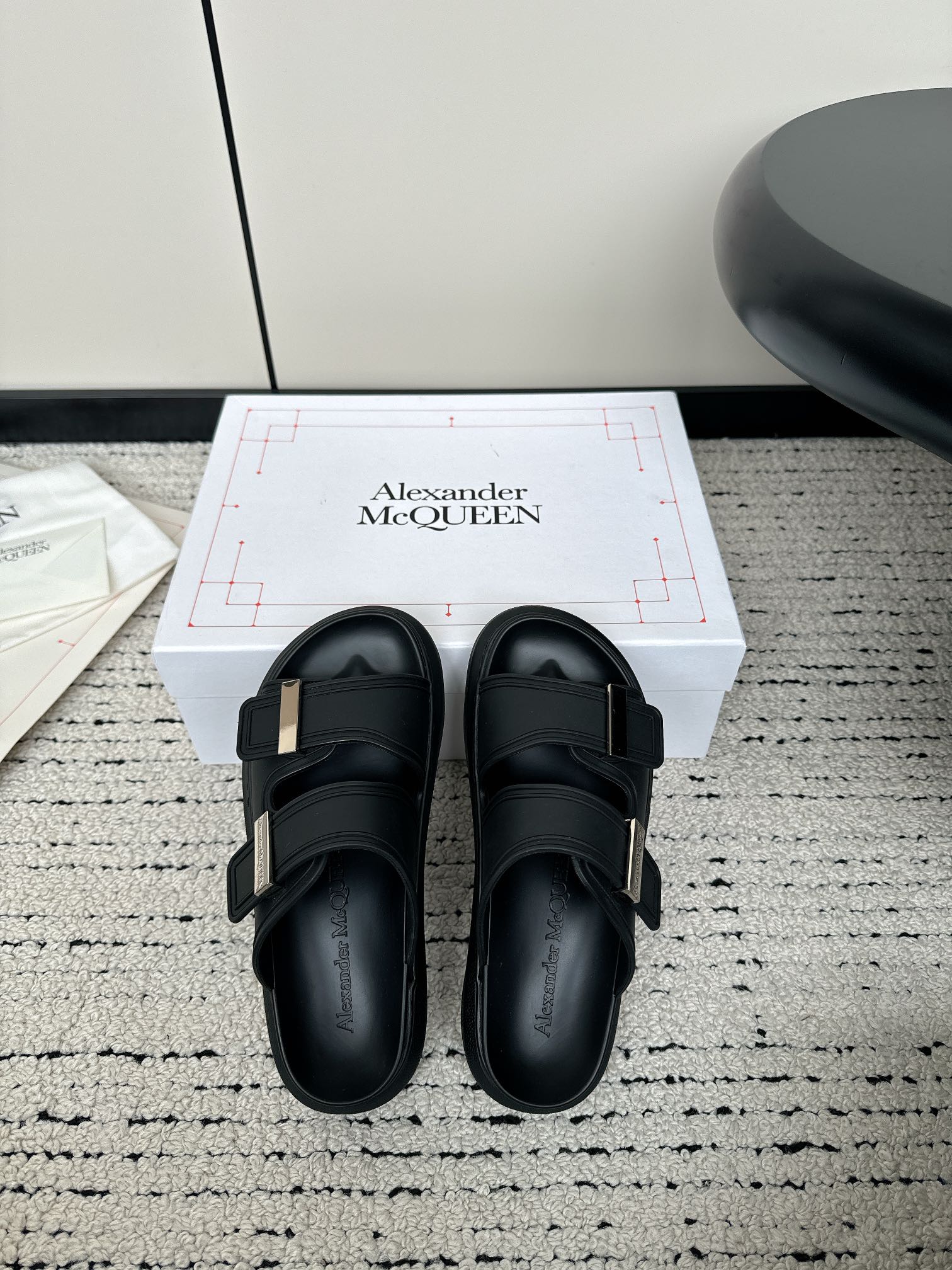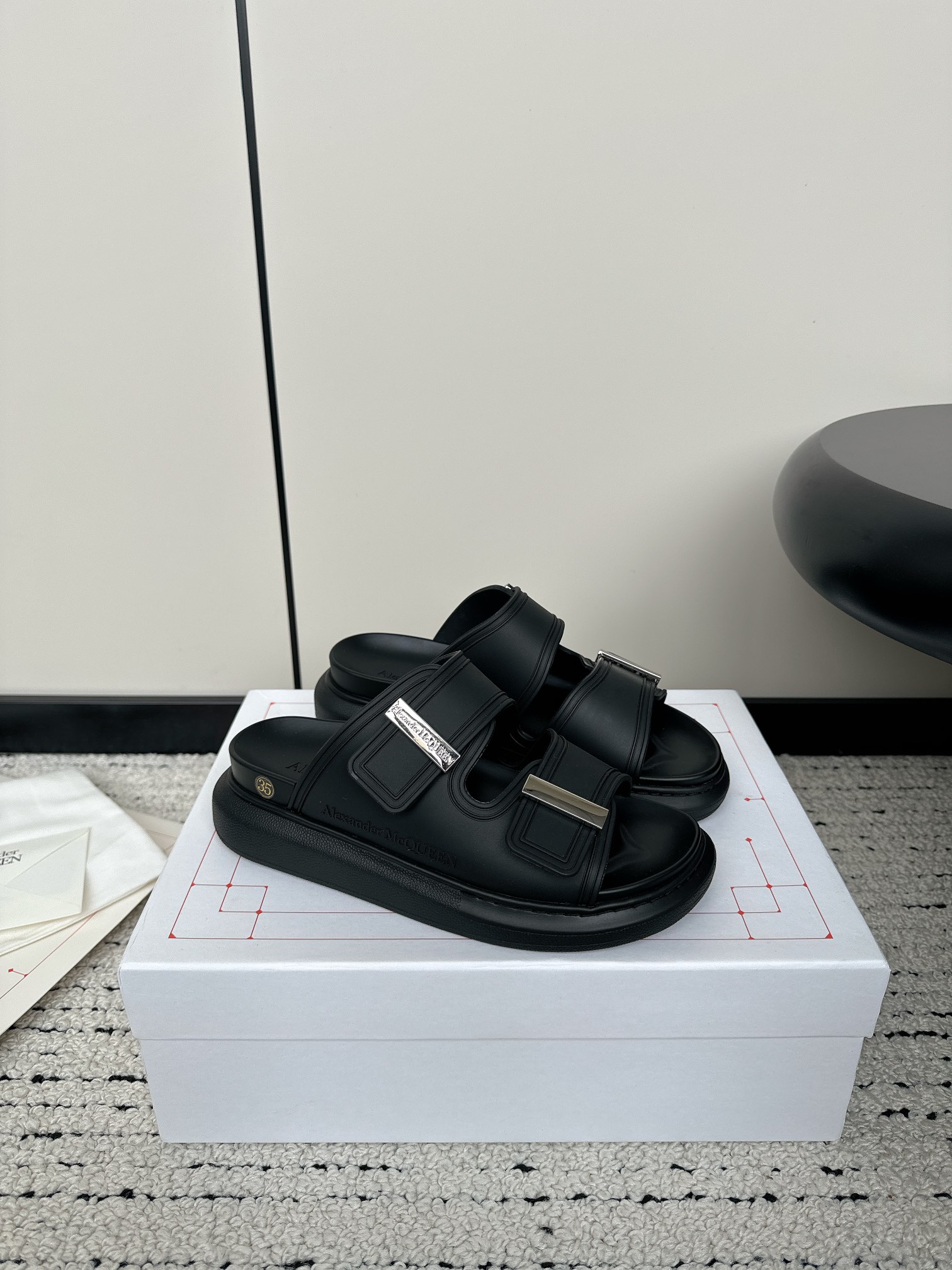 这款鞋子是AAAAA 1:1 质量 (非常棒). 使用了和原版一模一样的材料. 商标部分也保持了和亚历山大·麦昆/McQueen一样. 图片拍摄是实物鞋子拍摄, 您所收到的实物保证和我们图片一模一样.