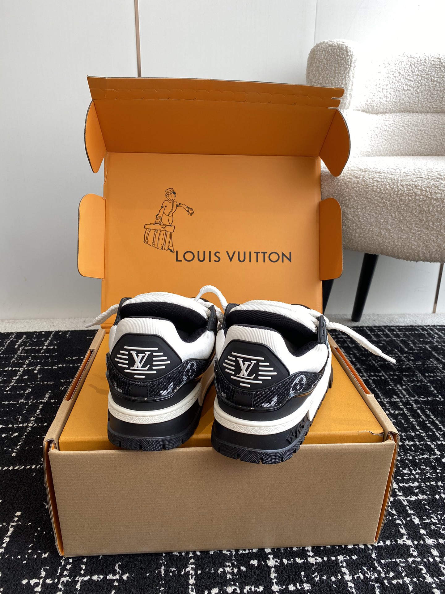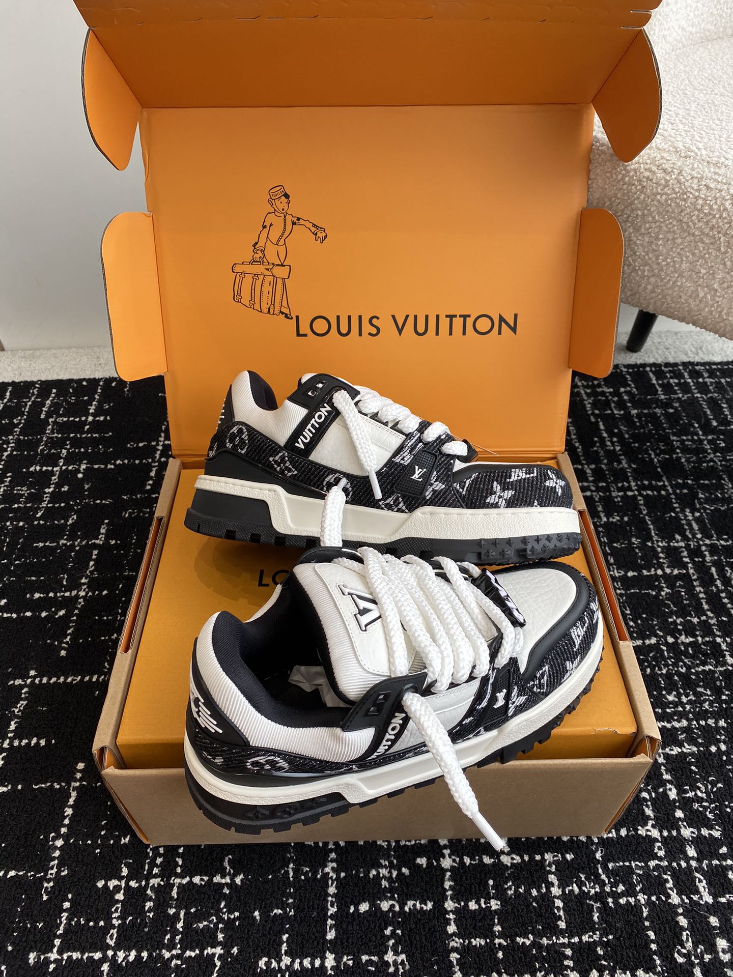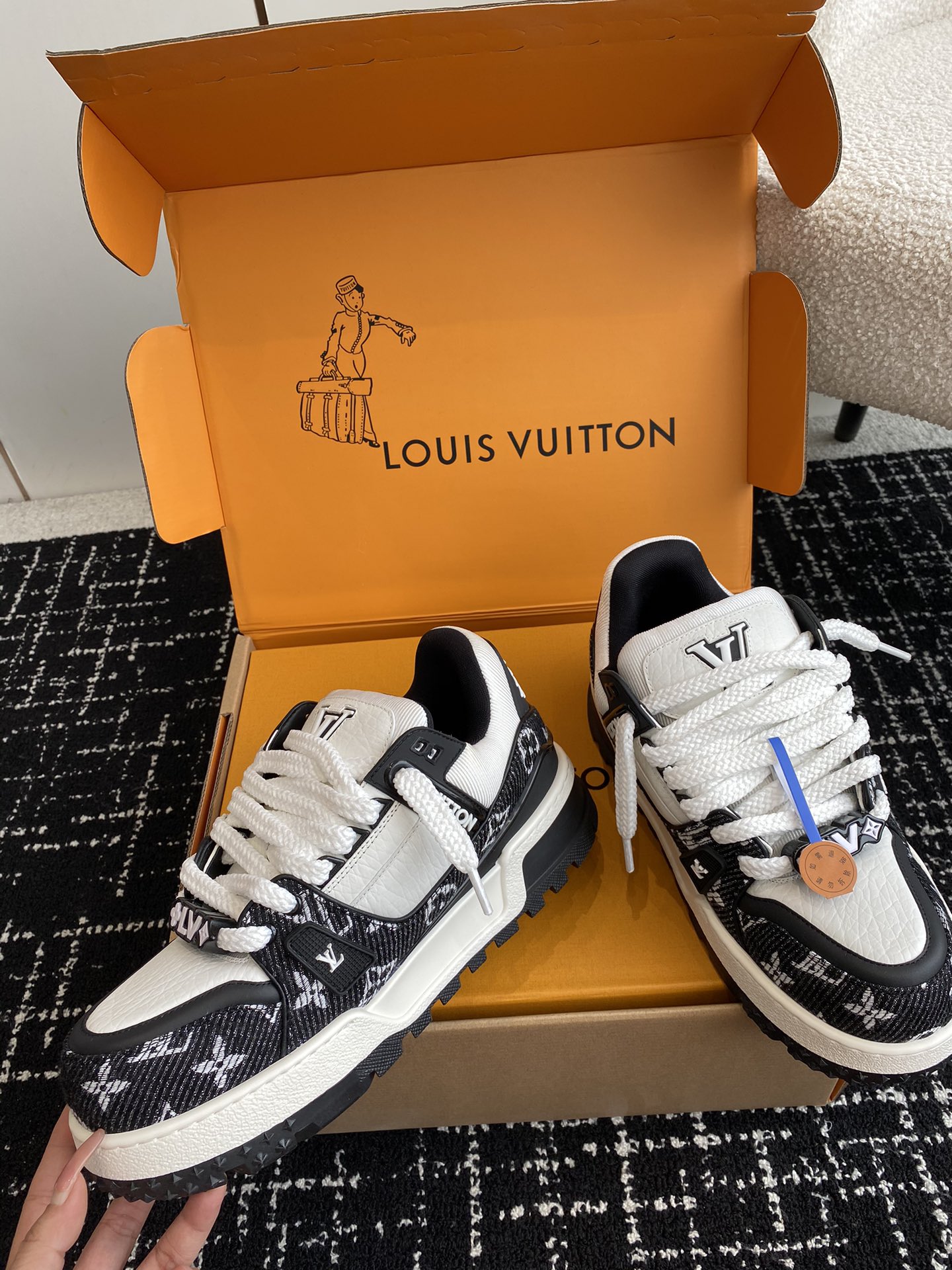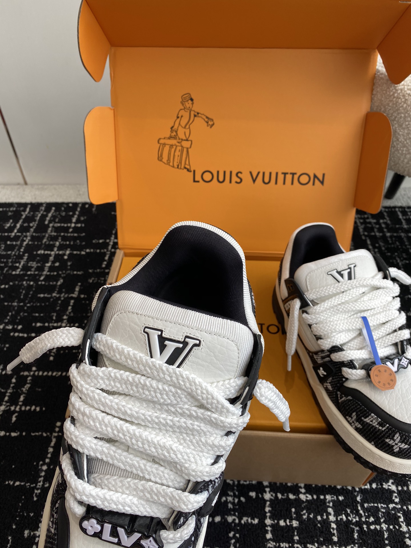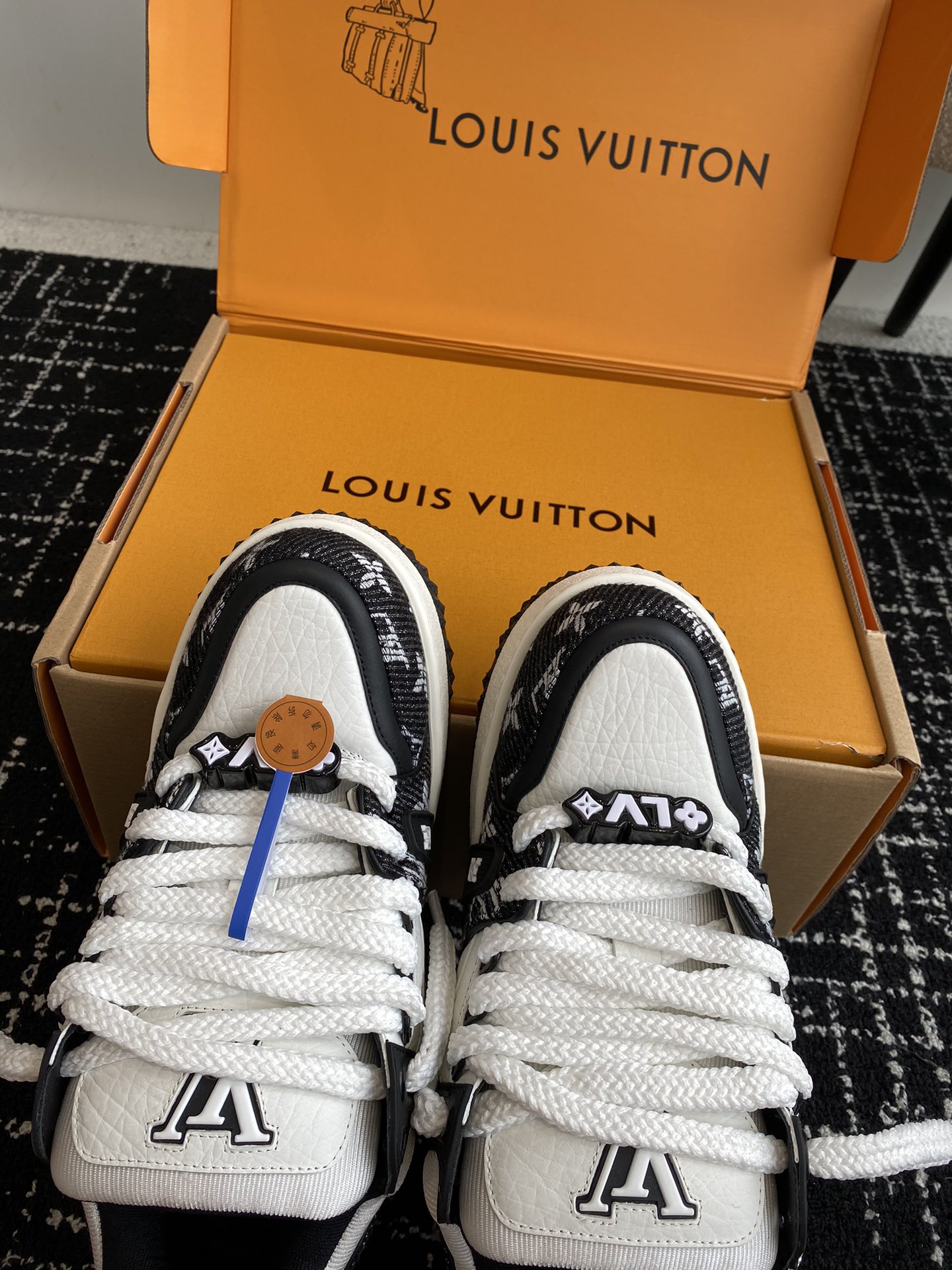 这款鞋子是AAAAA 1:1 质量 (非常棒). 使用了和原版一模一样的材料. 商标部分也保持了和路易威登/Louis Vuitton一样. 图片拍摄是实物鞋子拍摄, 您所收到的实物保证和我们图片一模一样.