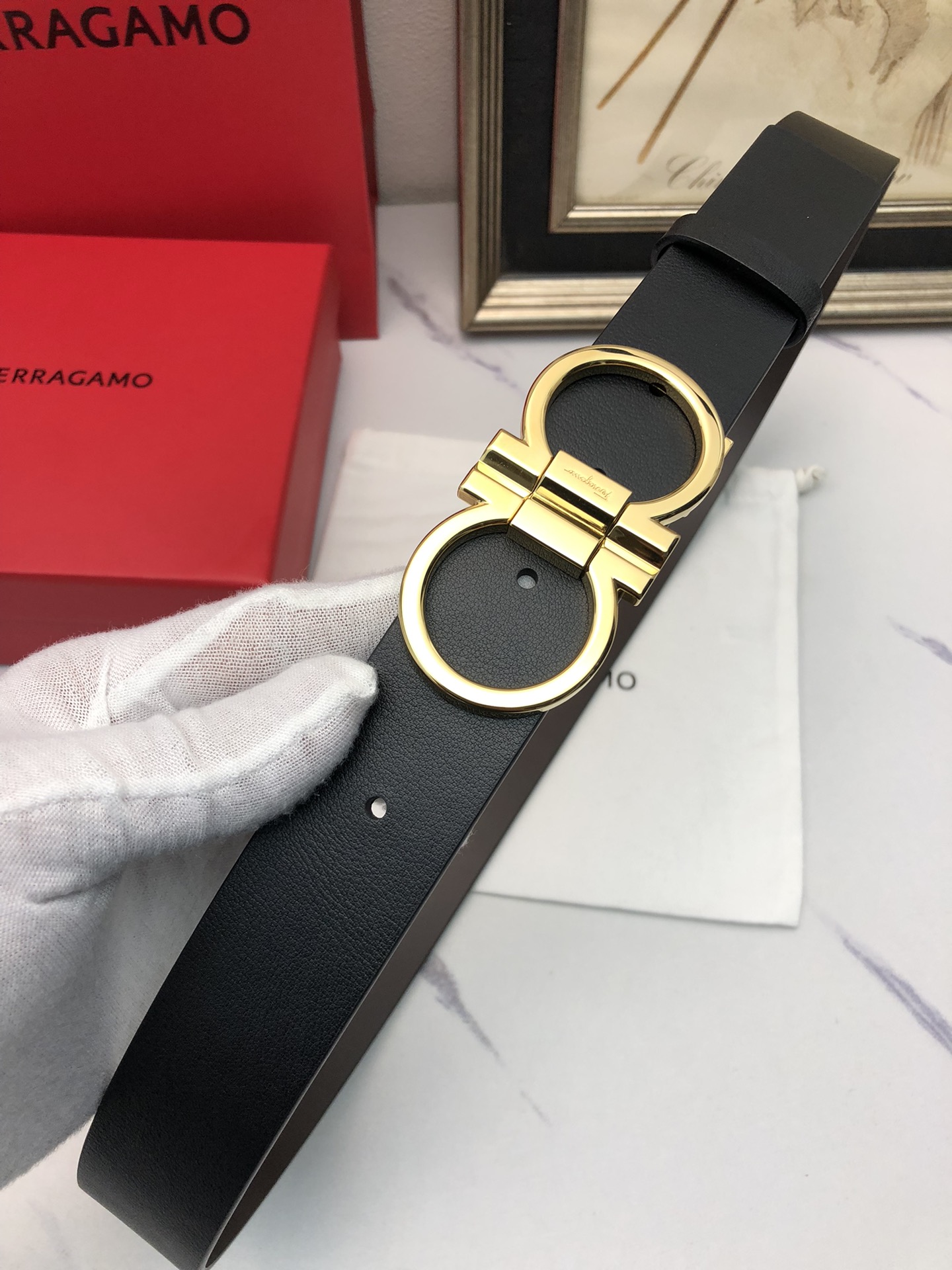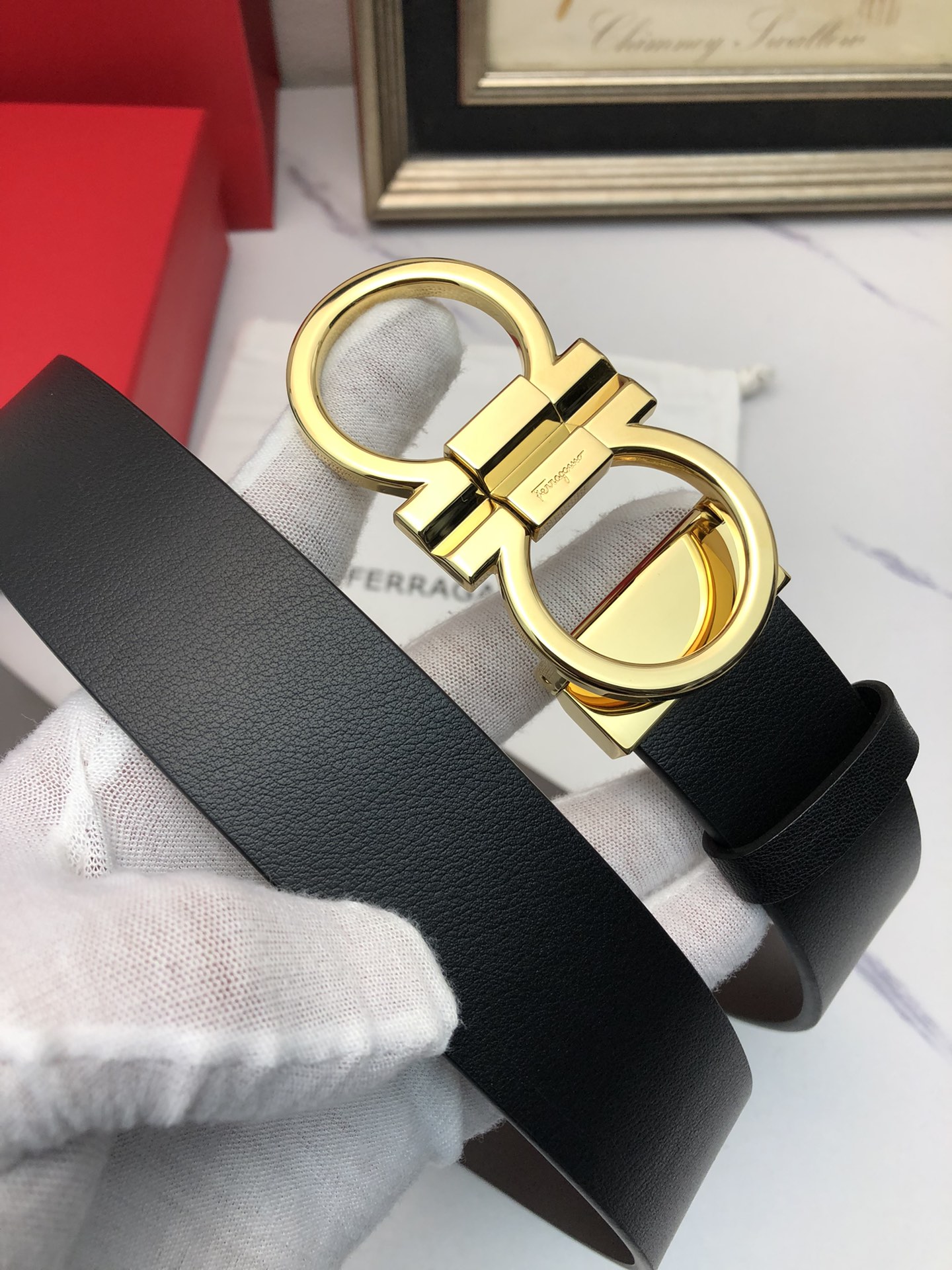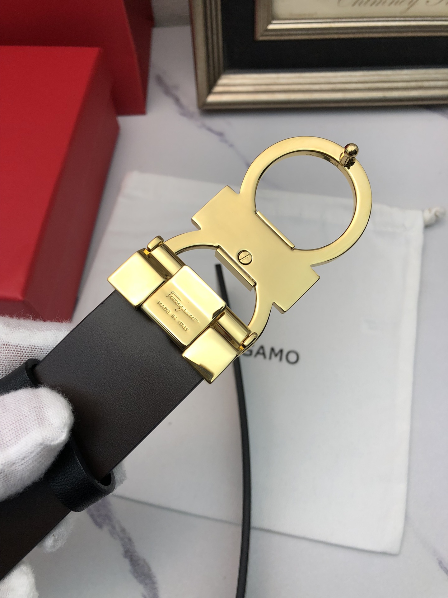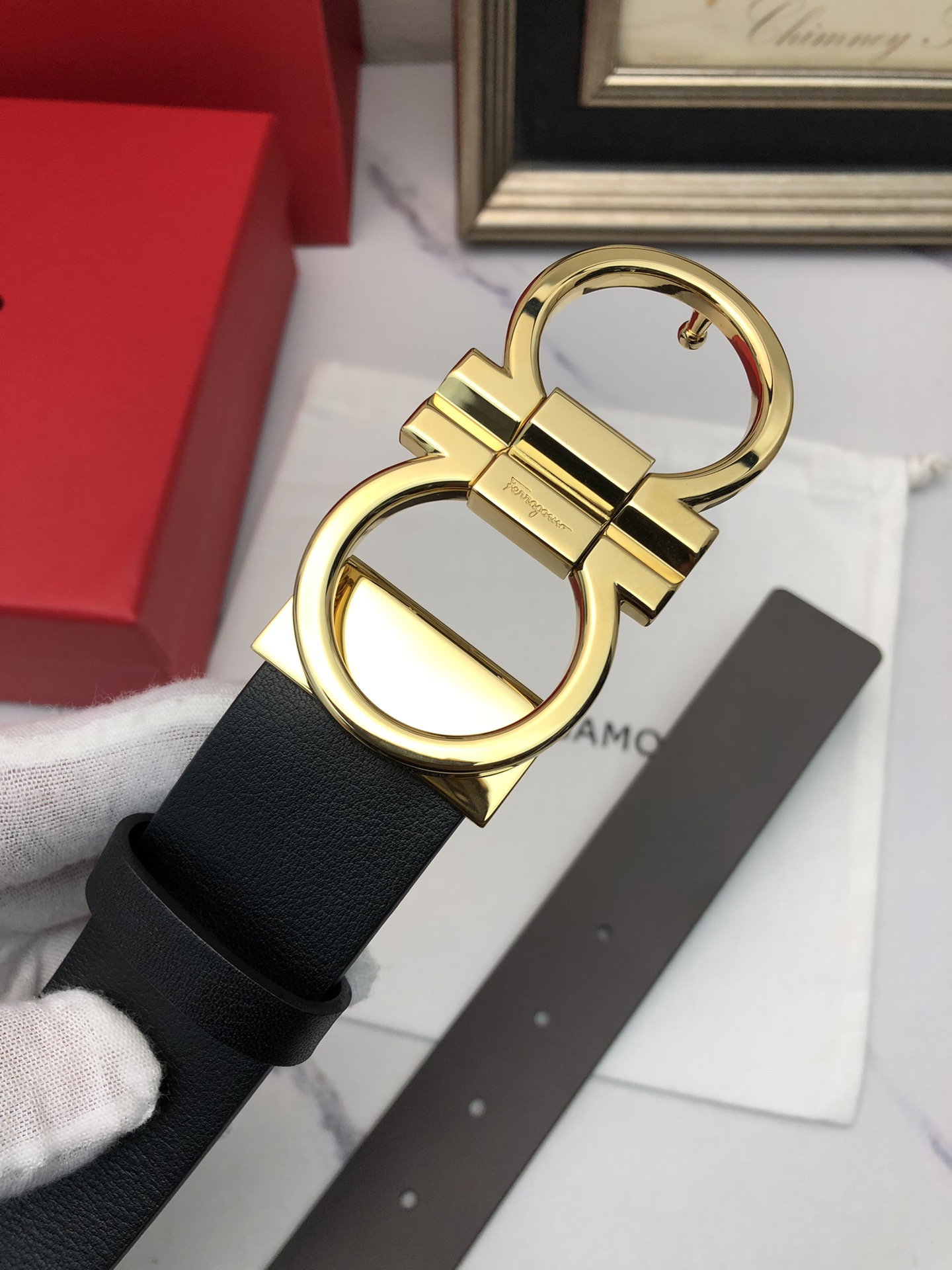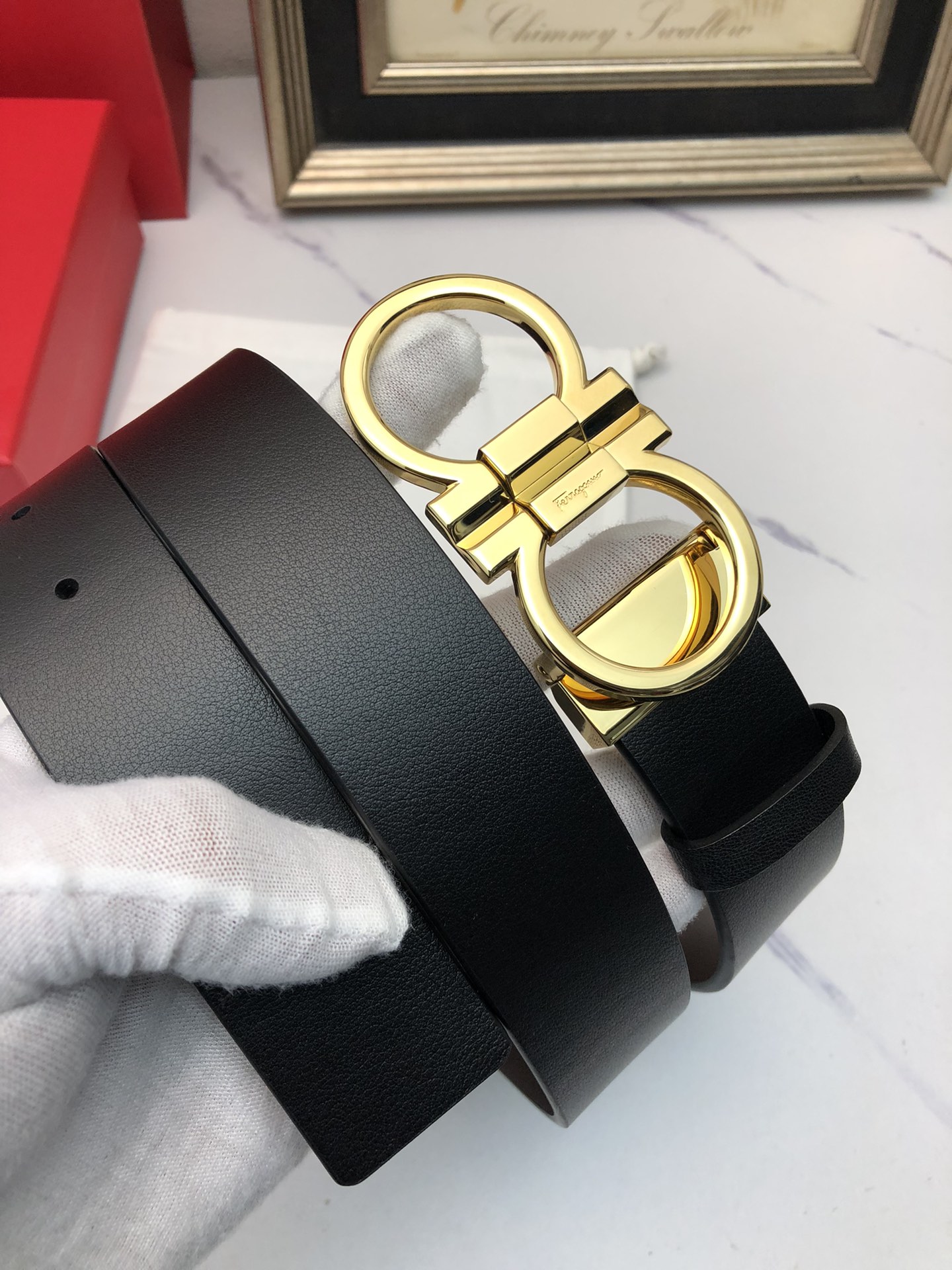 这款皮带是AAAAA 1:1 质量 (非常棒). 使用了和原版一模一样的材料. 商标部分也保持了和菲拉格慕/Salvatore Ferragamo一样. 图片拍摄是实物皮带拍摄, 您所收到的实物保证和我们图片一模一样.