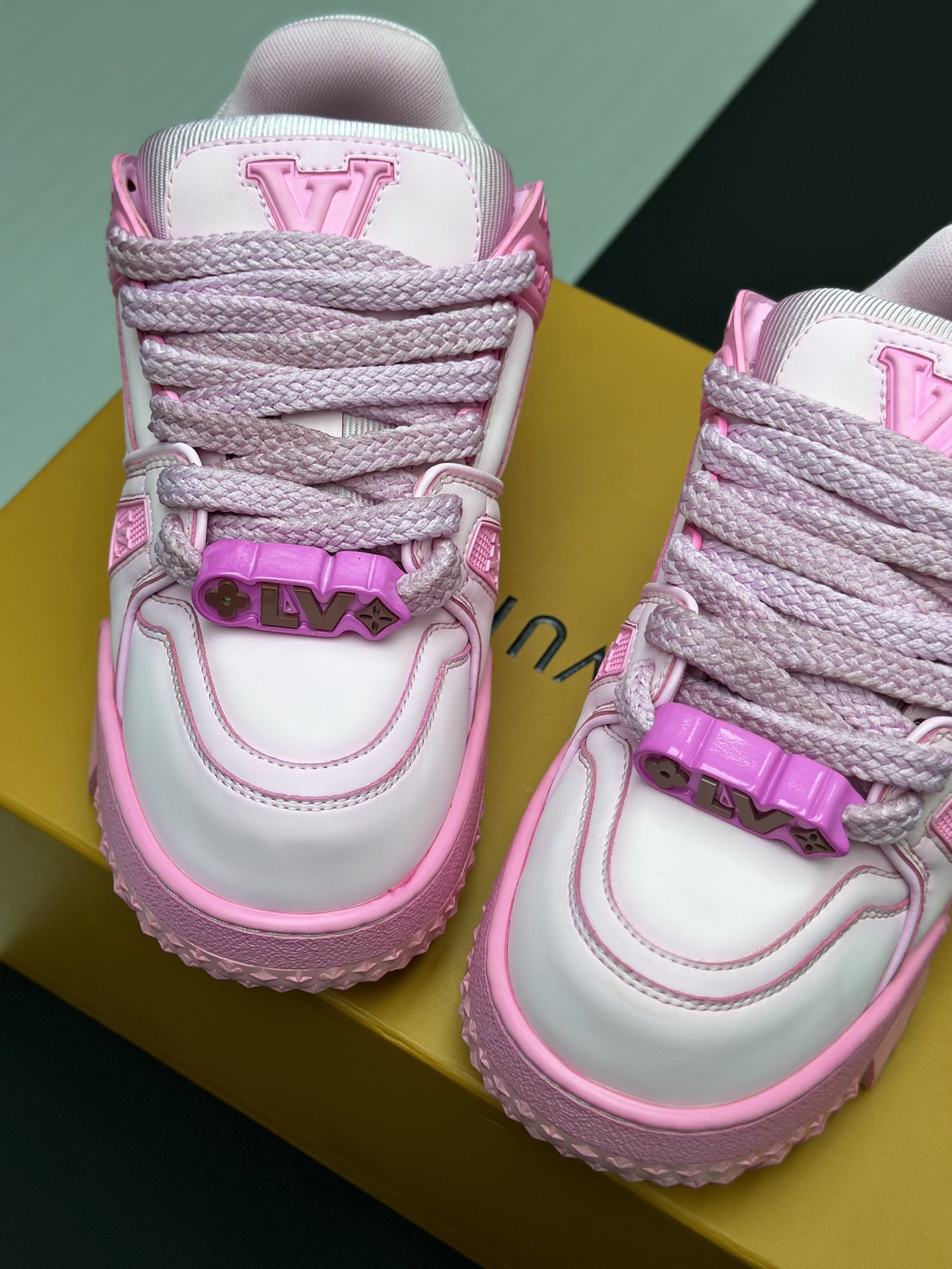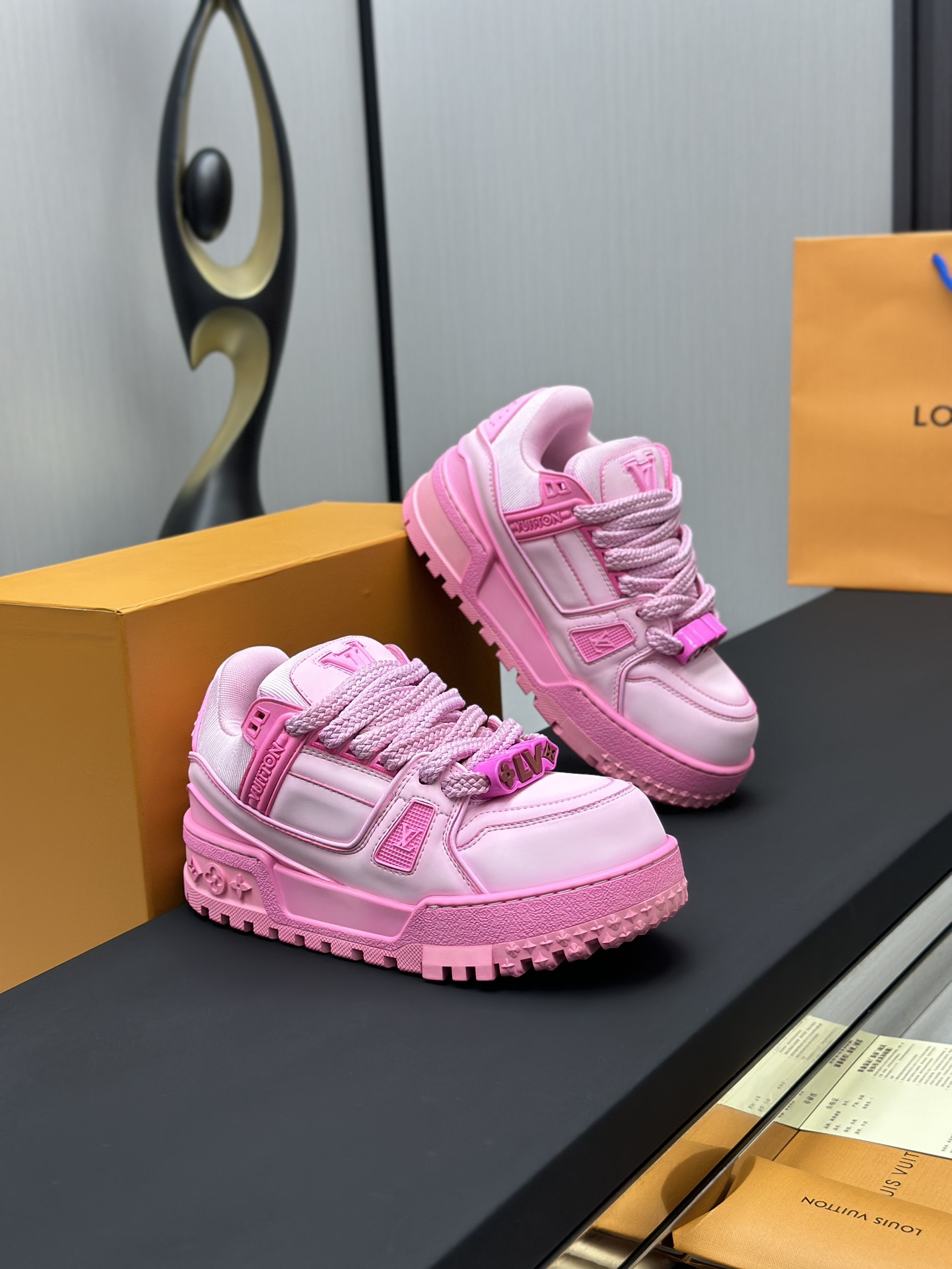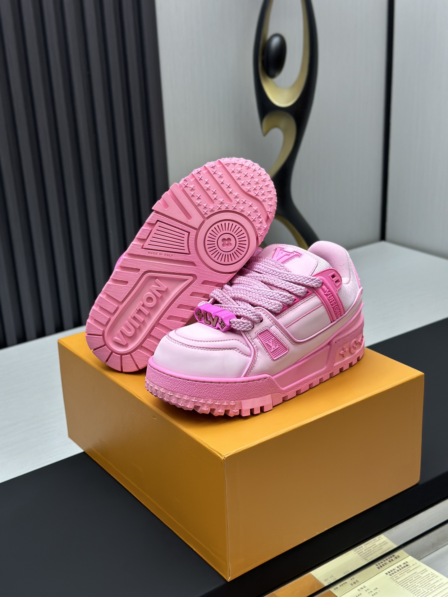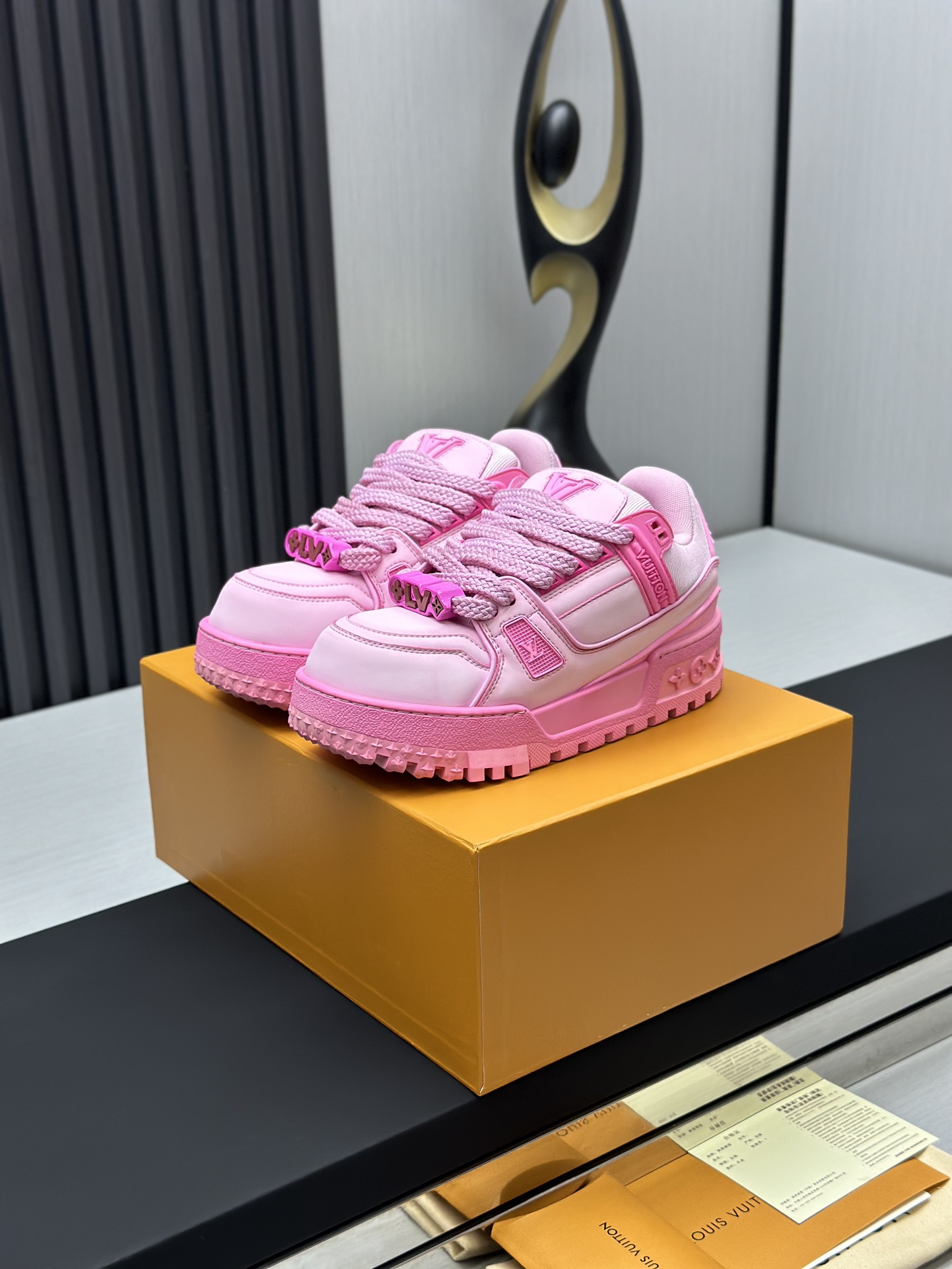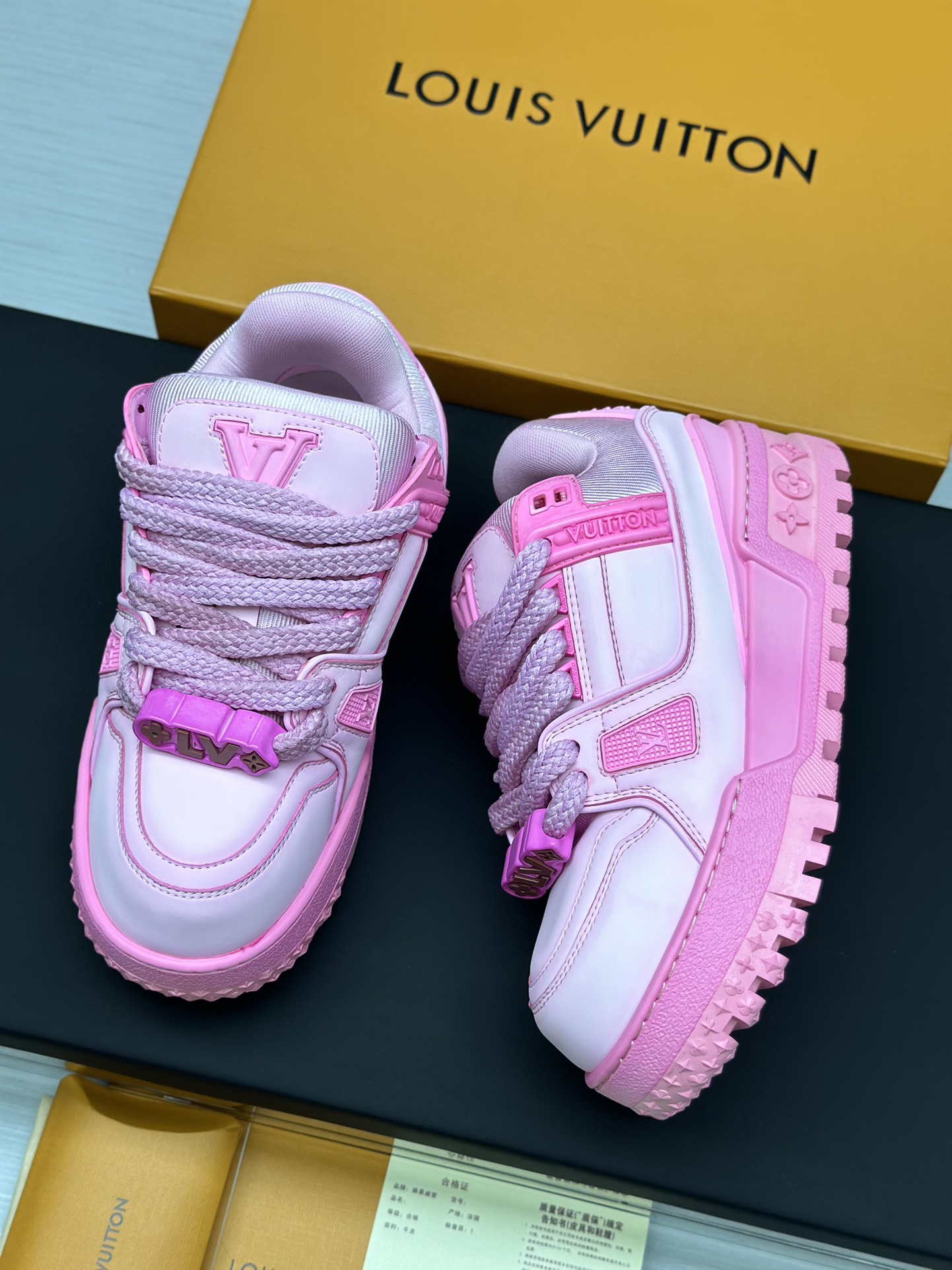 这款鞋子是AAAAA 1:1 质量 (非常棒). 使用了和原版一模一样的材料. 商标部分也保持了和路易威登/Louis Vuitton一样. 图片拍摄是实物鞋子拍摄, 您所收到的实物保证和我们图片一模一样.
