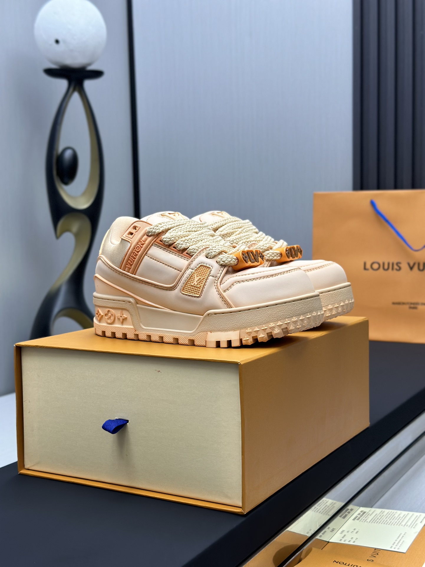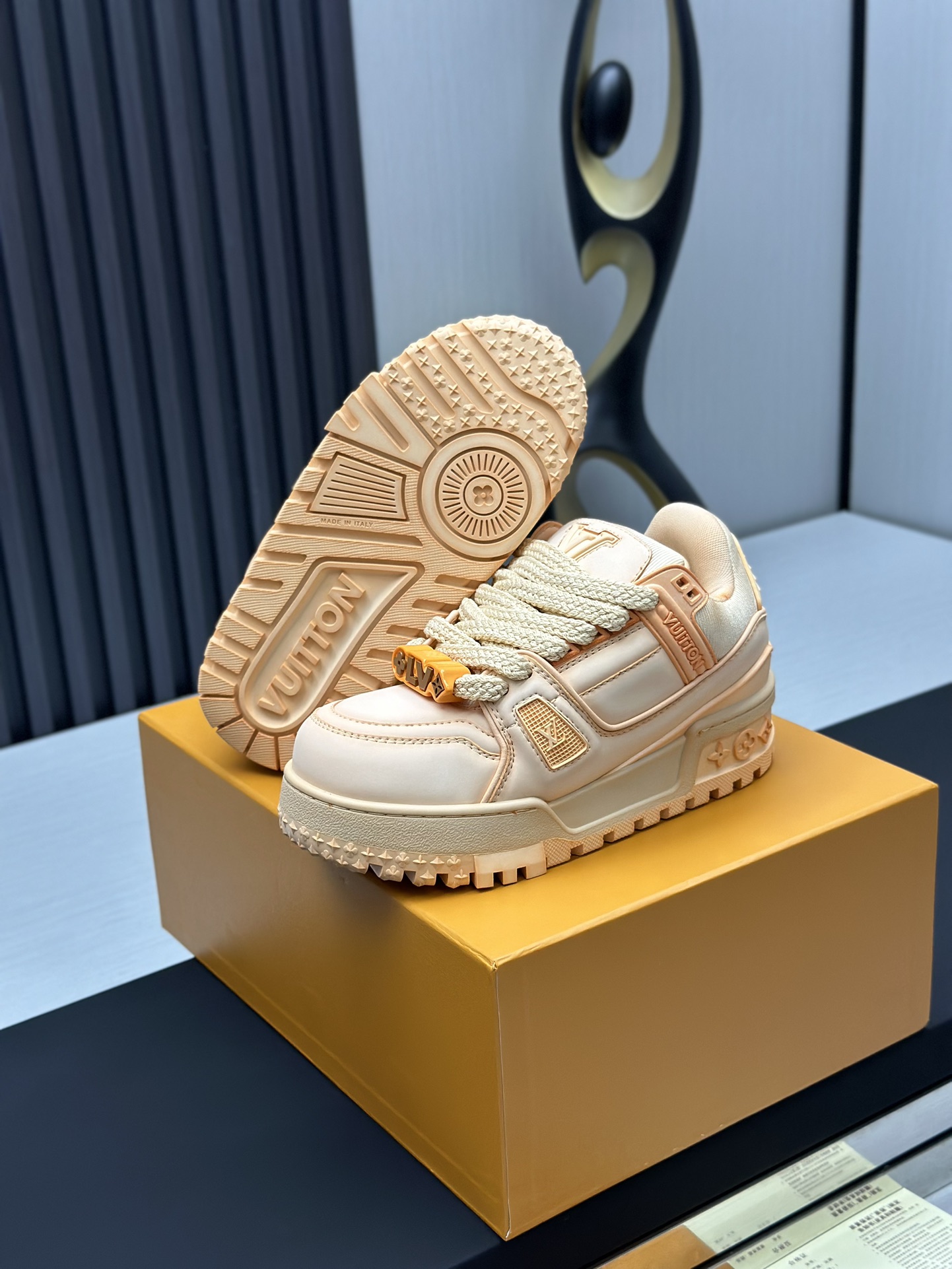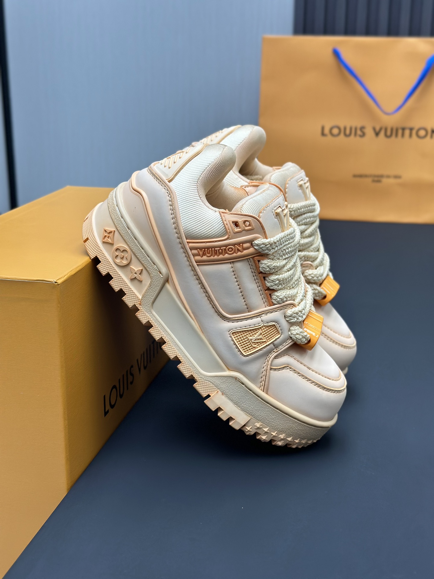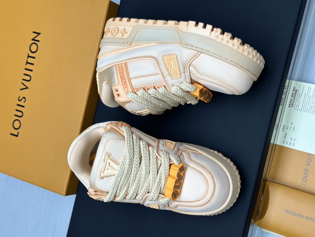 这款鞋子是AAAAA 1:1 质量 (非常棒). 使用了和原版一模一样的材料. 商标部分也保持了和路易威登/Louis Vuitton一样. 图片拍摄是实物鞋子拍摄, 您所收到的实物保证和我们图片一模一样.