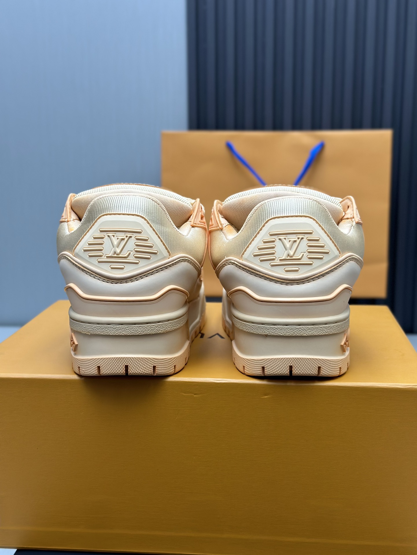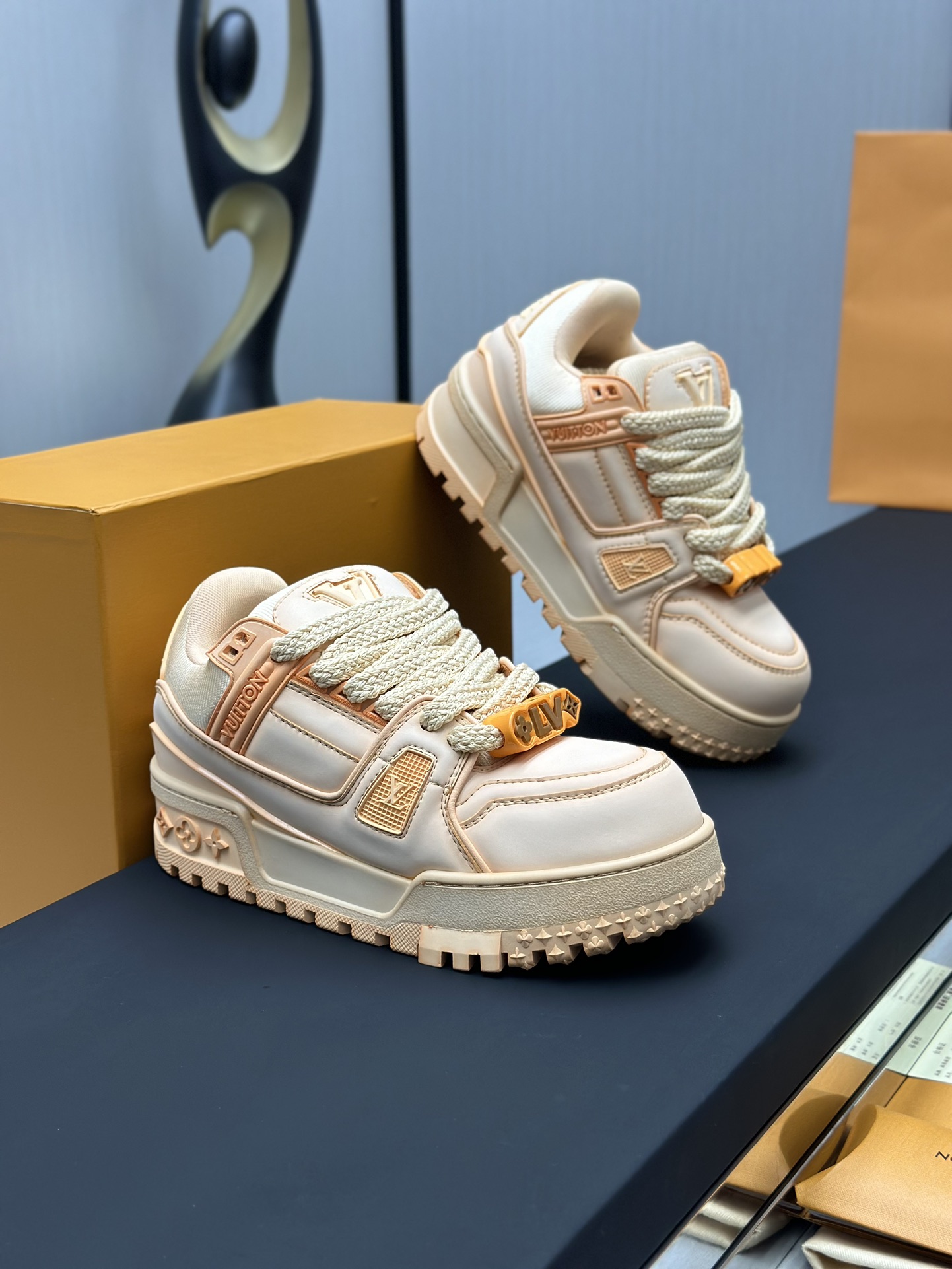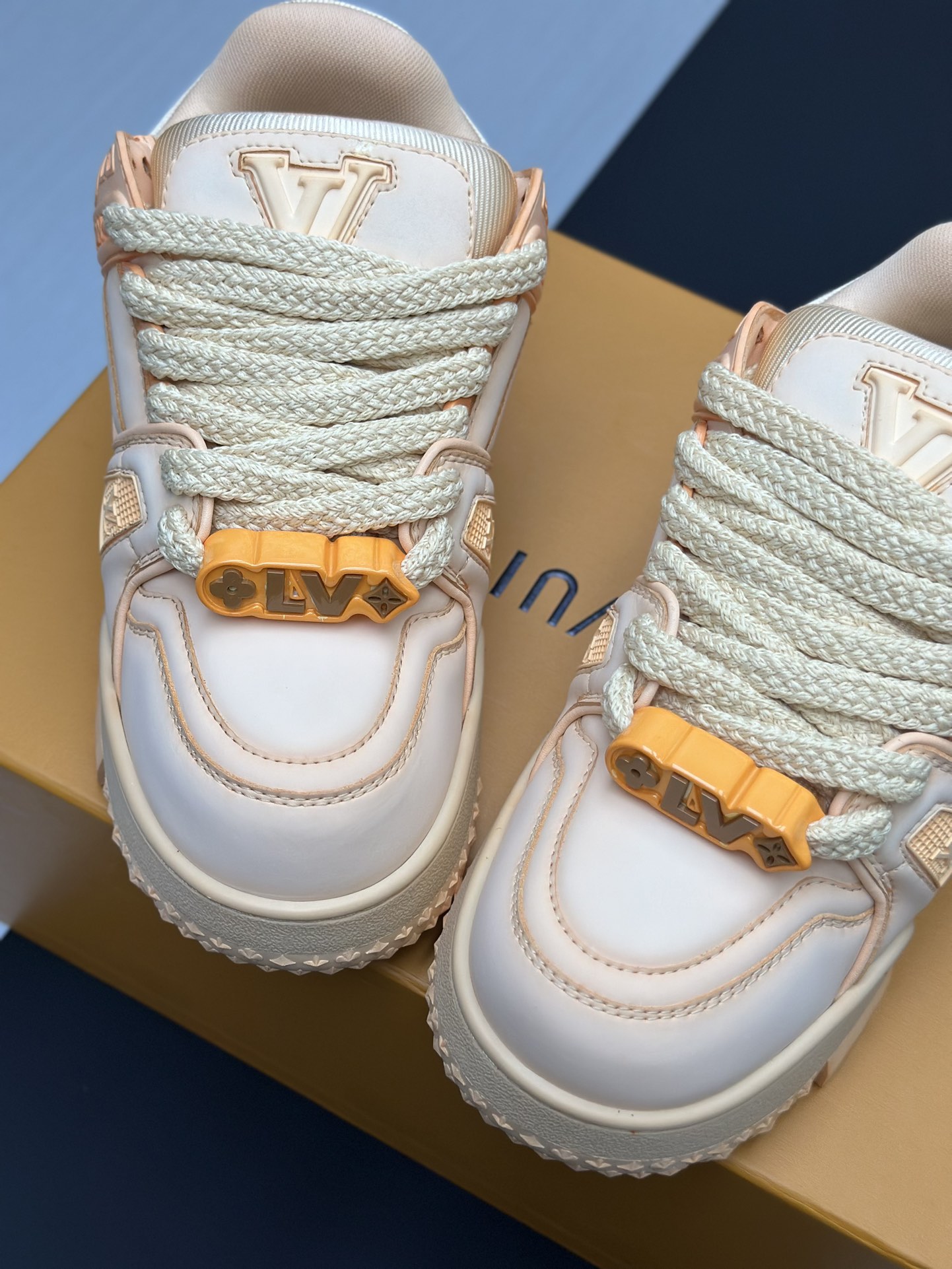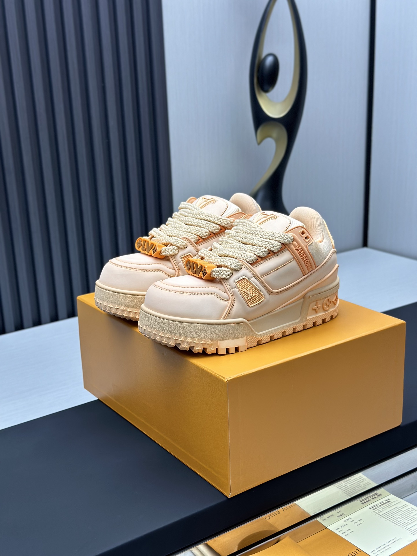 这款鞋子是AAAAA 1:1 质量 (非常棒). 使用了和原版一模一样的材料. 商标部分也保持了和路易威登/Louis Vuitton一样. 图片拍摄是实物鞋子拍摄, 您所收到的实物保证和我们图片一模一样.