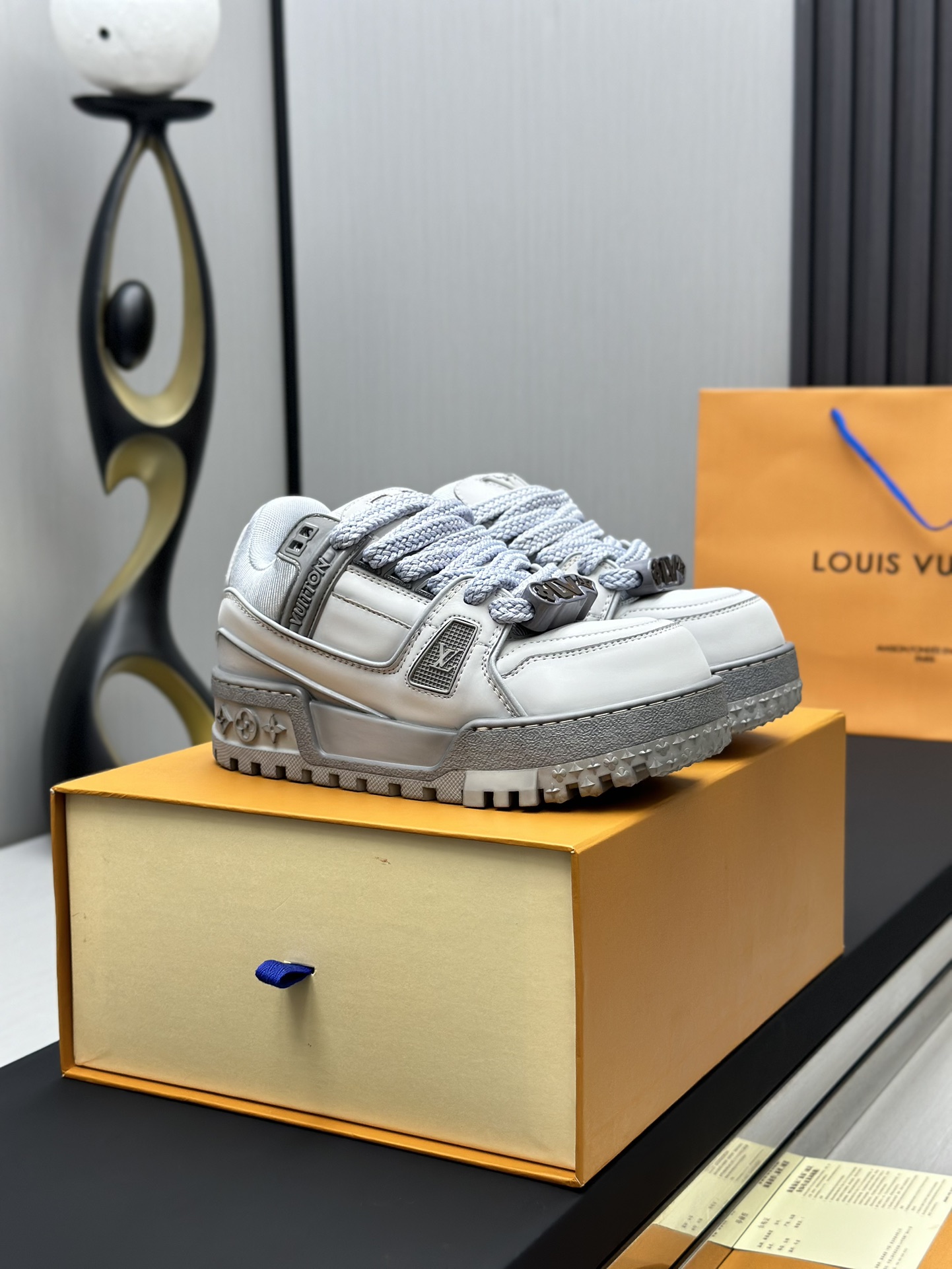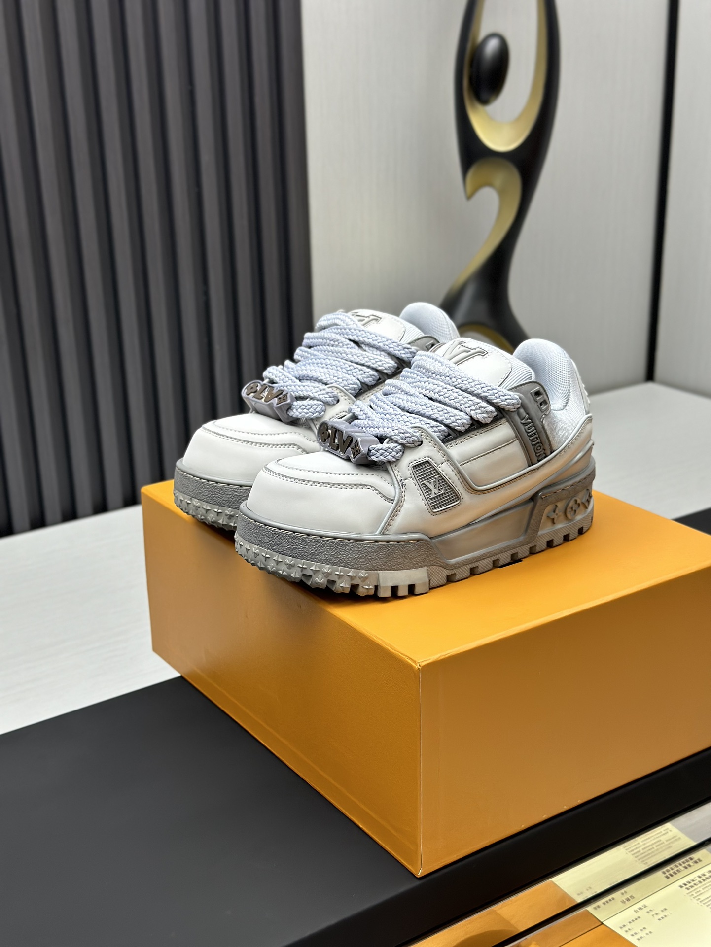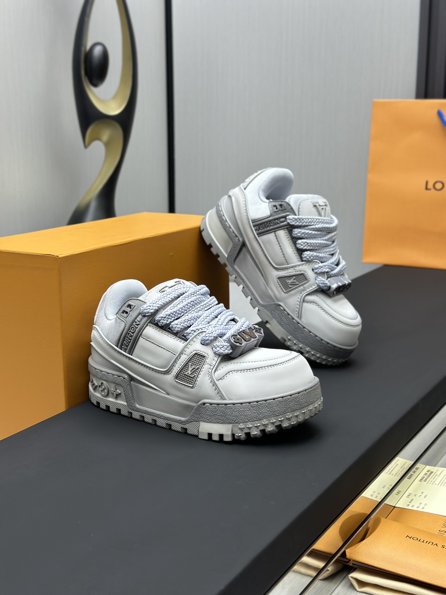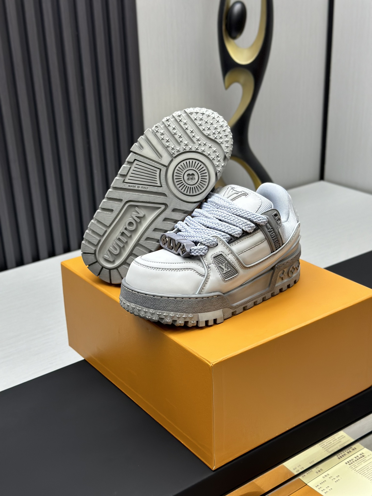 这款鞋子是AAAAA 1:1 质量 (非常棒). 使用了和原版一模一样的材料. 商标部分也保持了和路易威登/Louis Vuitton一样. 图片拍摄是实物鞋子拍摄, 您所收到的实物保证和我们图片一模一样.
