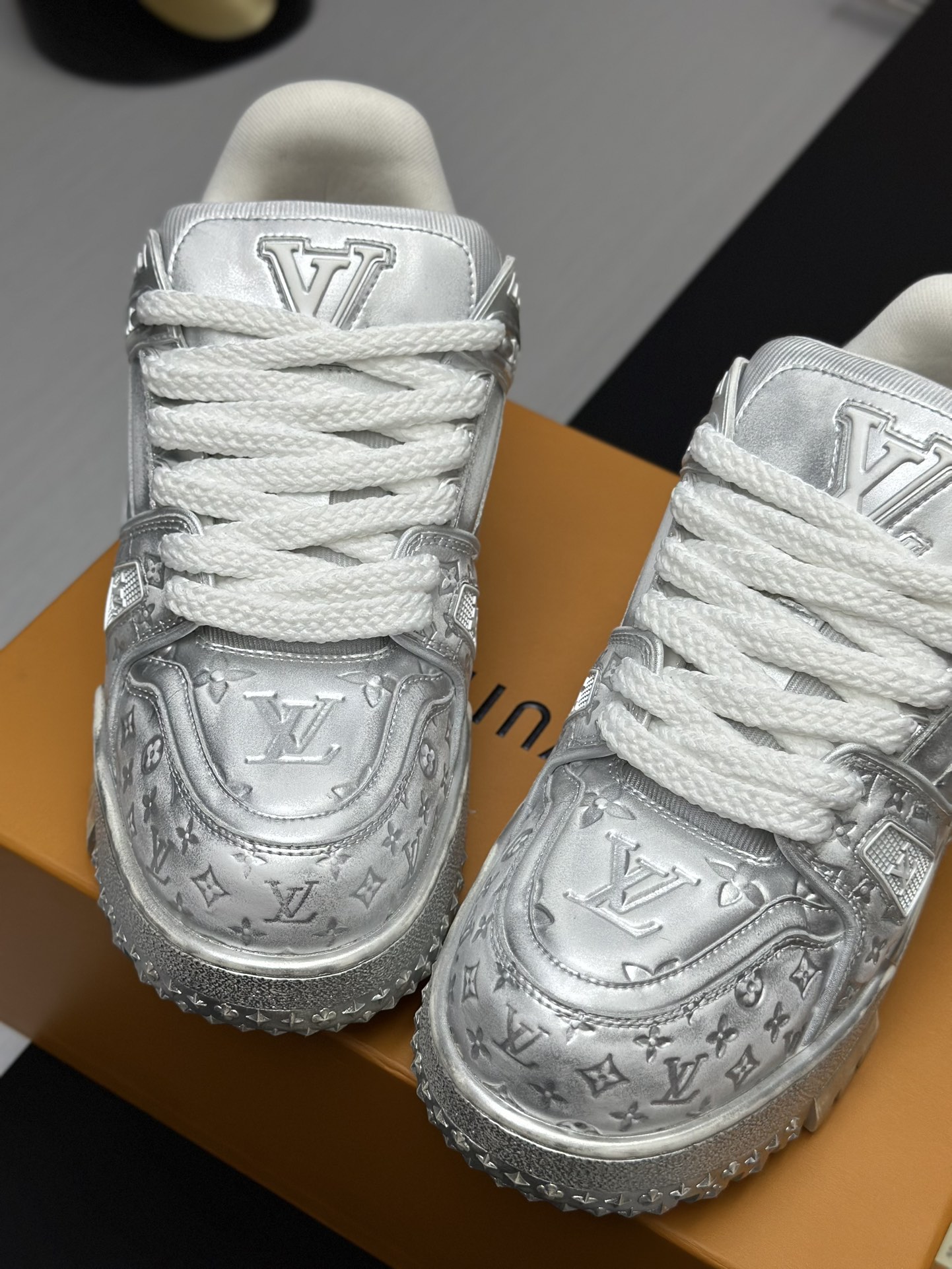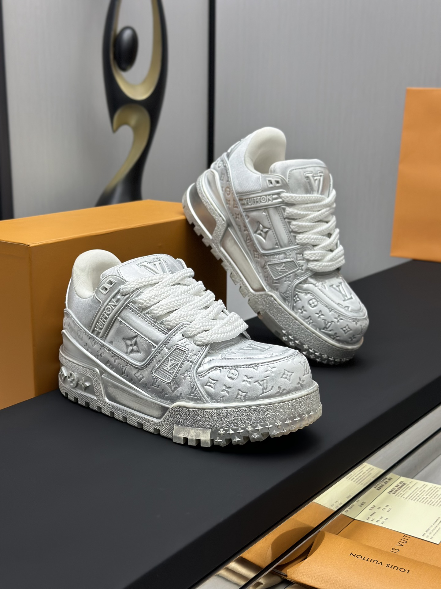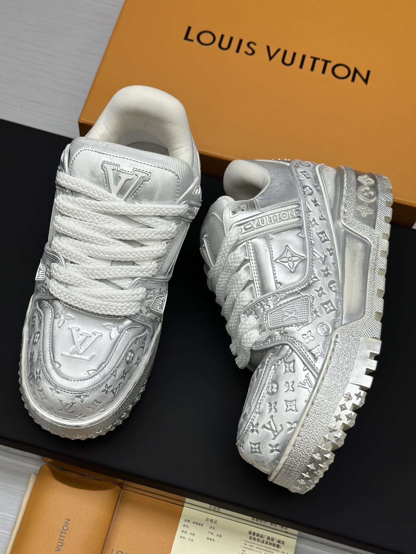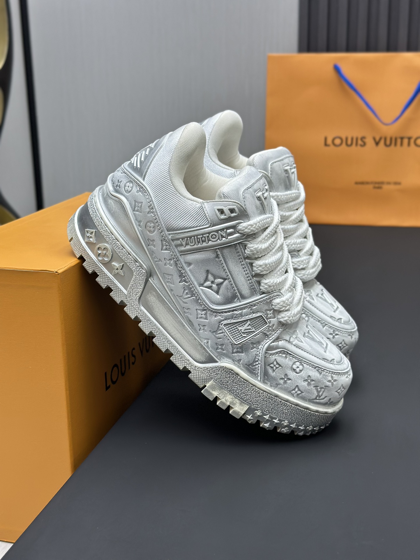 这款鞋子是AAAAA 1:1 质量 (非常棒). 使用了和原版一模一样的材料. 商标部分也保持了和路易威登/Louis Vuitton一样. 图片拍摄是实物鞋子拍摄, 您所收到的实物保证和我们图片一模一样.