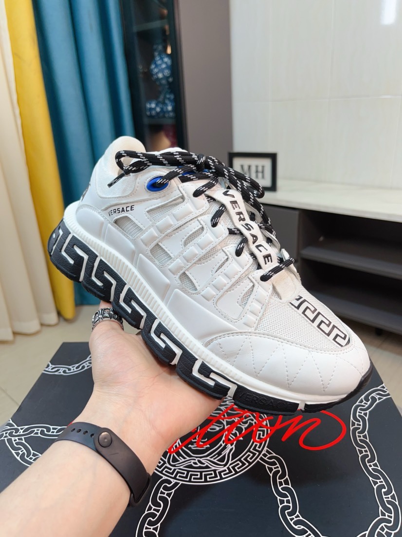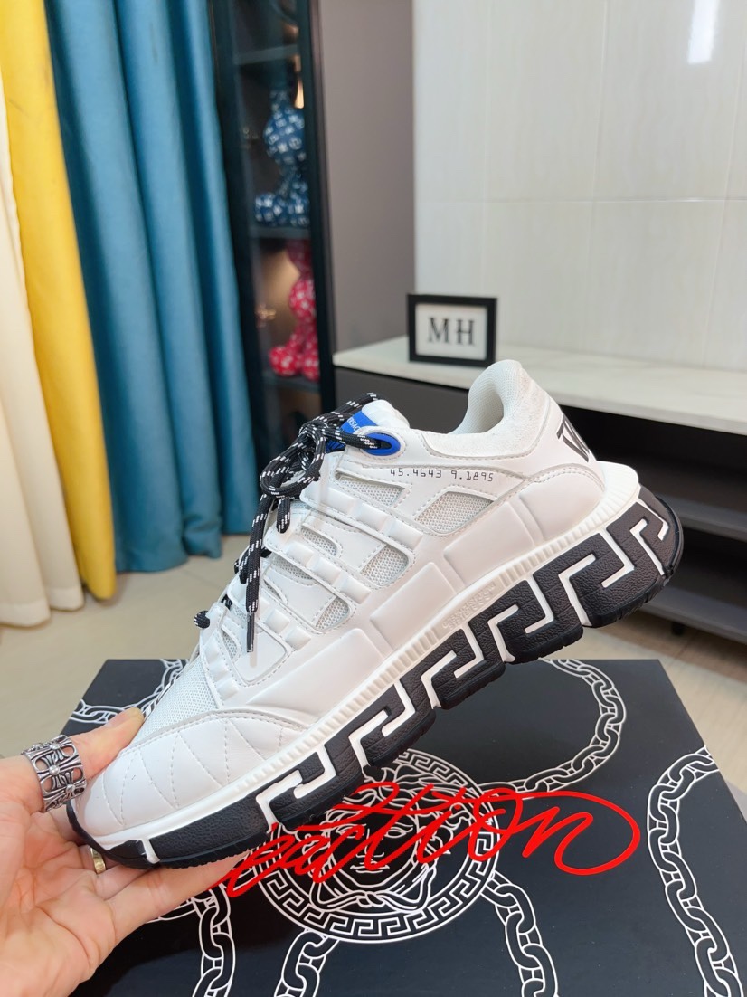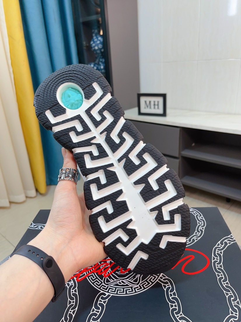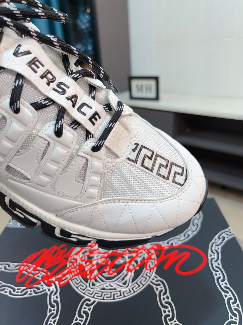 这款鞋子是AAAAA 1:1 质量 (非常棒). 使用了和原版一模一样的材料. 商标部分也保持了和范思哲/Versace一样. 图片拍摄是实物鞋子拍摄, 您所收到的实物保证和我们图片一模一样.