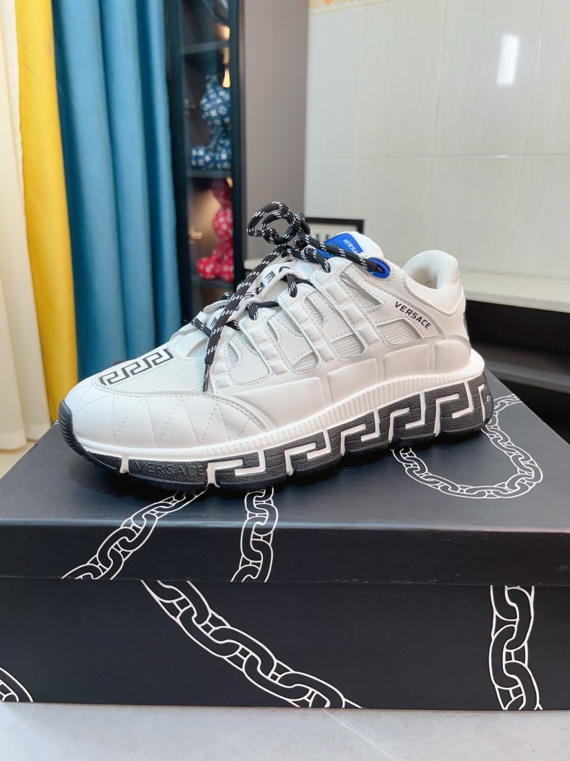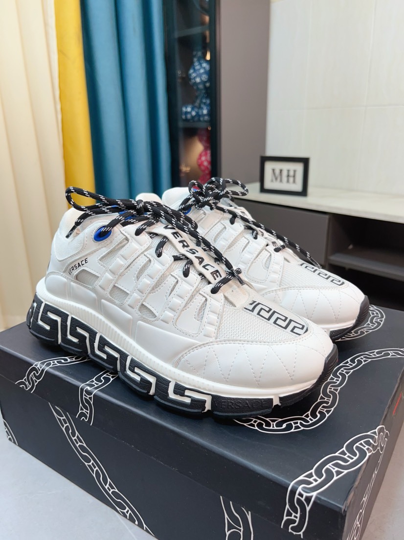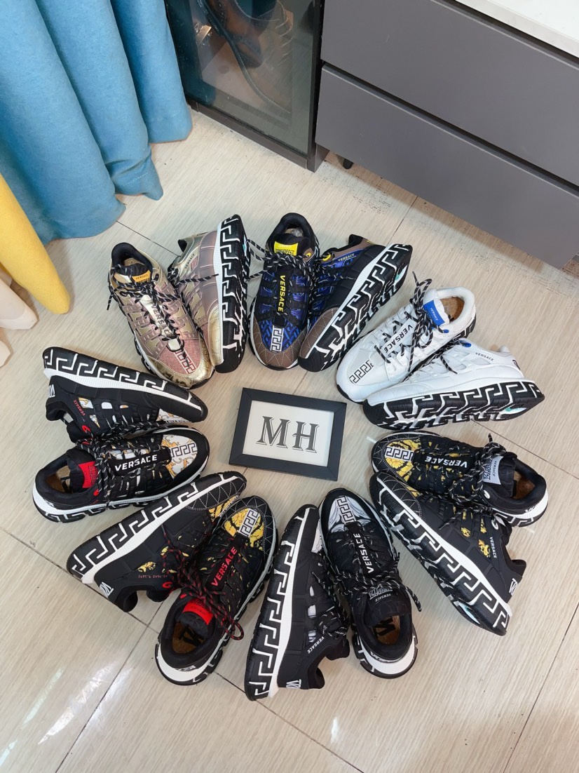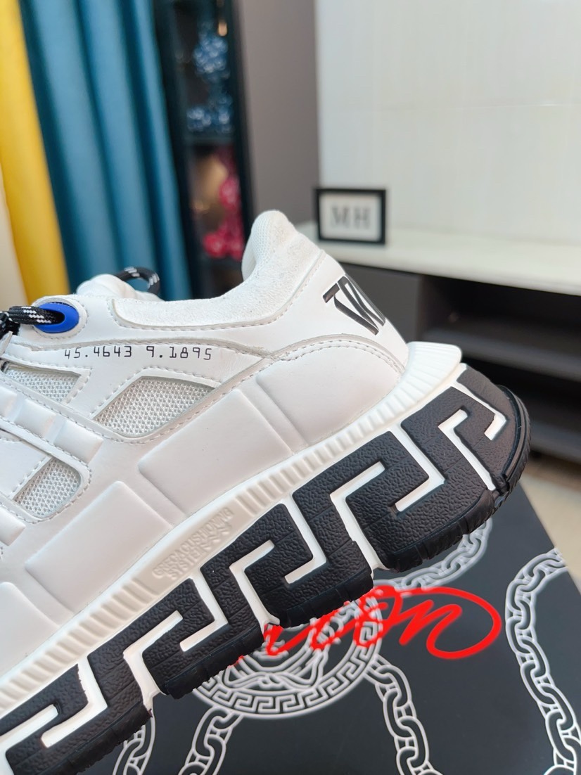这款鞋子是AAAAA 1:1 质量 (非常棒). 使用了和原版一模一样的材料. 商标部分也保持了和范思哲/Versace一样. 图片拍摄是实物鞋子拍摄, 您所收到的实物保证和我们图片一模一样.