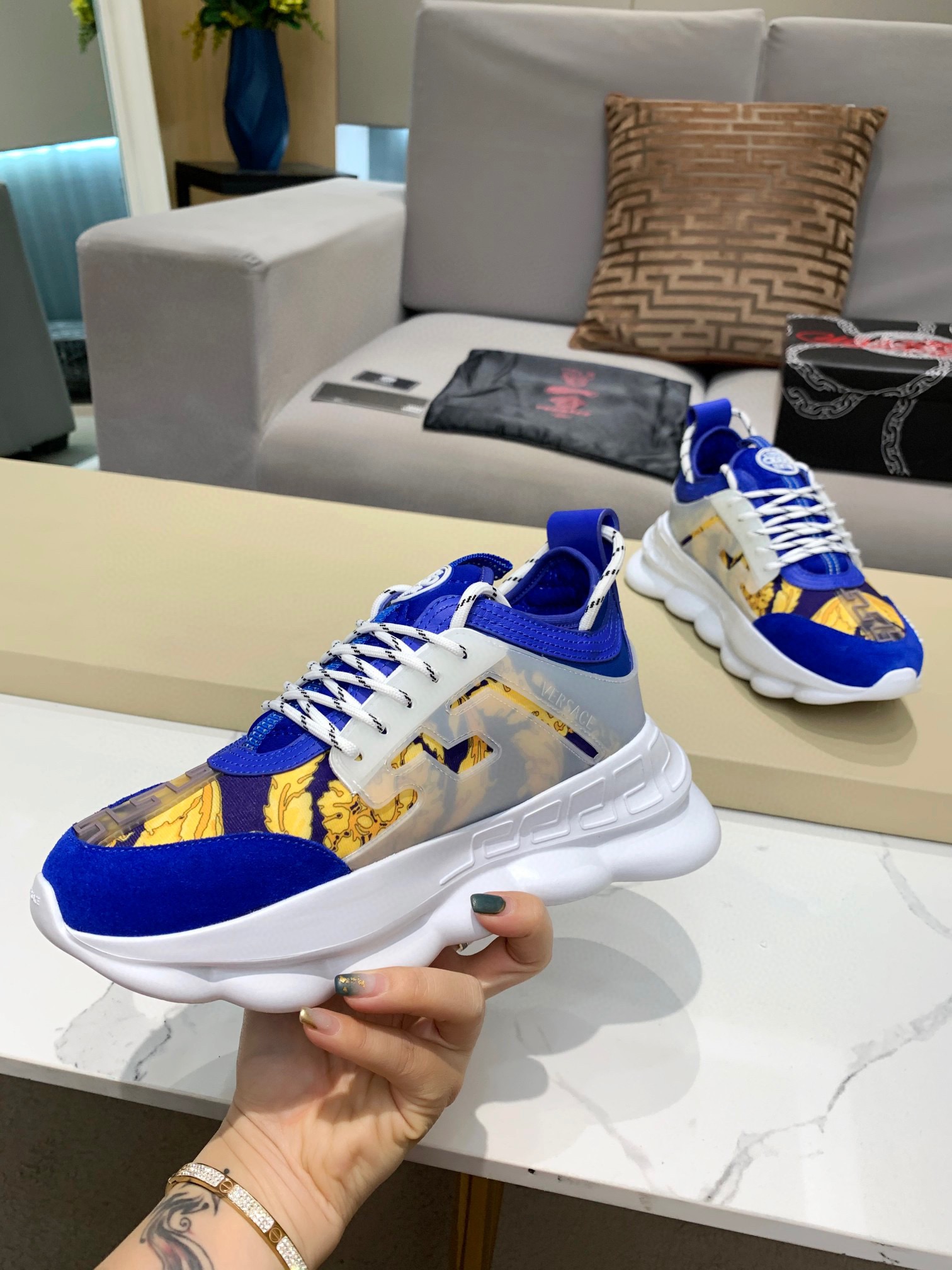 这款鞋子是AAAAA 1:1 质量 (非常棒). 使用了和原版一模一样的材料. 商标部分也保持了和范思哲/Versace一样. 图片拍摄是实物鞋子拍摄, 您所收到的实物保证和我们图片一模一样.