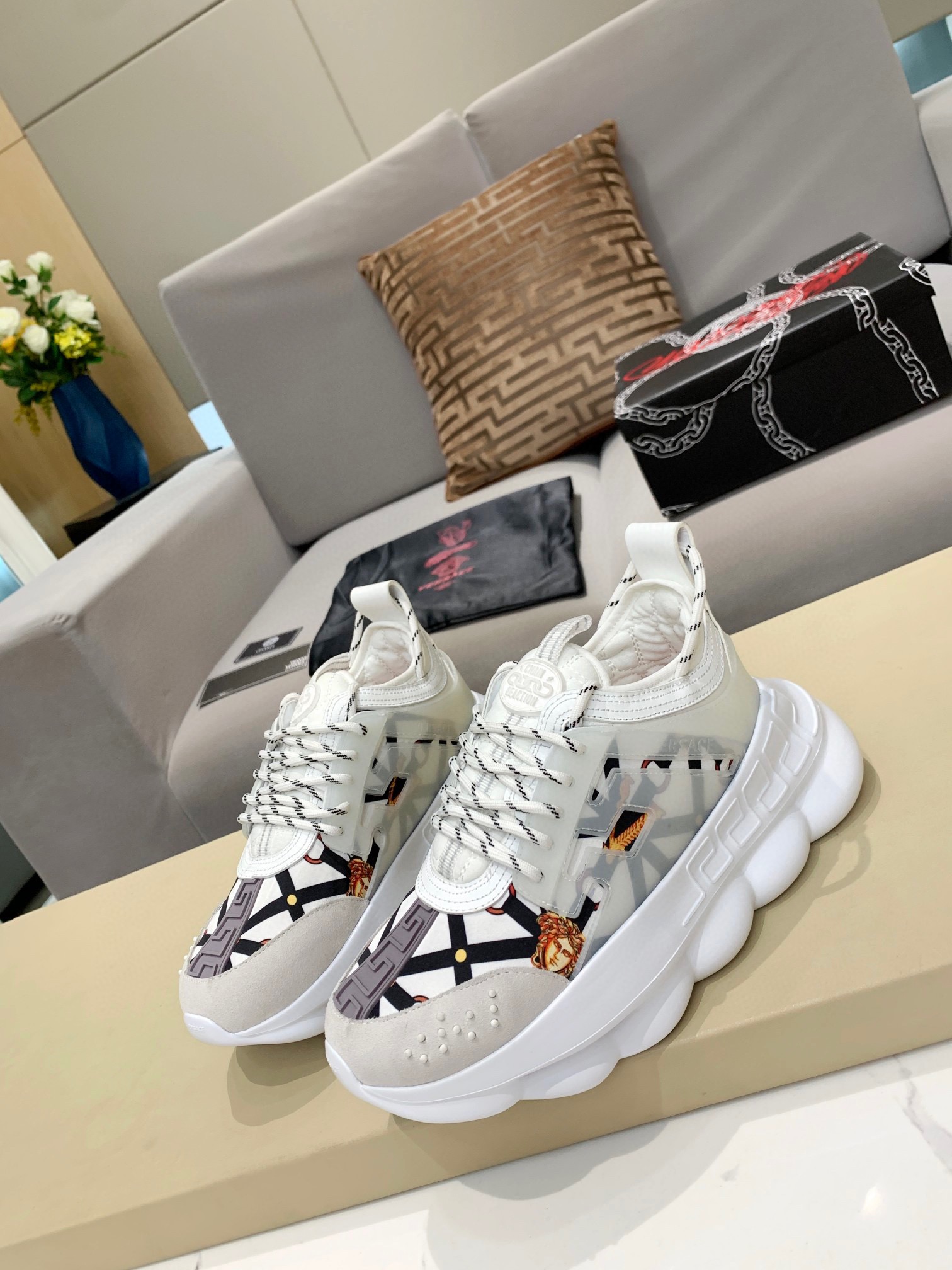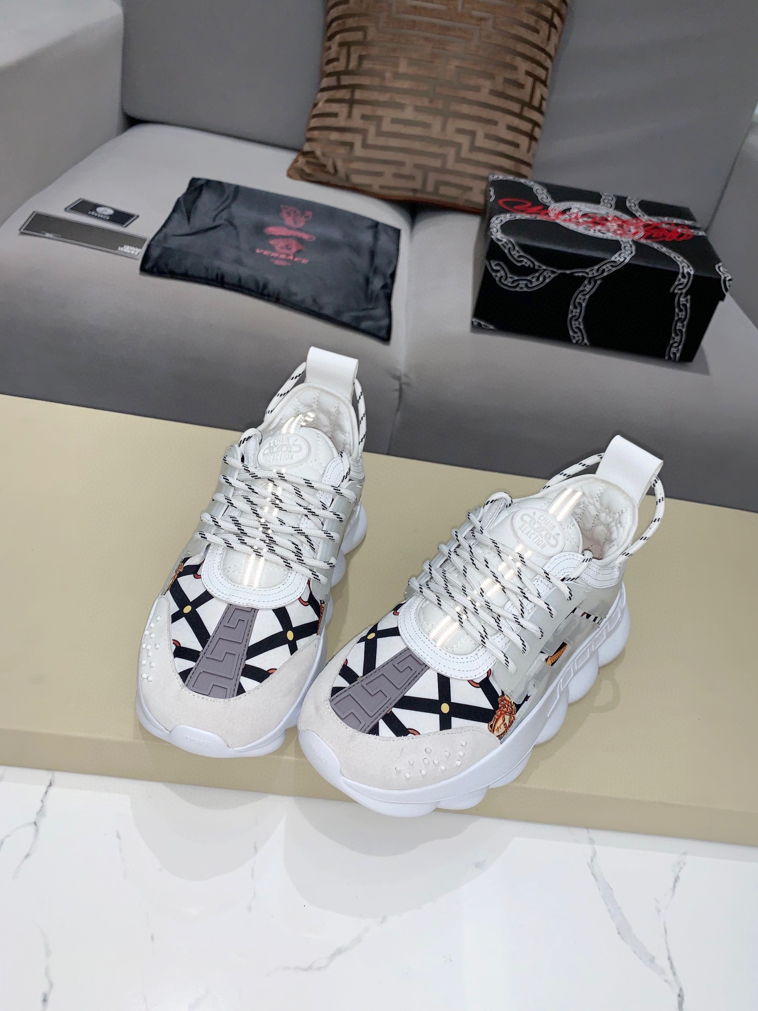 这款鞋子是AAAAA 1:1 质量 (非常棒). 使用了和原版一模一样的材料. 商标部分也保持了和范思哲/Versace一样. 图片拍摄是实物鞋子拍摄, 您所收到的实物保证和我们图片一模一样.