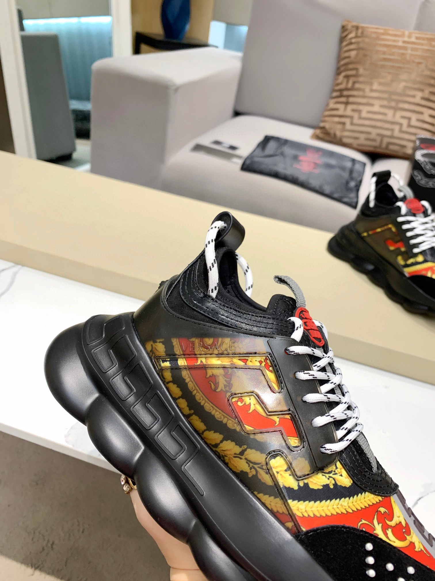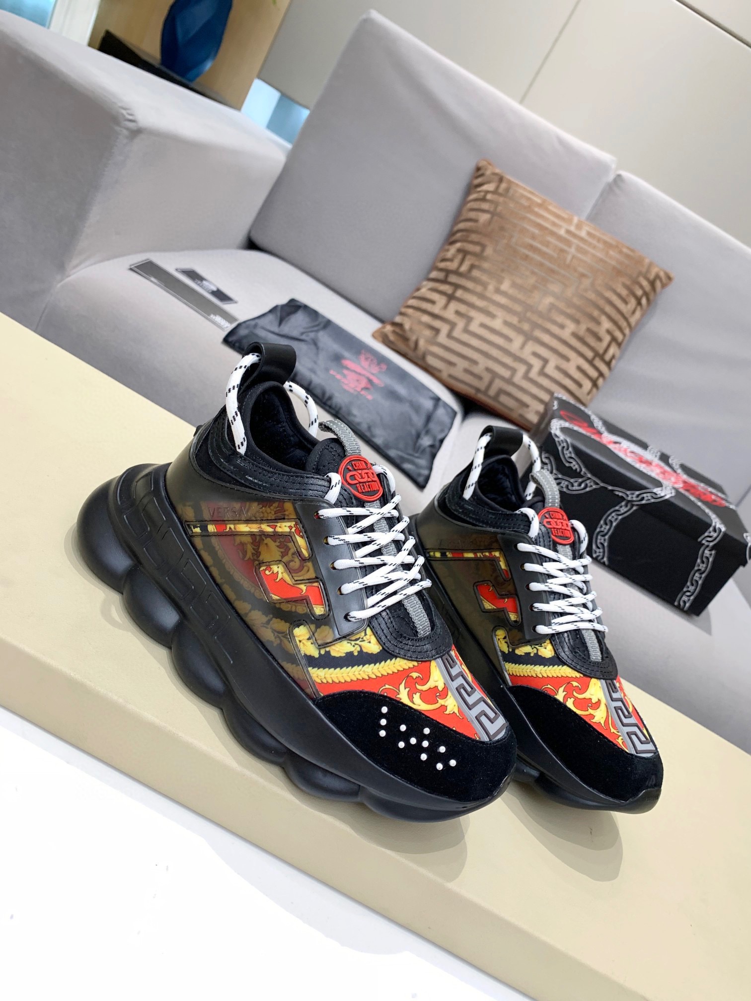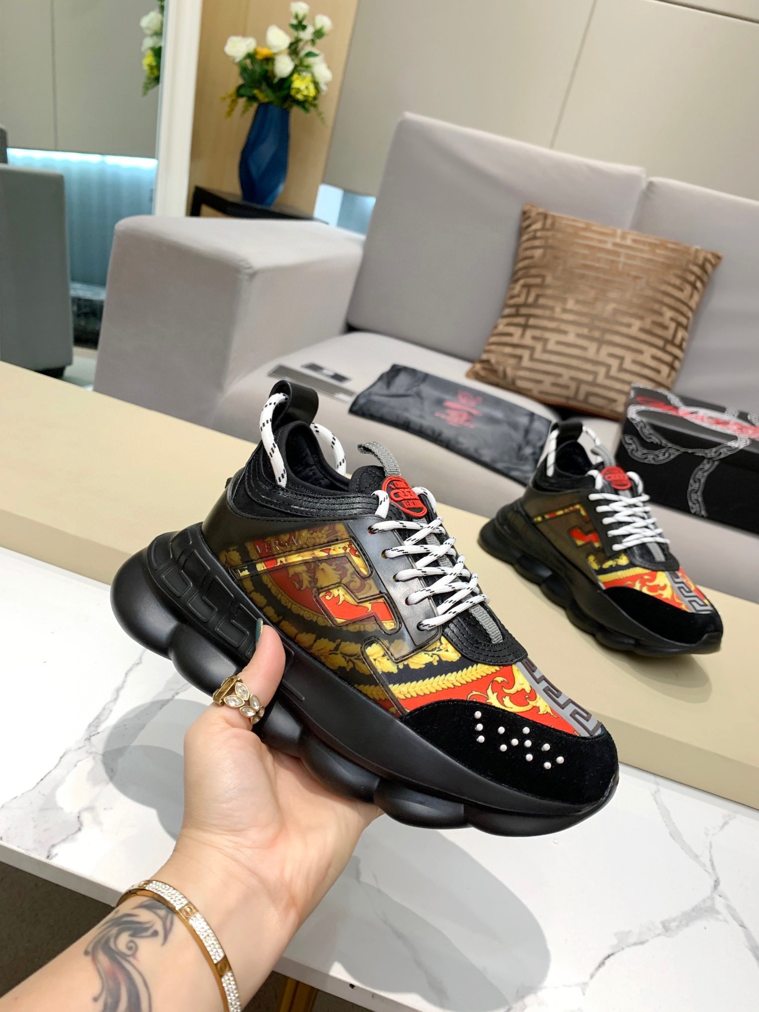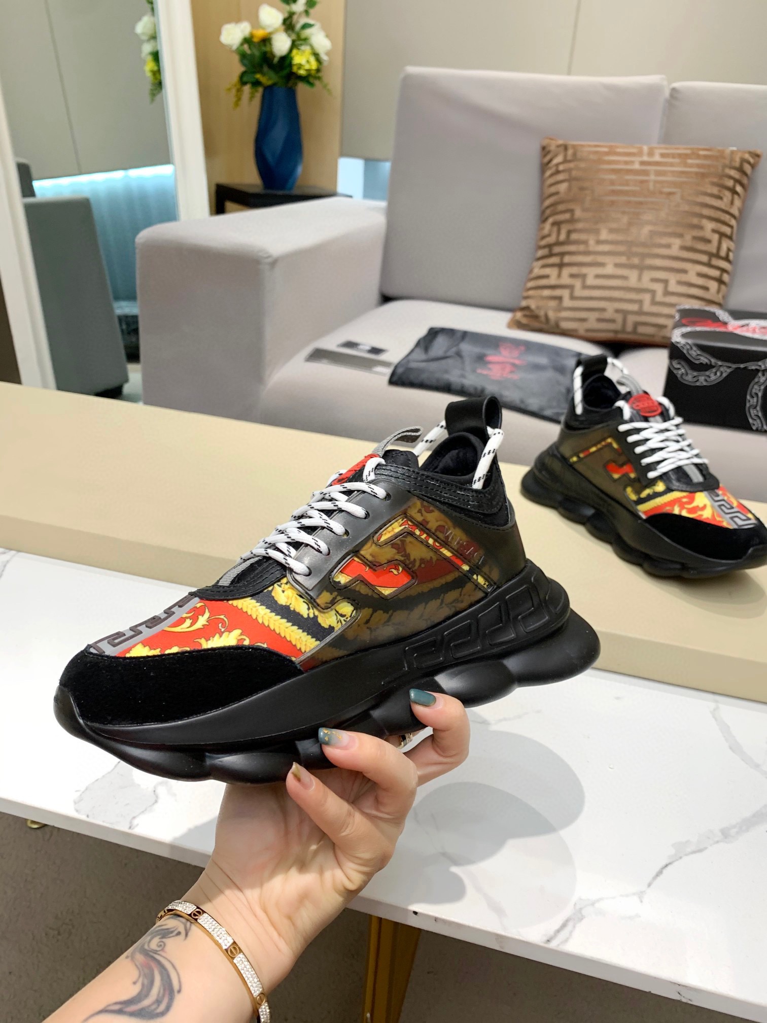 这款鞋子是AAAAA 1:1 质量 (非常棒). 使用了和原版一模一样的材料. 商标部分也保持了和范思哲/Versace一样. 图片拍摄是实物鞋子拍摄, 您所收到的实物保证和我们图片一模一样.