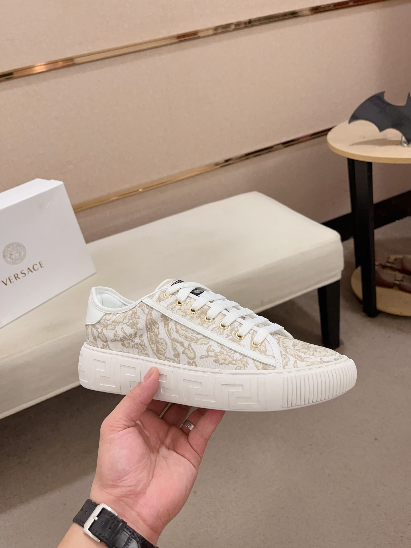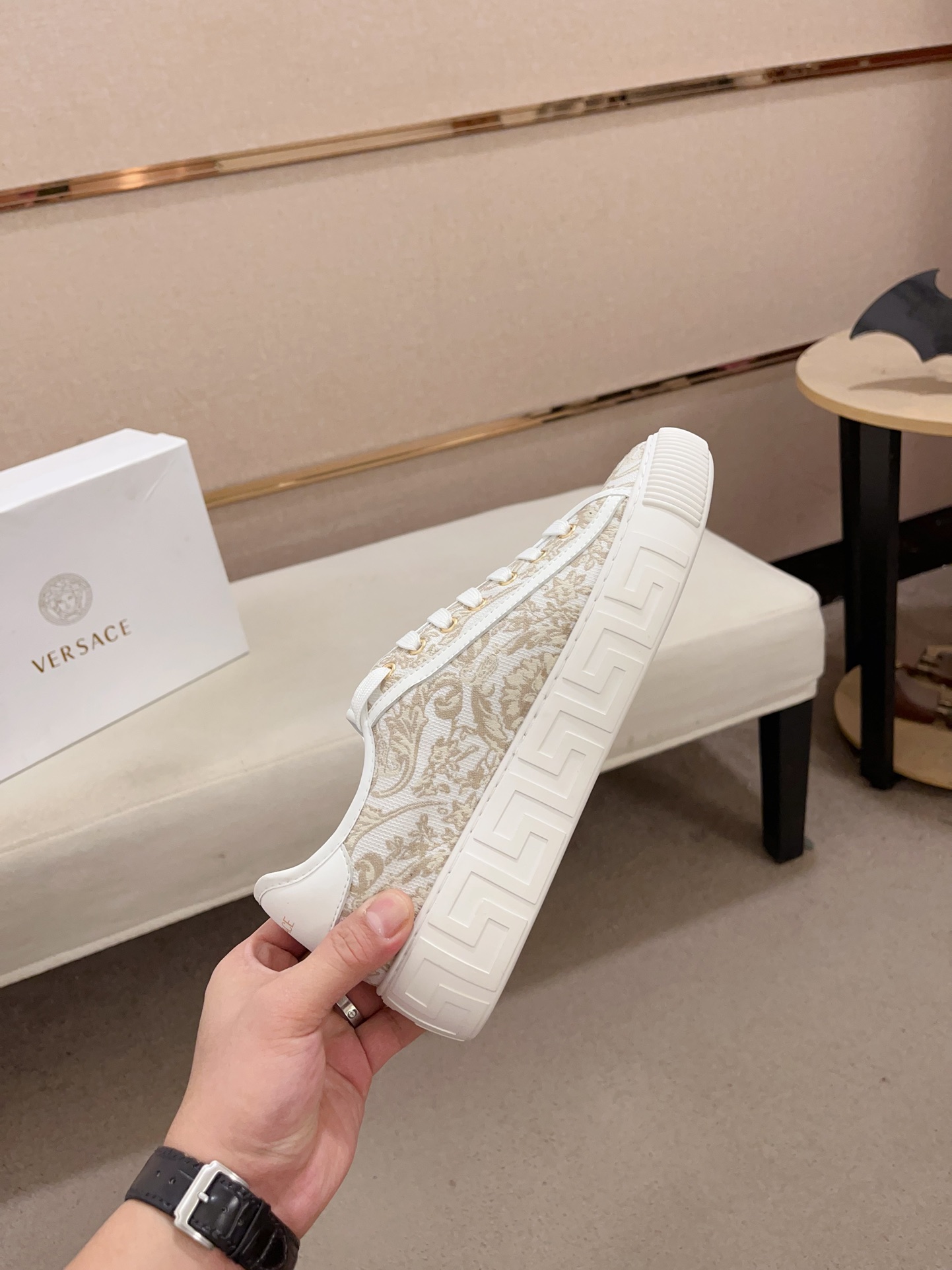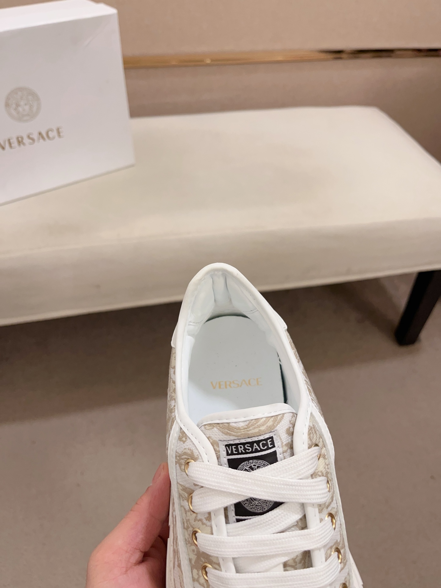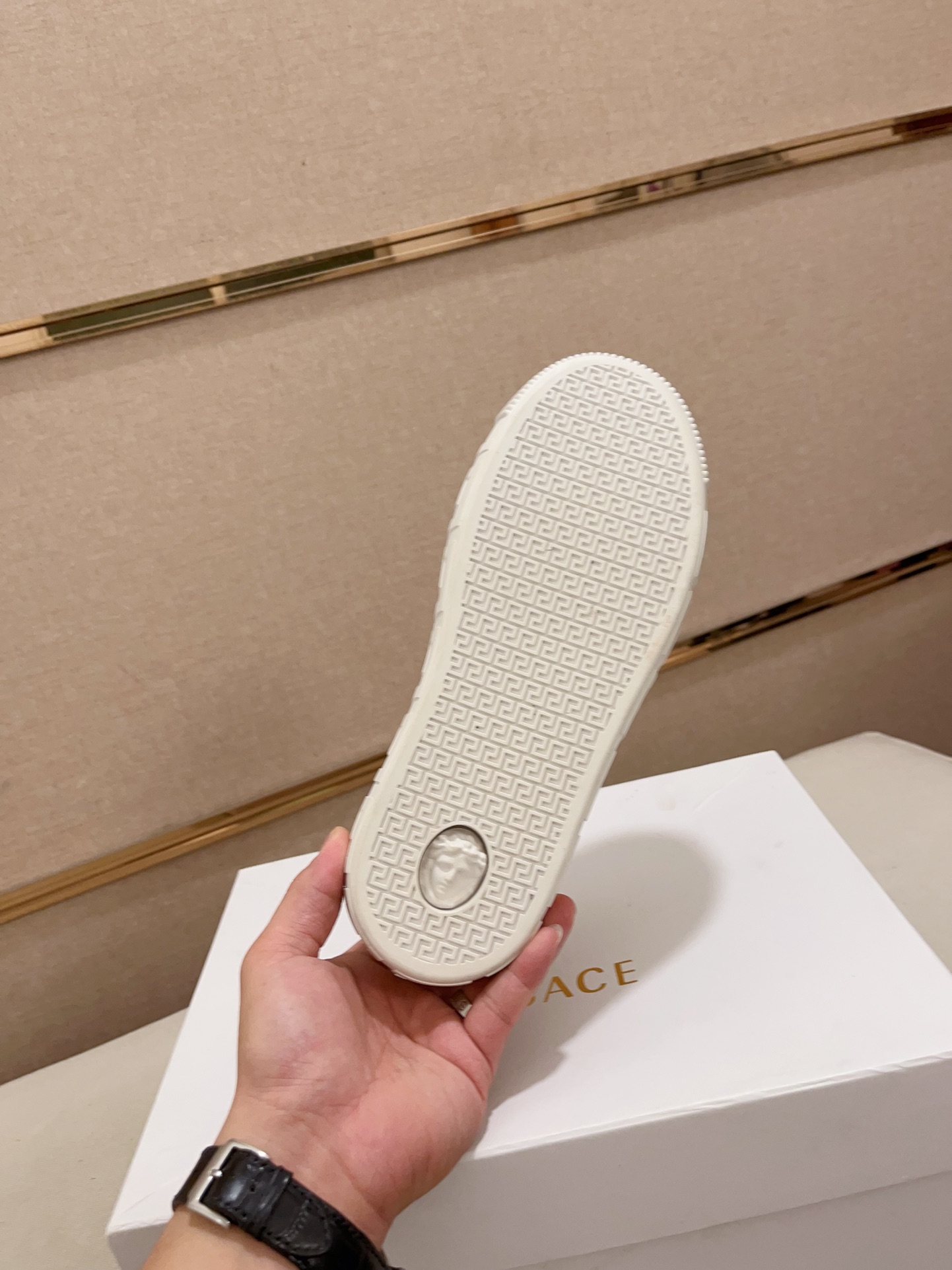 这款鞋子是AAAAA 1:1 质量 (非常棒). 使用了和原版一模一样的材料. 商标部分也保持了和范思哲/Versace一样. 图片拍摄是实物鞋子拍摄, 您所收到的实物保证和我们图片一模一样.