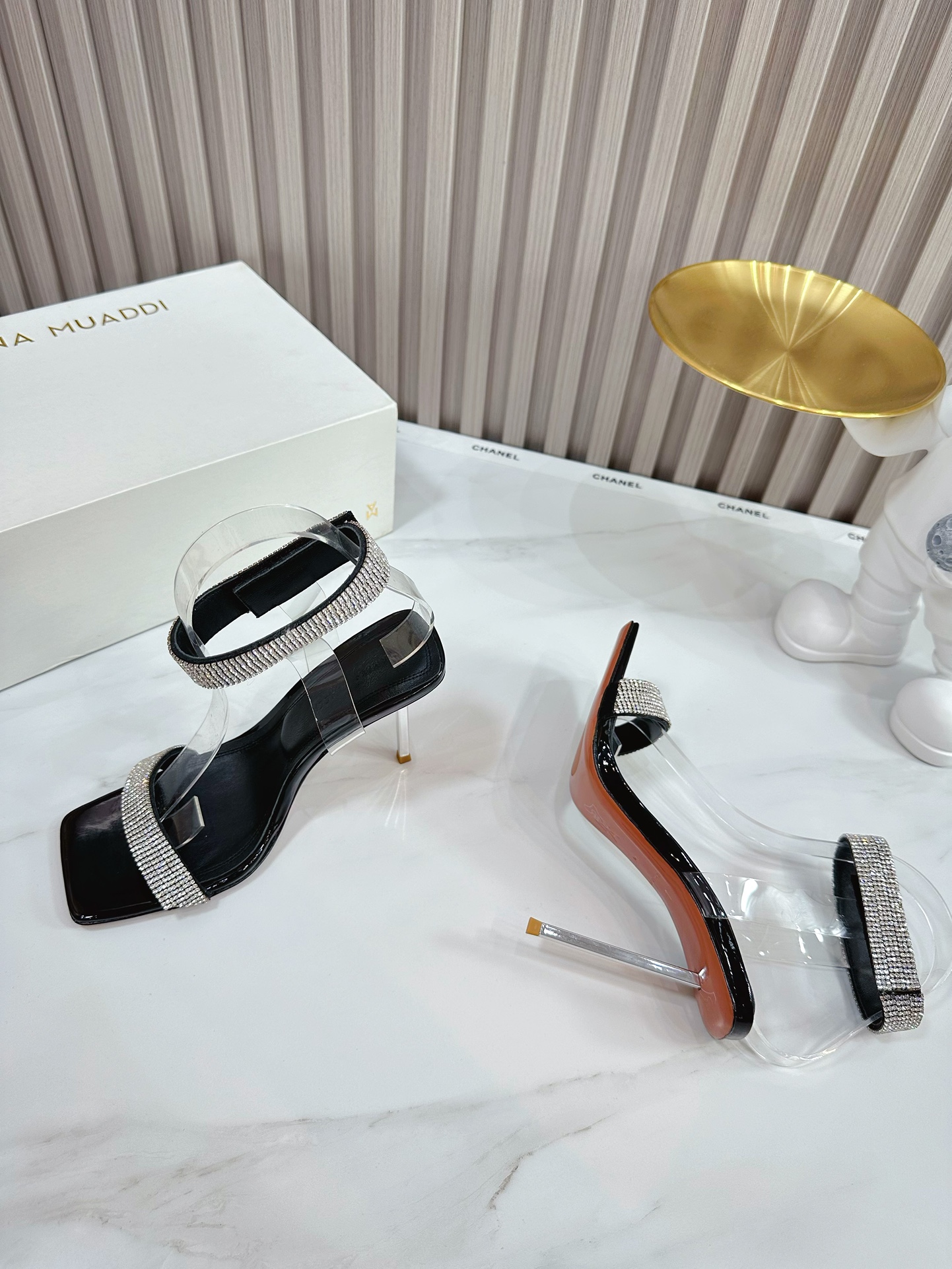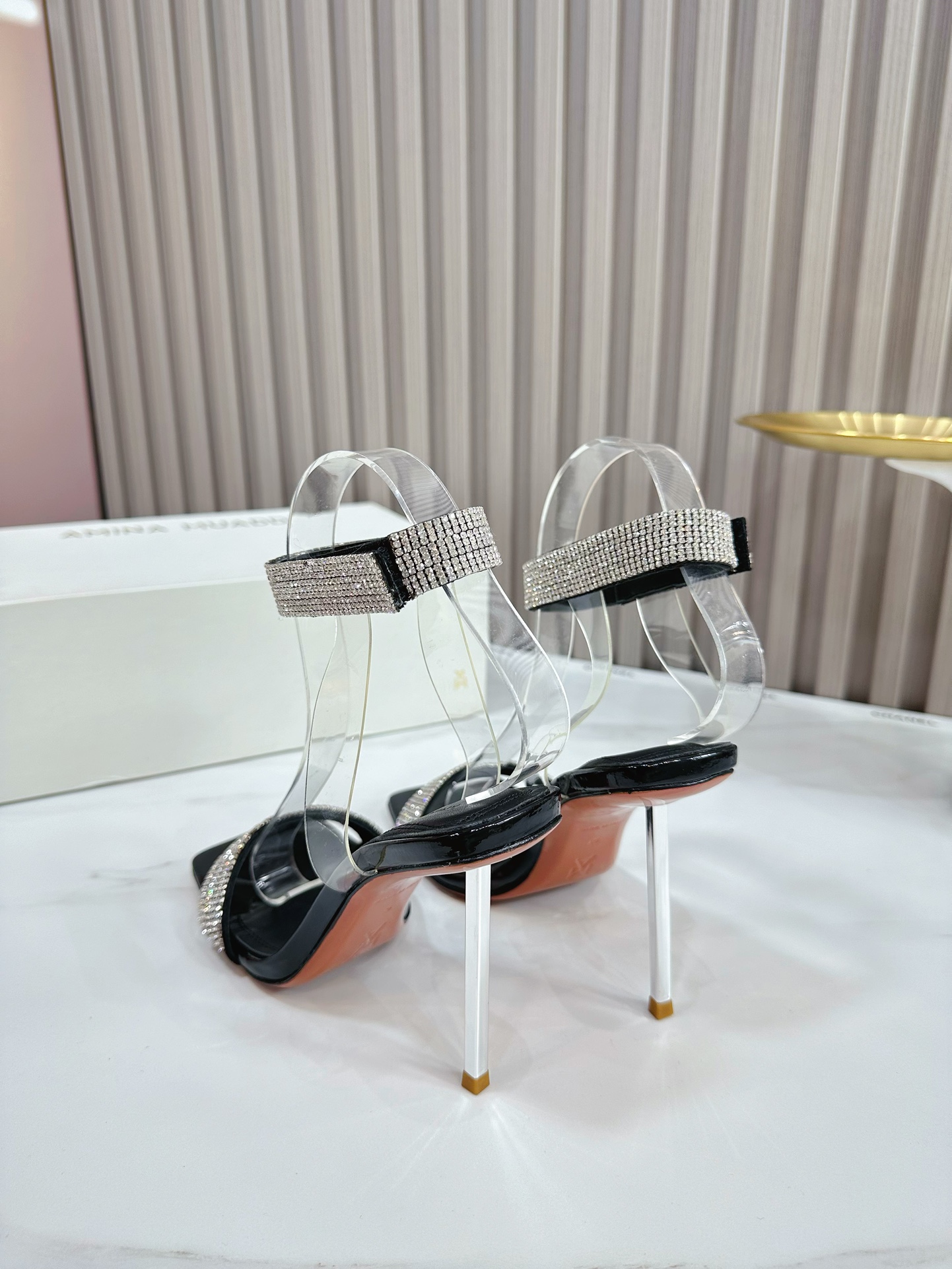 这款鞋子是AAAAA 1:1 质量 (非常棒). 使用了和原版一模一样的材料. 商标部分也保持了和Amina Muaddi一样. 图片拍摄是实物鞋子拍摄, 您所收到的实物保证和我们图片一模一样.