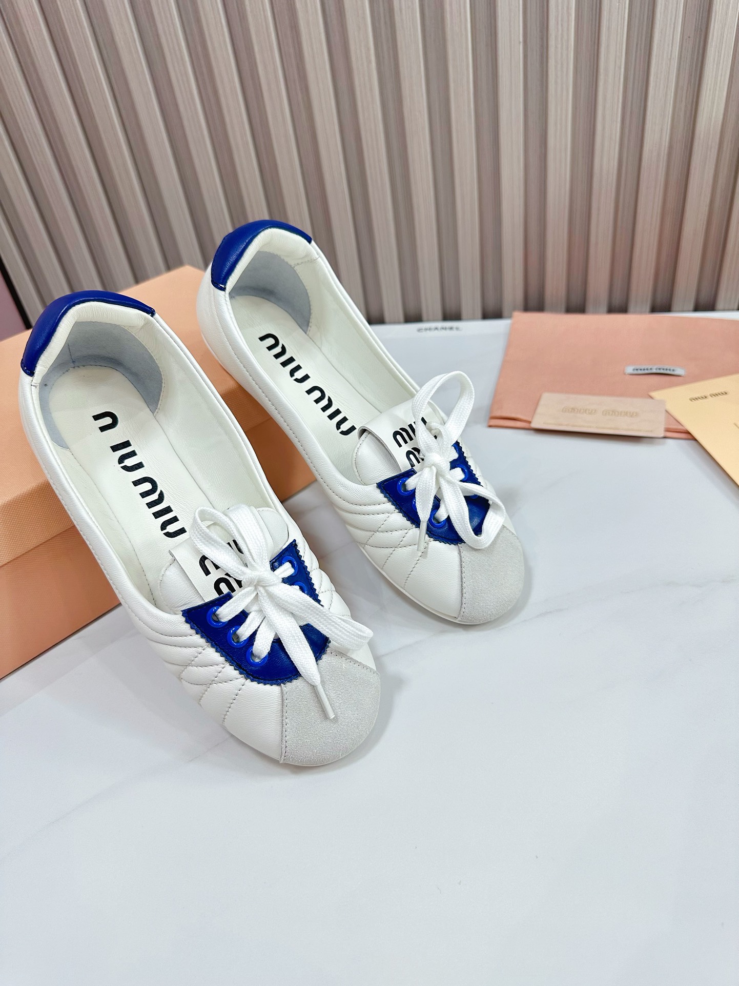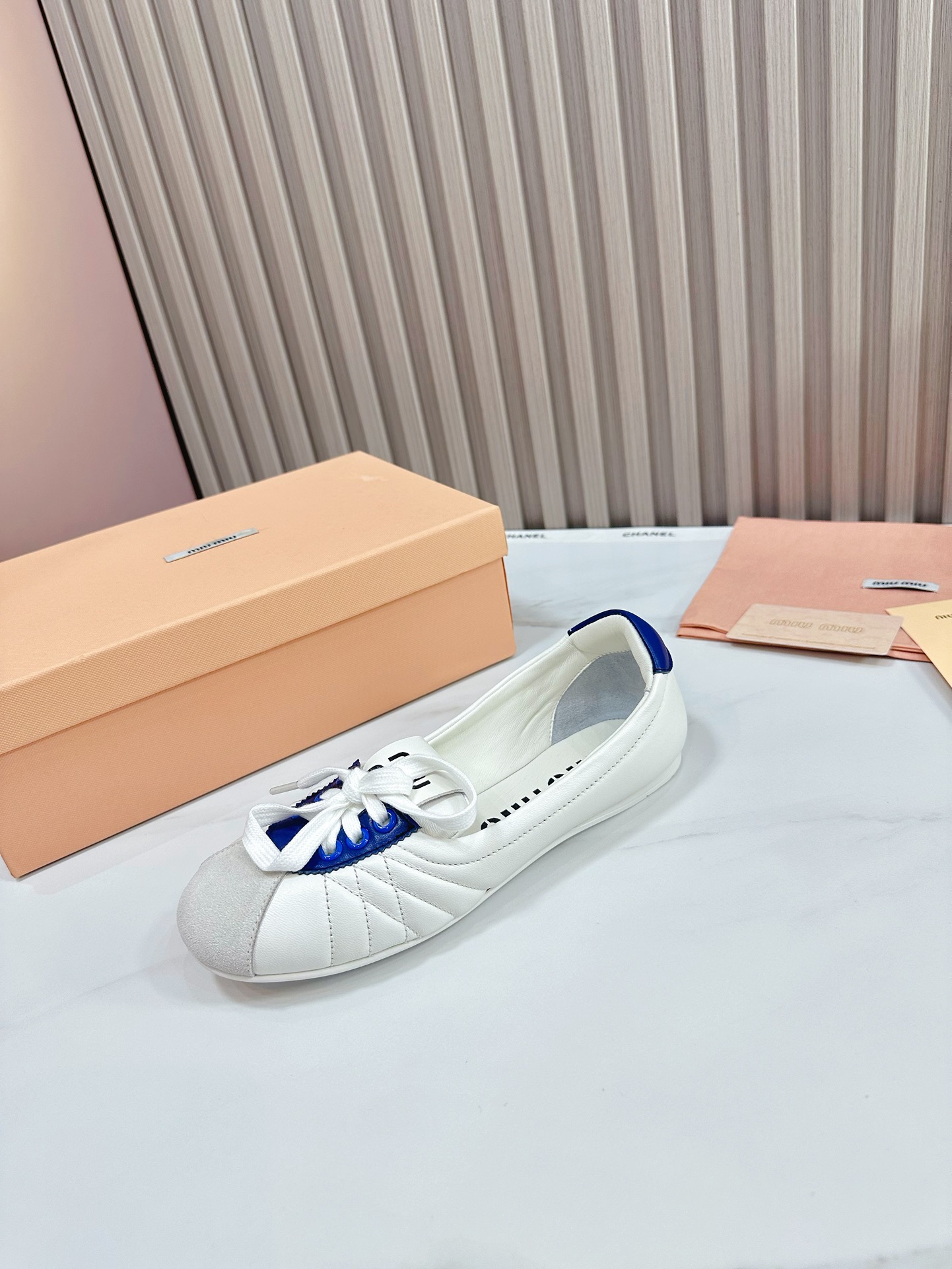 这款鞋子是AAAAA 1:1 质量 (非常棒). 使用了和原版一模一样的材料. 商标部分也保持了和缪缪/Miu Miu一样. 图片拍摄是实物鞋子拍摄, 您所收到的实物保证和我们图片一模一样.