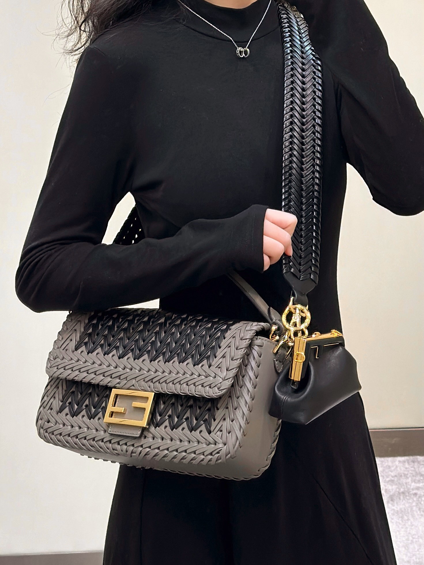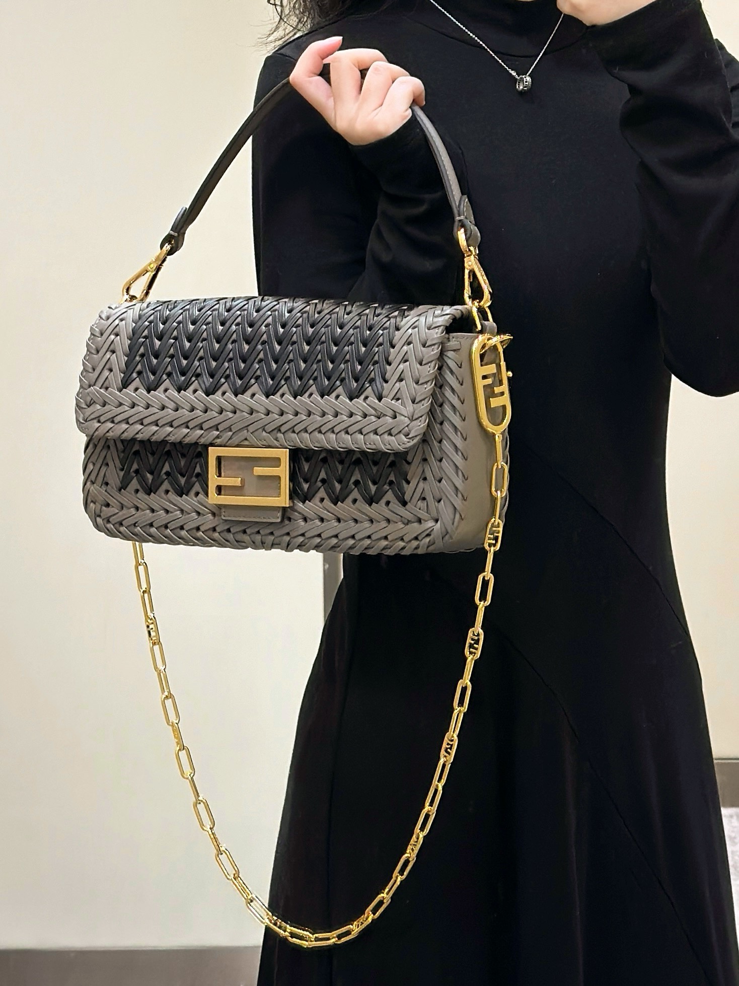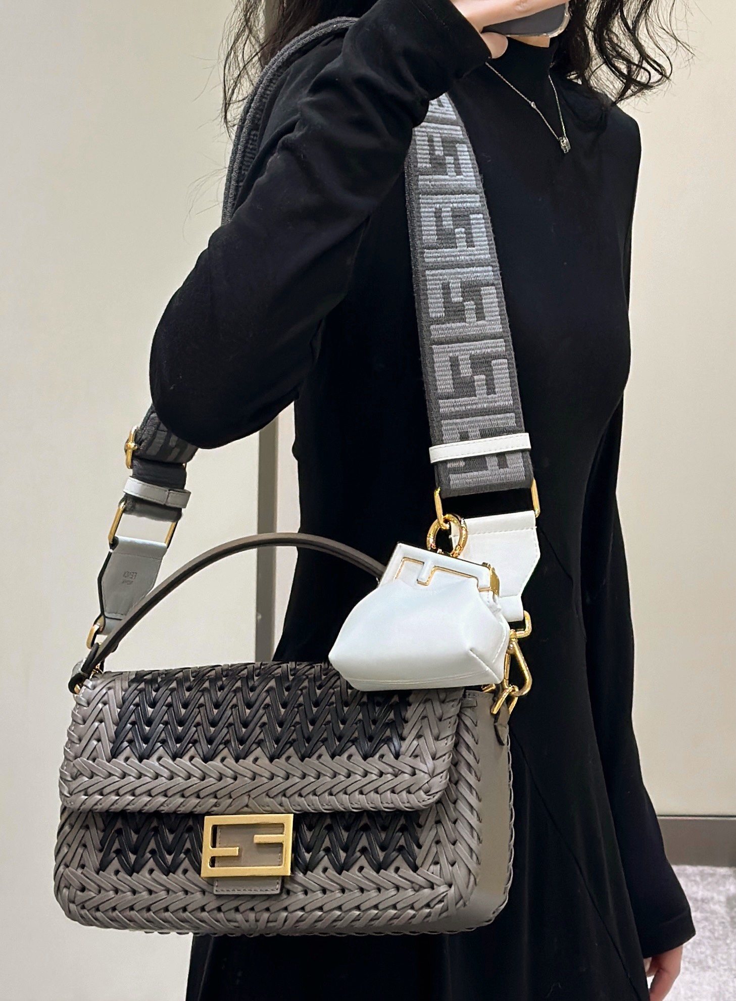 这款包包是AAAAA 1:1 质量 (非常棒). 使用了和原版一模一样的材料. 商标部分也保持了和芬迪/Fendi一样. 图片拍摄是实物包包拍摄, 您所收到的实物保证和我们图片一模一样.