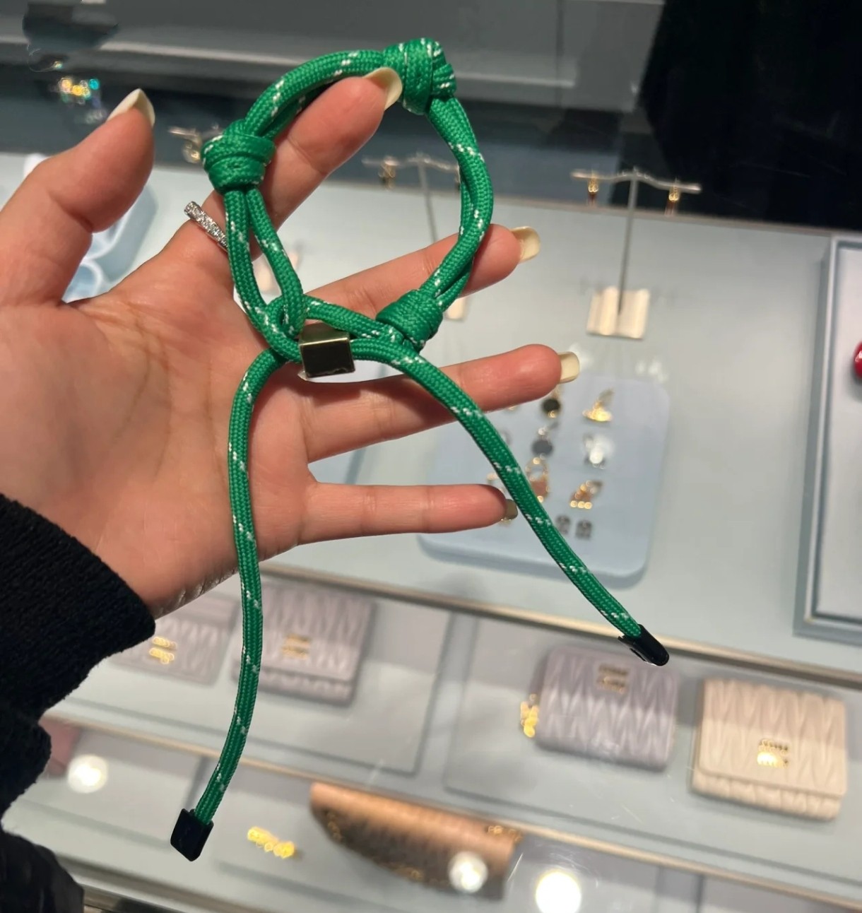 这款首饰是AAAAA 1:1 质量 (非常棒). 使用了和原版一模一样的材料. 商标部分也保持了和缪缪/Miu Miu一样. 图片拍摄是实物首饰拍摄, 您所收到的实物保证和我们图片一模一样.