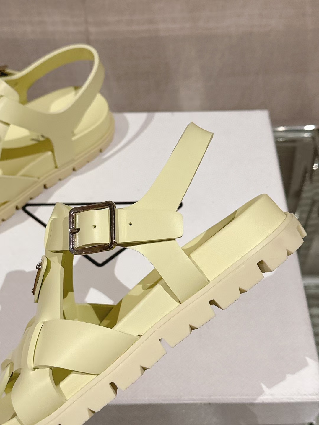 这款鞋子是AAAAA 1:1 质量 (非常棒). 使用了和原版一模一样的材料. 商标部分也保持了和普拉达/Prada一样. 图片拍摄是实物鞋子拍摄, 您所收到的实物保证和我们图片一模一样.