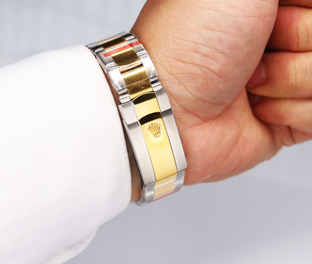 这款手表是AAAAA 1:1 质量 (非常棒). 使用了和原版一模一样的材料. 商标部分也保持了和劳力士/Rolex一样. 图片拍摄是实物手表拍摄, 您所收到的实物保证和我们图片一模一样.