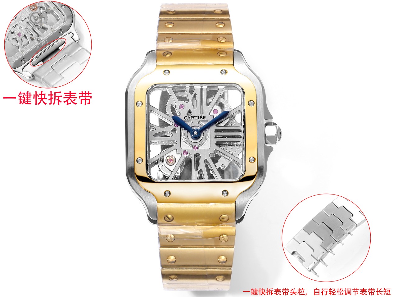 这款手表是AAAAA 1:1 质量 (非常棒). 使用了和原版一模一样的材料. 商标部分也保持了和卡地亚/Cartier一样. 图片拍摄是实物手表拍摄, 您所收到的实物保证和我们图片一模一样.