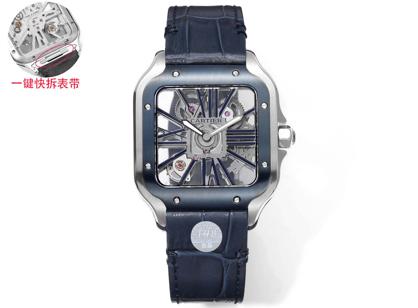 这款手表是AAAAA 1:1 质量 (非常棒). 使用了和原版一模一样的材料. 商标部分也保持了和卡地亚/Cartier一样. 图片拍摄是实物手表拍摄, 您所收到的实物保证和我们图片一模一样.