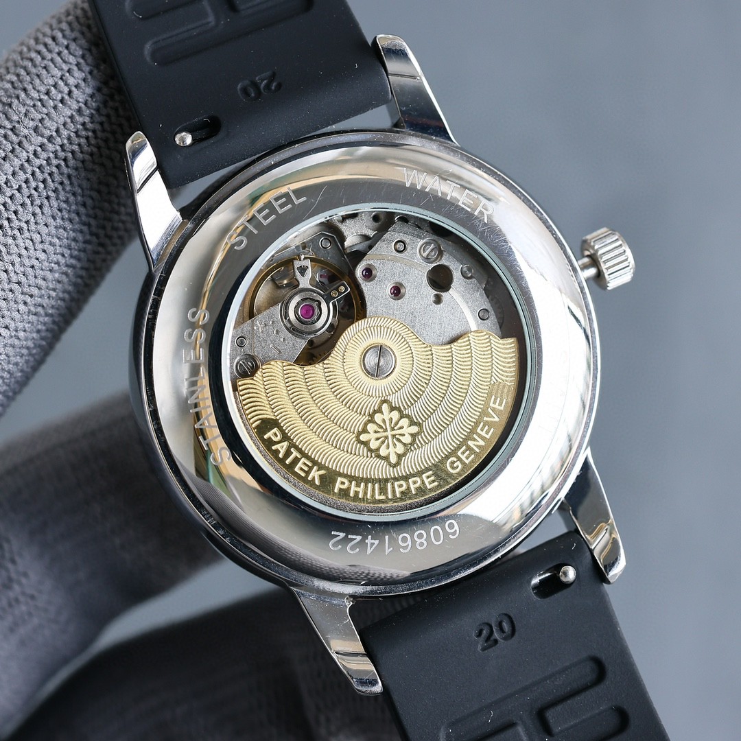 这款手表是AAAAA 1:1 质量 (非常棒). 使用了和原版一模一样的材料. 商标部分也保持了和百达翡丽/Patek Philippe一样. 图片拍摄是实物手表拍摄, 您所收到的实物保证和我们图片一模一样.