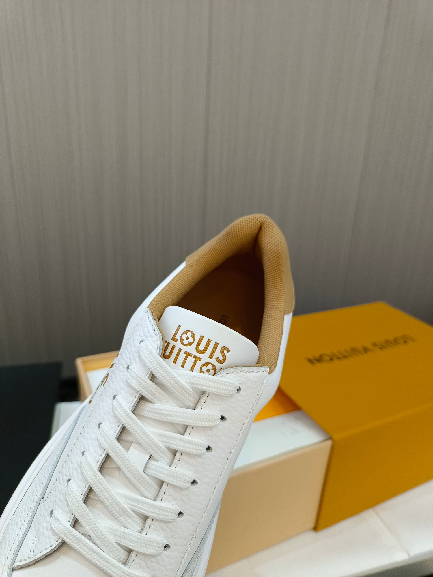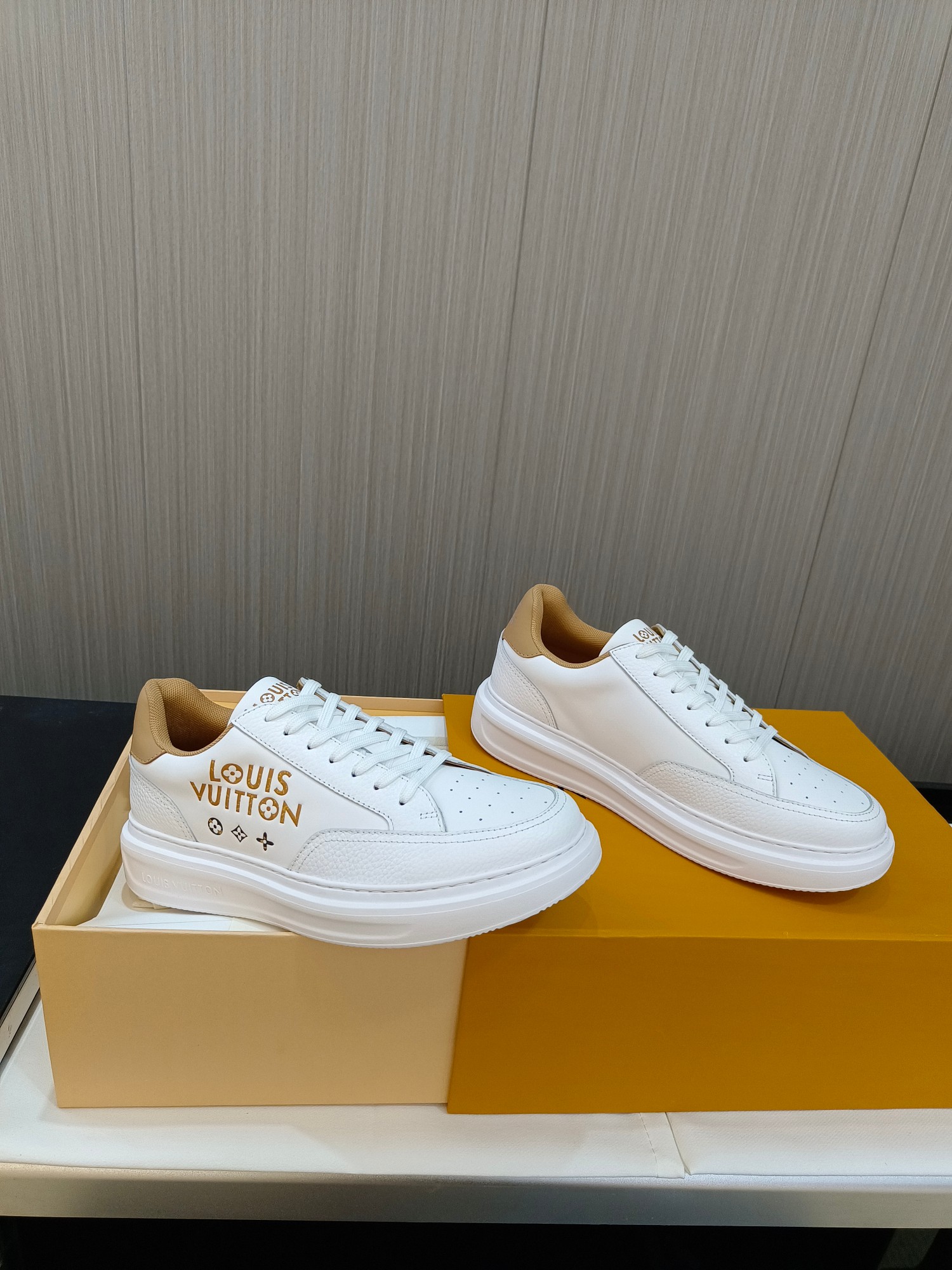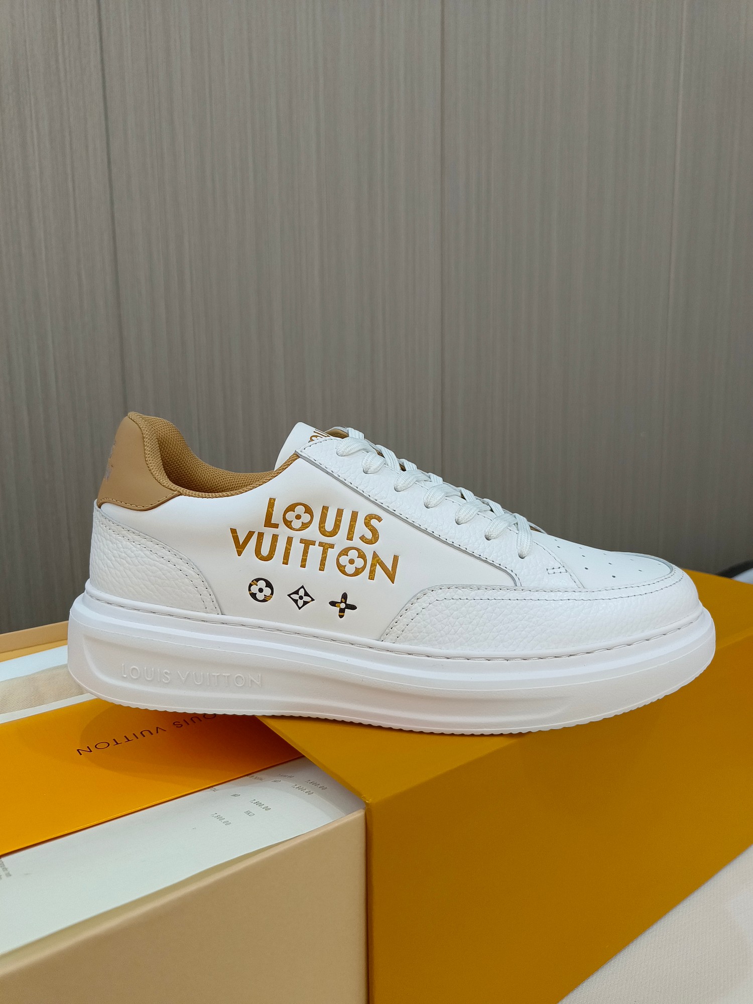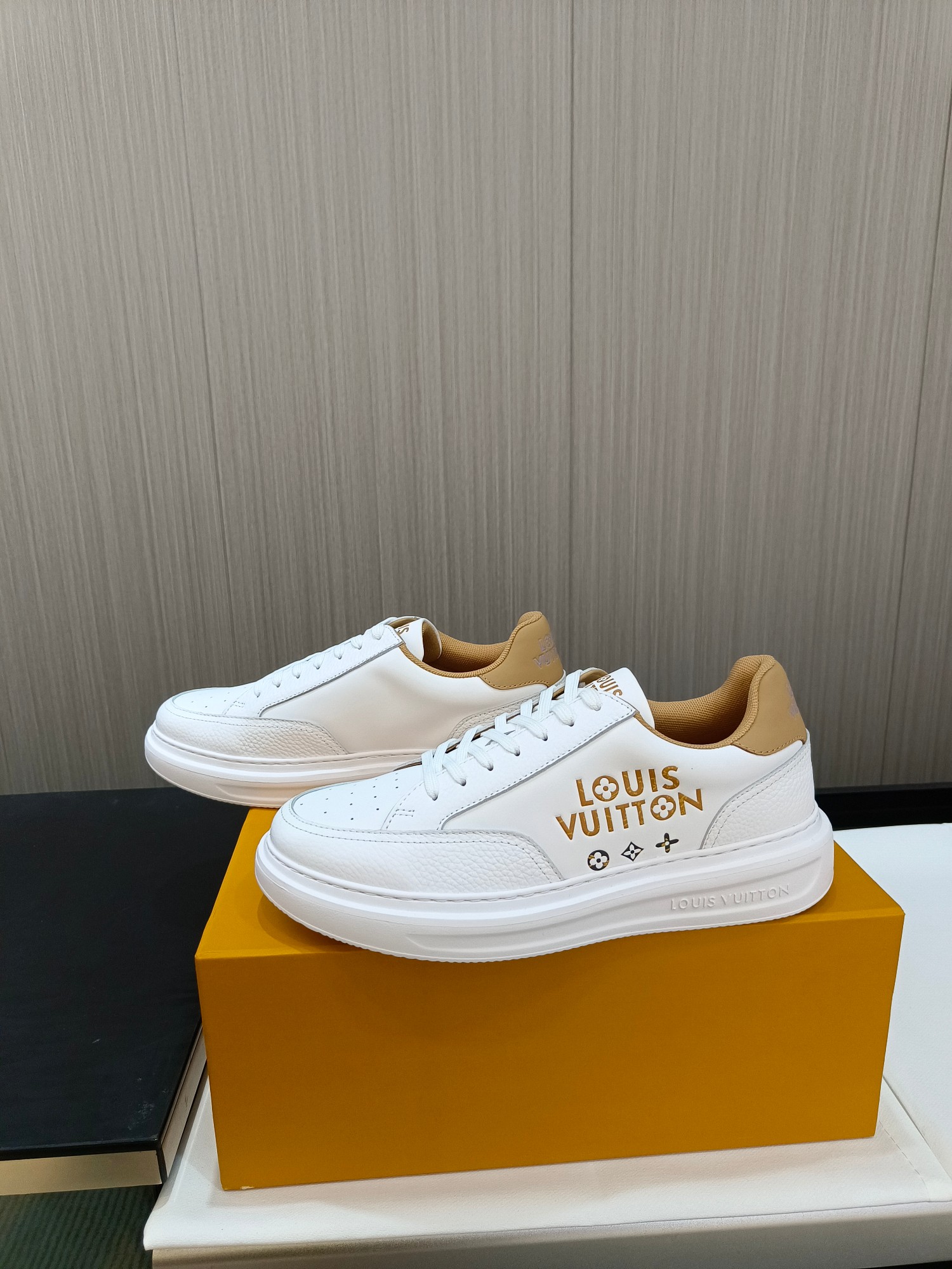这款鞋子是AAAAA 1:1 质量 (非常棒). 使用了和原版一模一样的材料. 商标部分也保持了和路易威登/Louis Vuitton一样. 图片拍摄是实物鞋子拍摄, 您所收到的实物保证和我们图片一模一样.