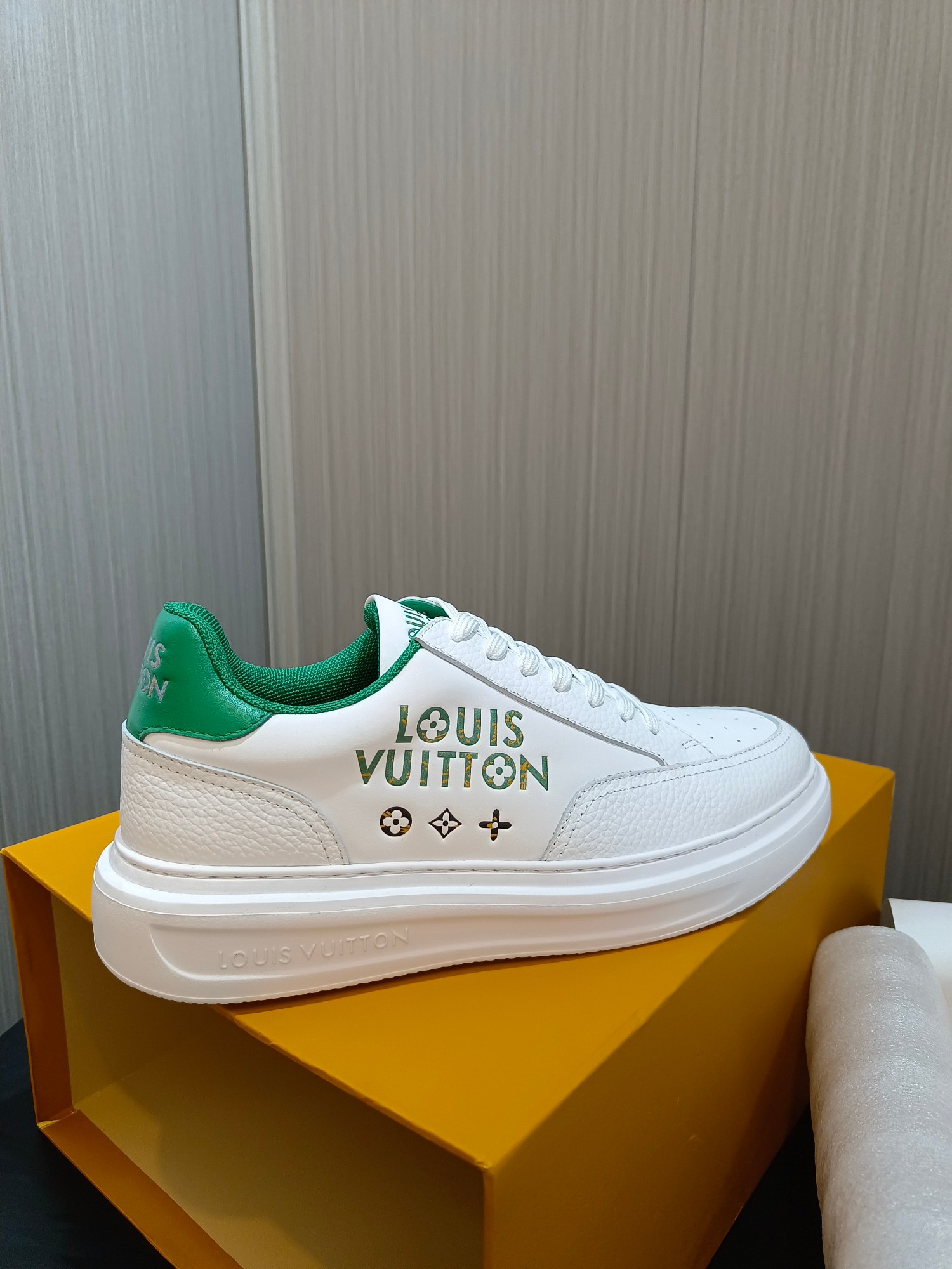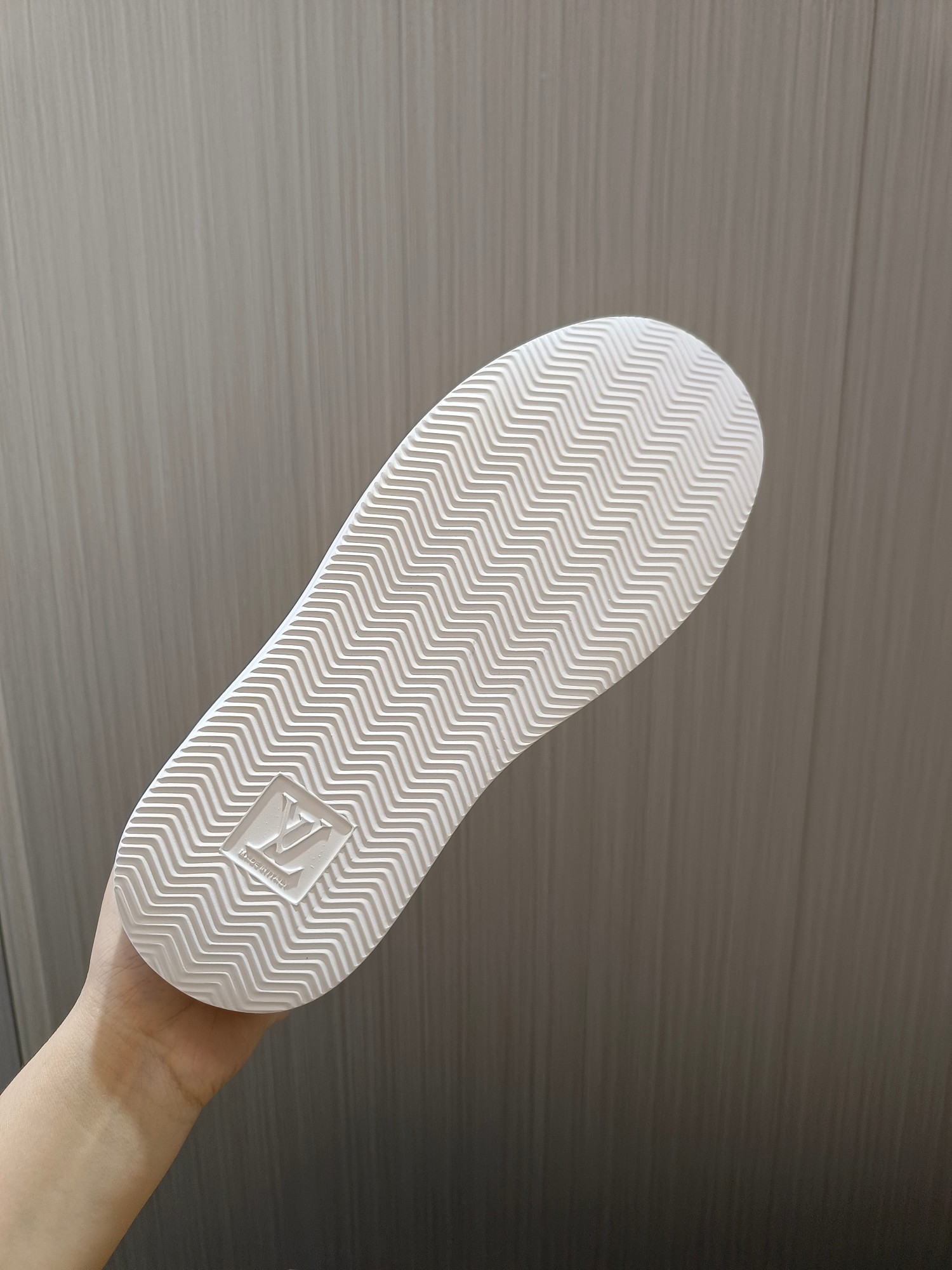 这款鞋子是AAAAA 1:1 质量 (非常棒). 使用了和原版一模一样的材料. 商标部分也保持了和路易威登/Louis Vuitton一样. 图片拍摄是实物鞋子拍摄, 您所收到的实物保证和我们图片一模一样.