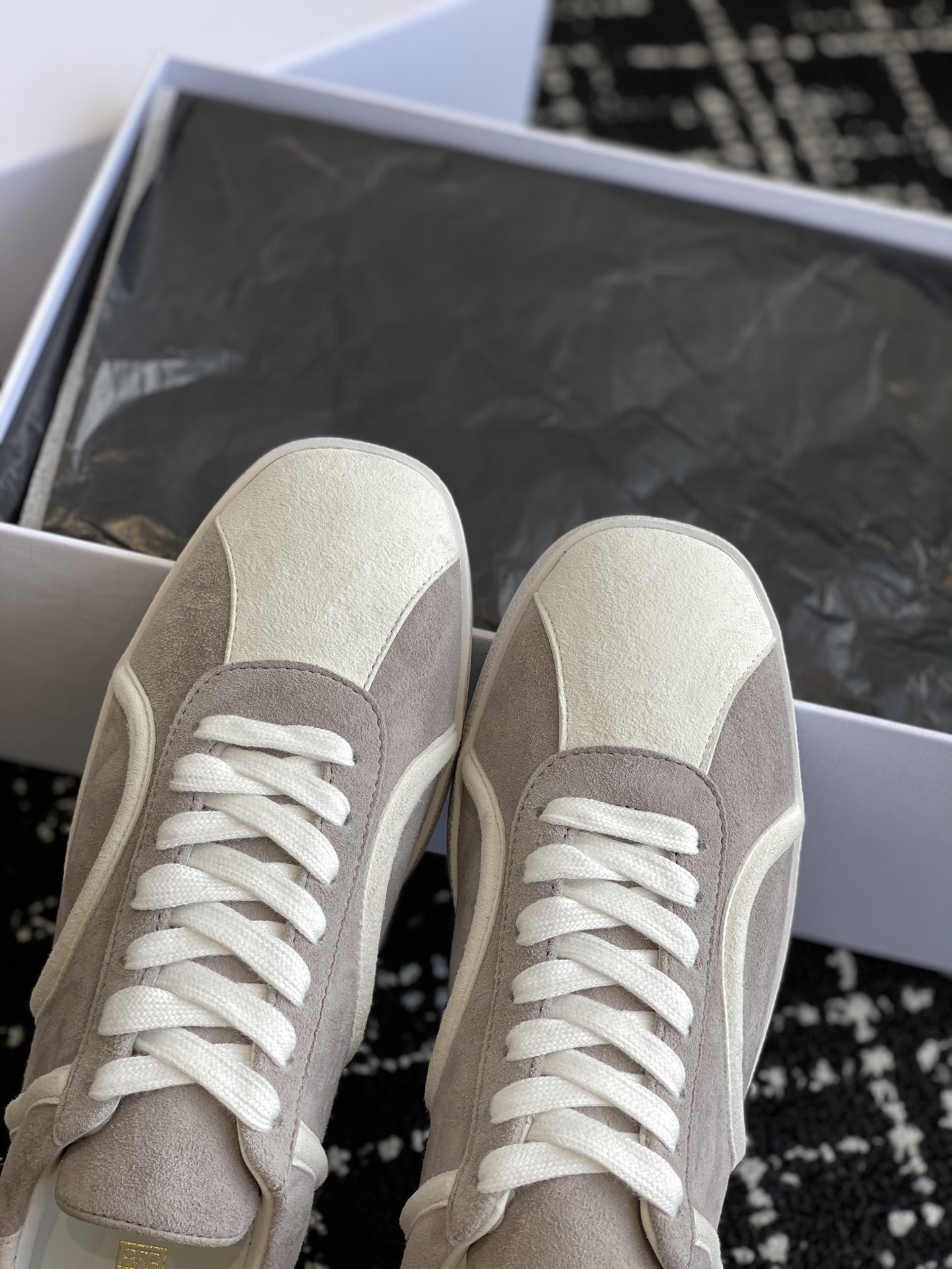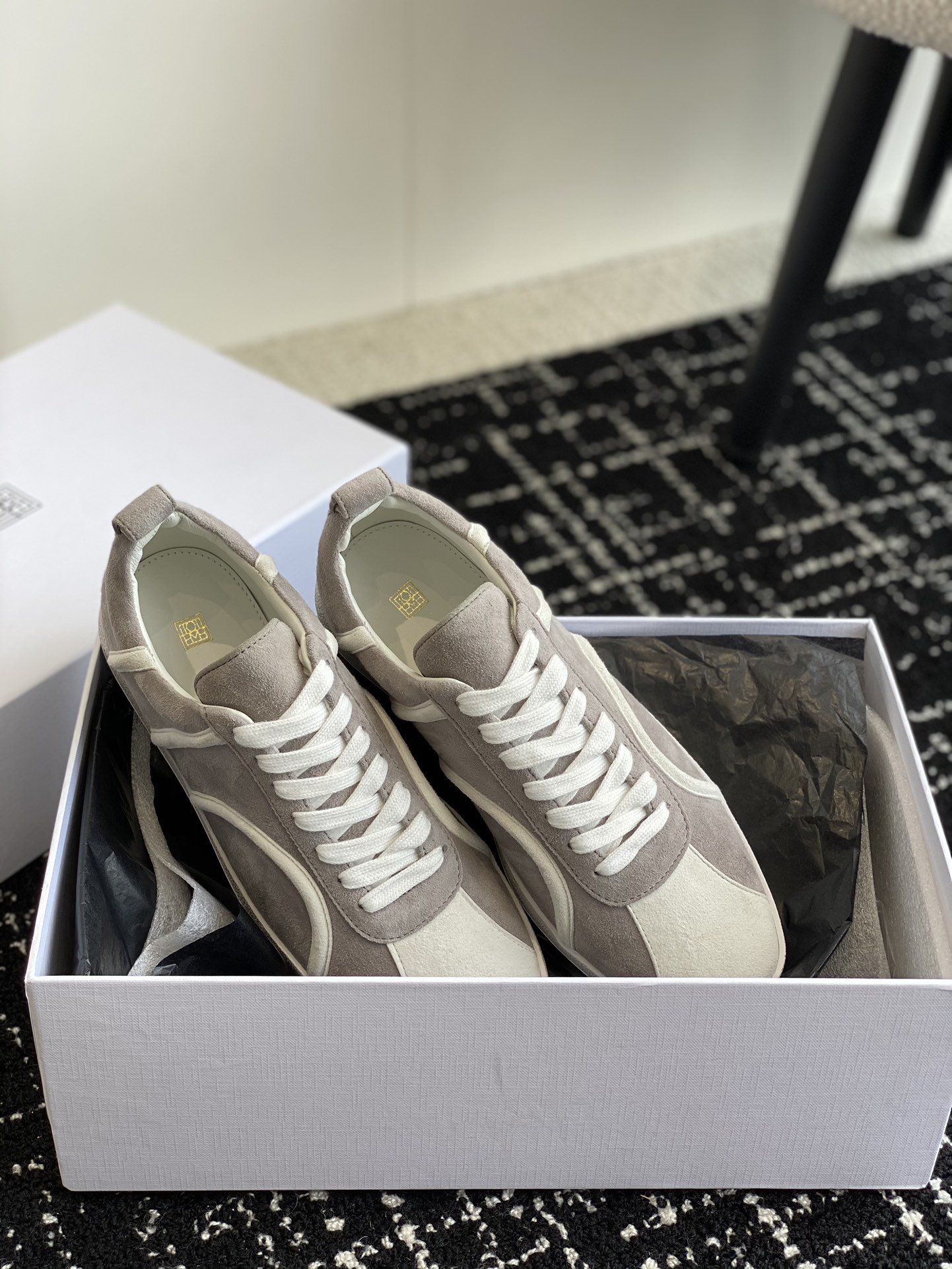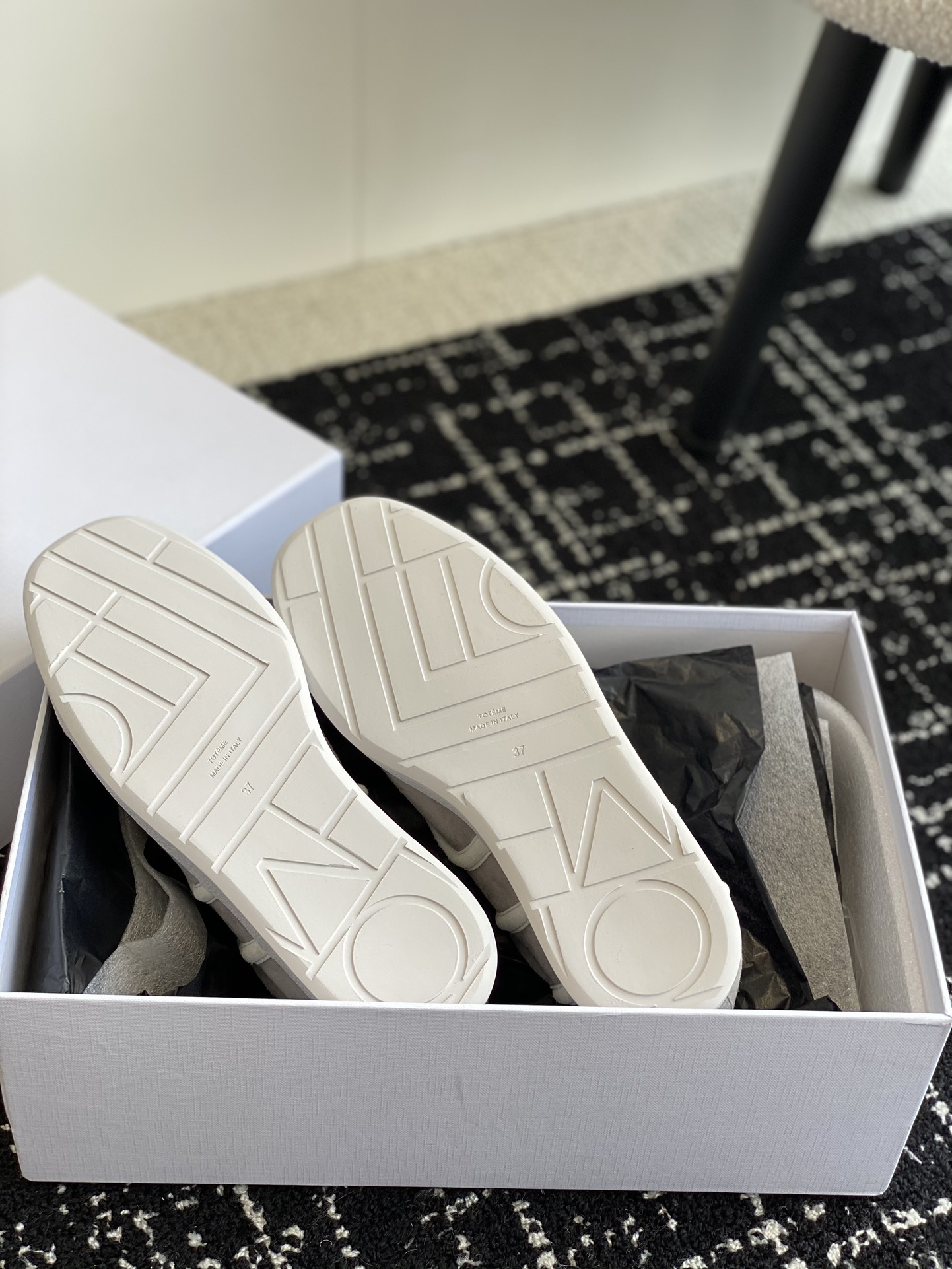 这款鞋子是AAAAA 1:1 质量 (非常棒). 使用了和原版一模一样的材料. 商标部分也保持了和Toteme一样. 图片拍摄是实物鞋子拍摄, 您所收到的实物保证和我们图片一模一样.