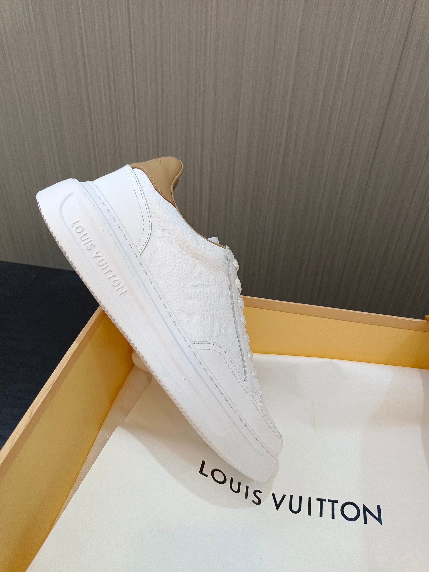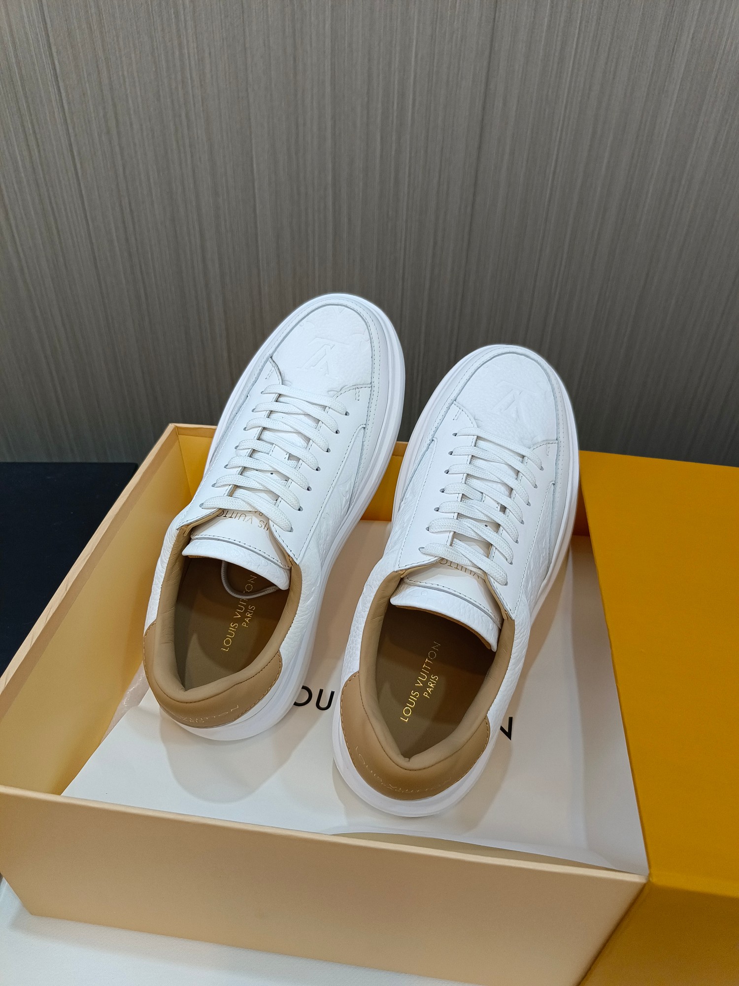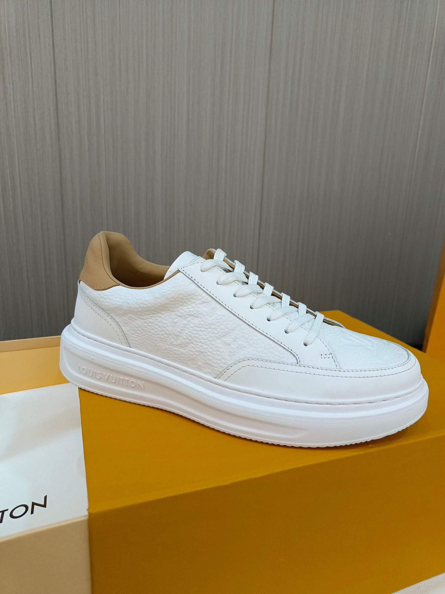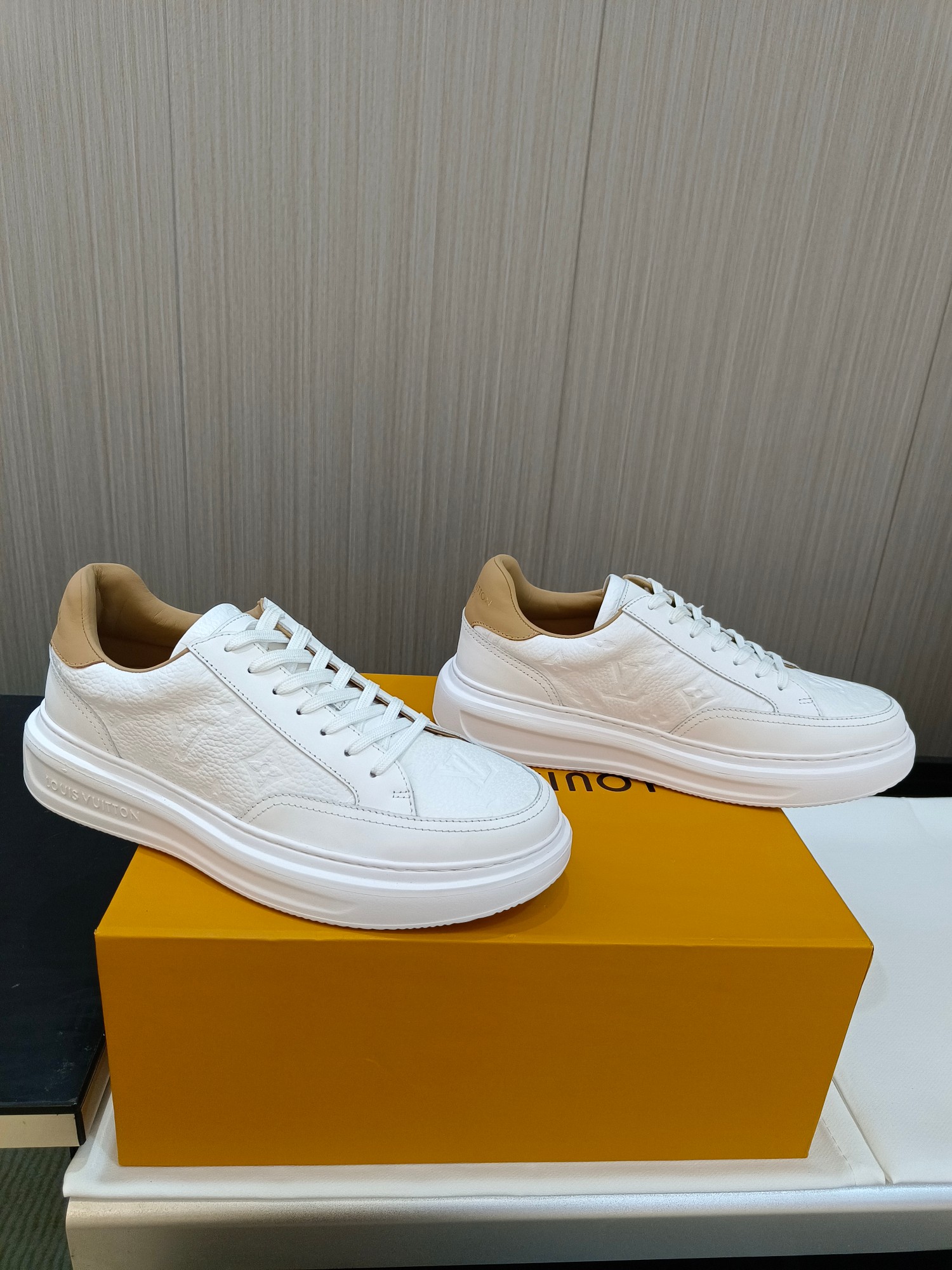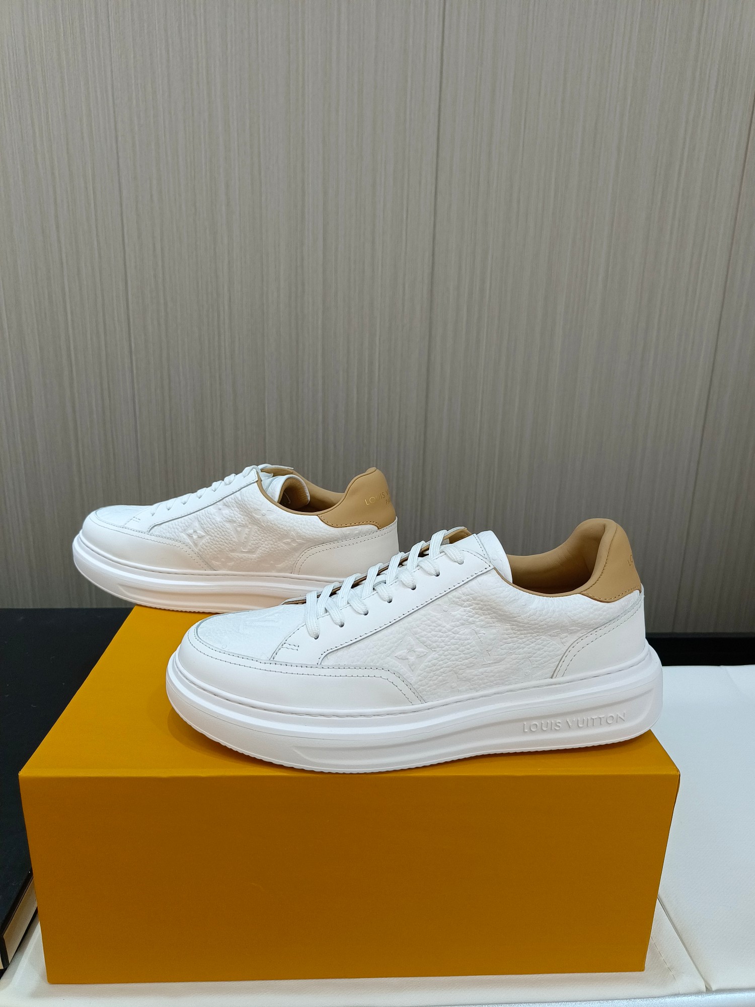 这款鞋子是AAAAA 1:1 质量 (非常棒). 使用了和原版一模一样的材料. 商标部分也保持了和路易威登/Louis Vuitton一样. 图片拍摄是实物鞋子拍摄, 您所收到的实物保证和我们图片一模一样.