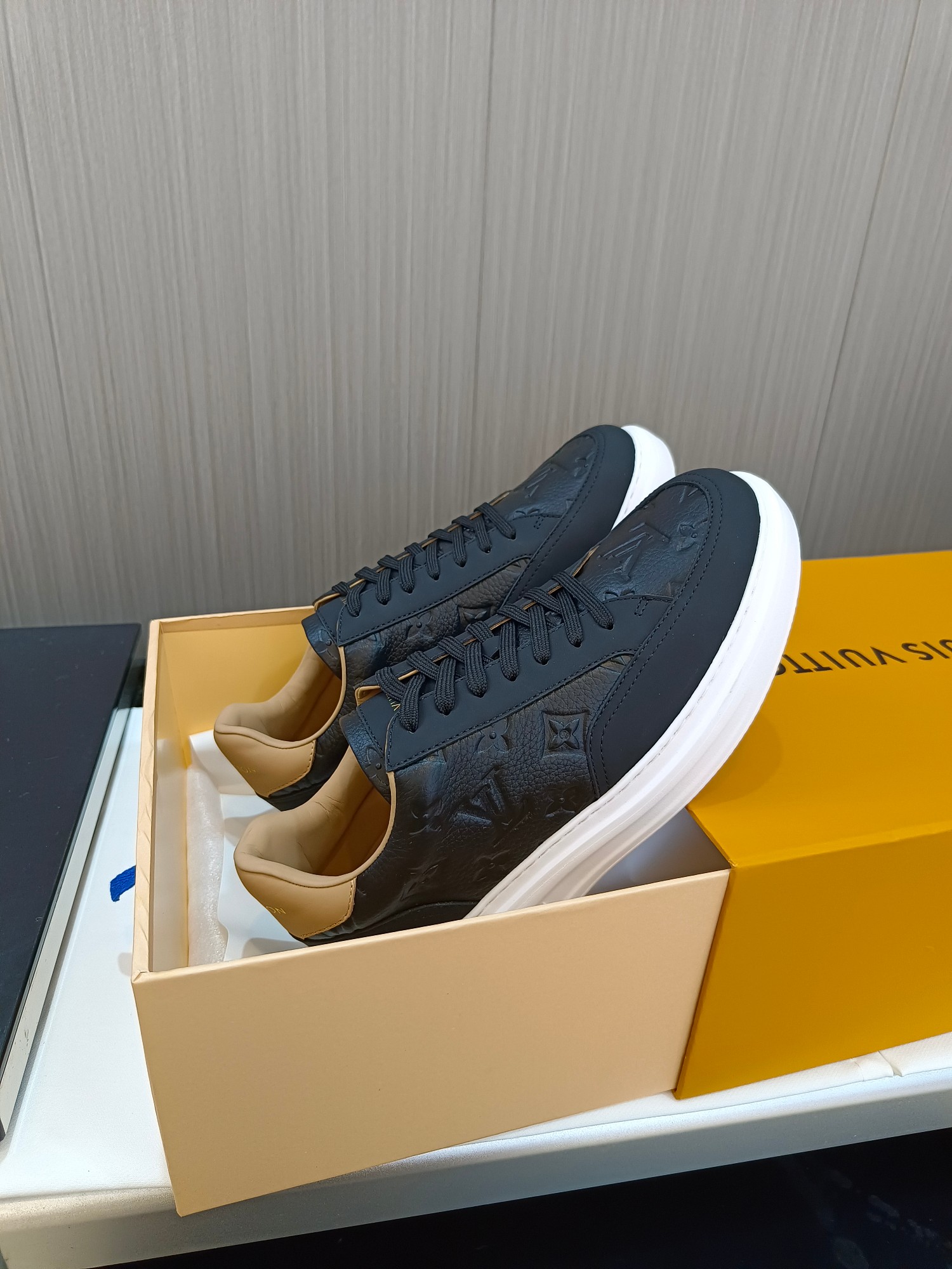 这款鞋子是AAAAA 1:1 质量 (非常棒). 使用了和原版一模一样的材料. 商标部分也保持了和路易威登/Louis Vuitton一样. 图片拍摄是实物鞋子拍摄, 您所收到的实物保证和我们图片一模一样.